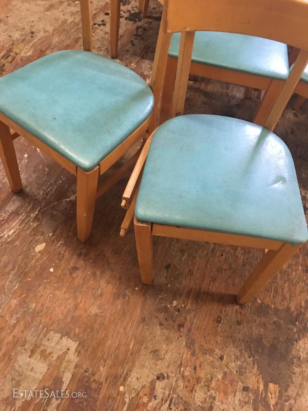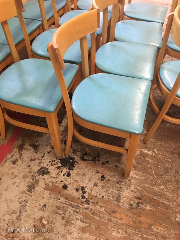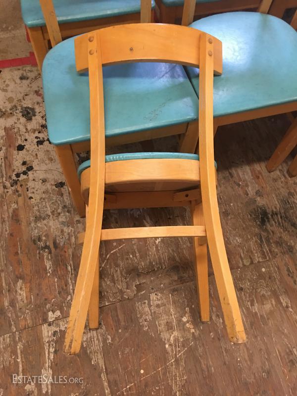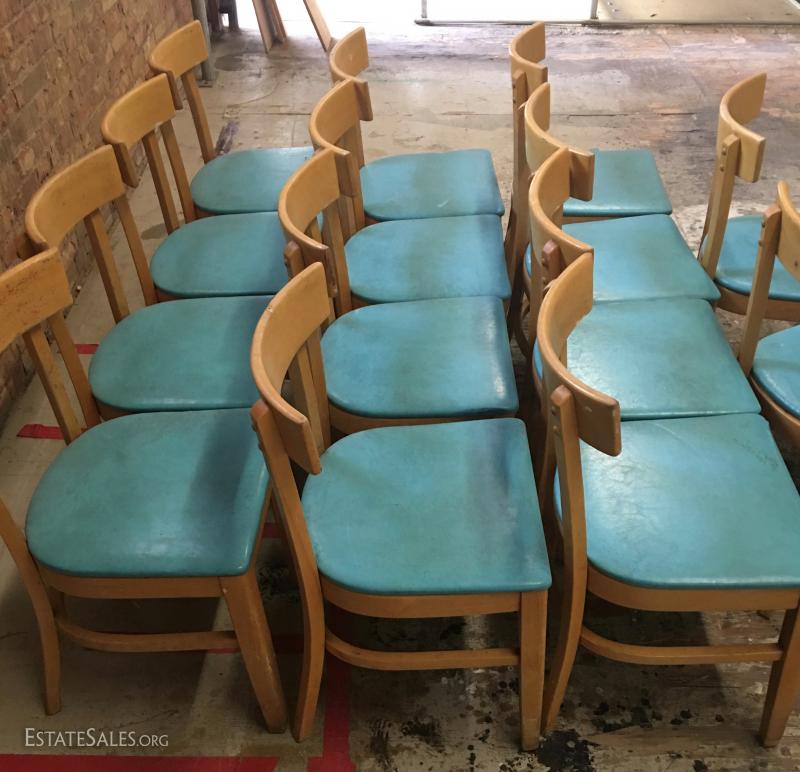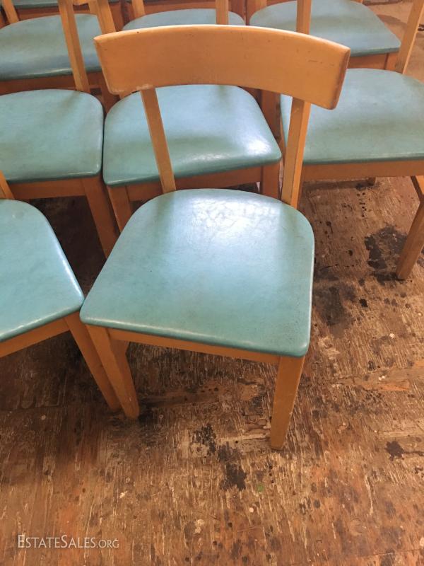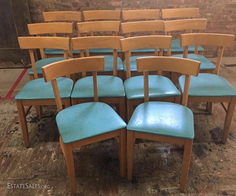 Chairs are in good but used condition, 14 complete and usable 2 additional chairs that need to be re-glued added.