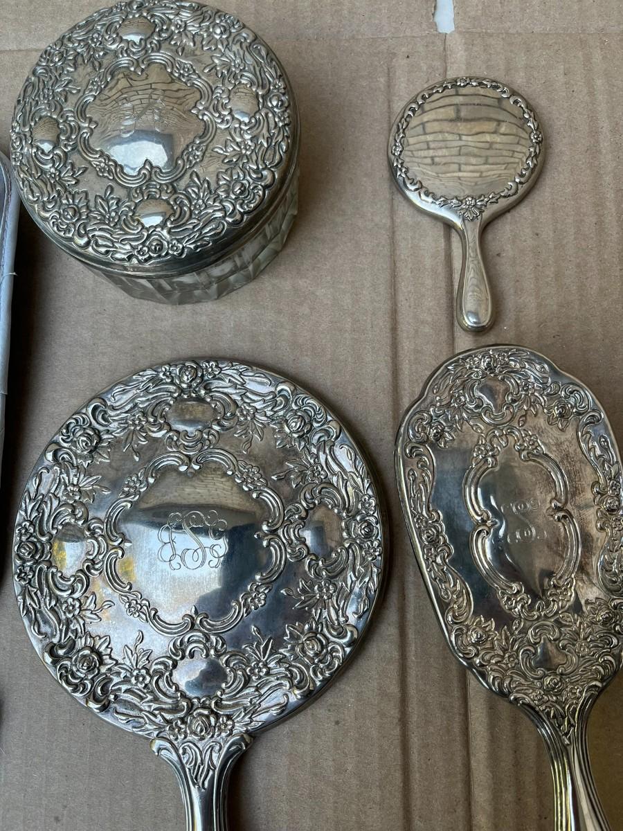 Vintage Silver Plated 14 Pc Highly Carved Early 1900s Dresser Set