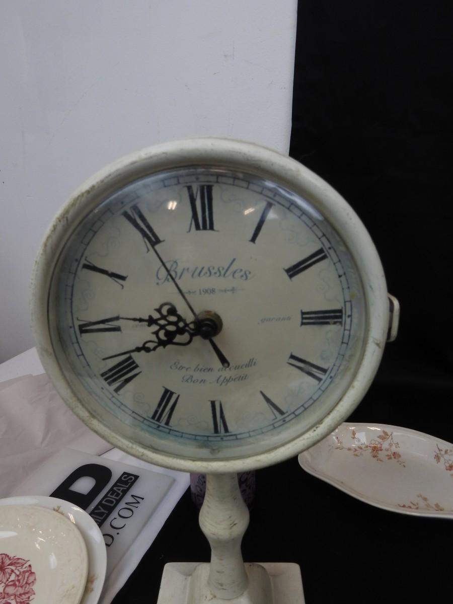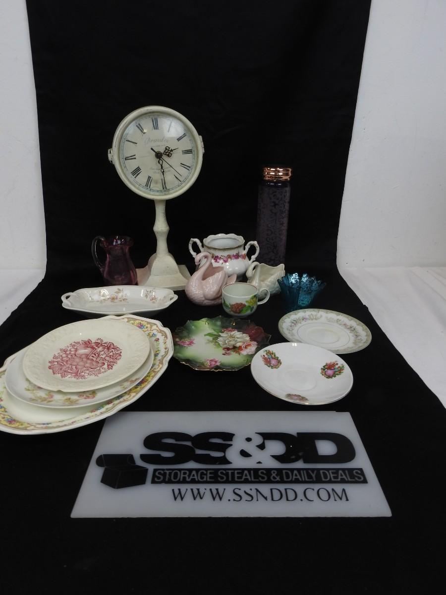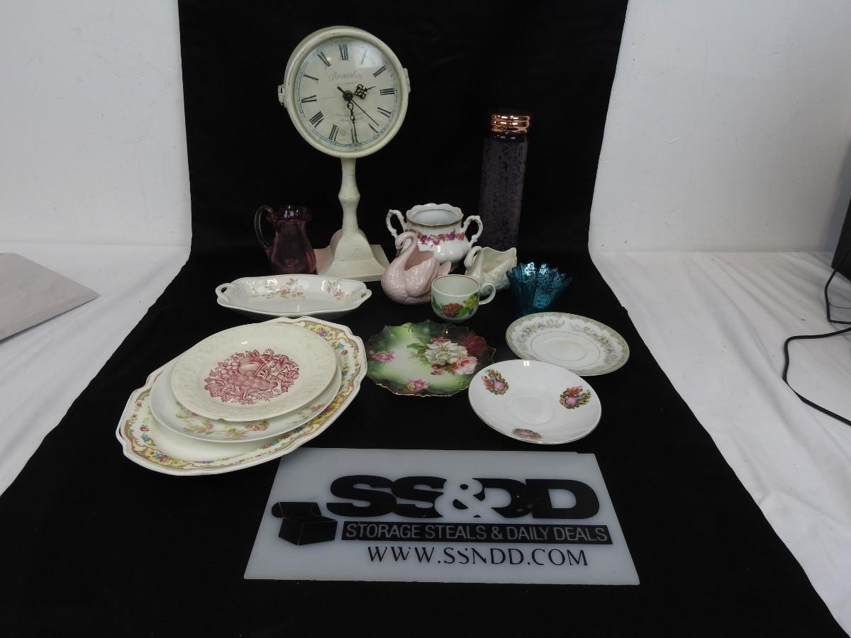 14 pc Home & Kitchen: Serving Tray & Saucers(Vintage?), 2 Face Clock