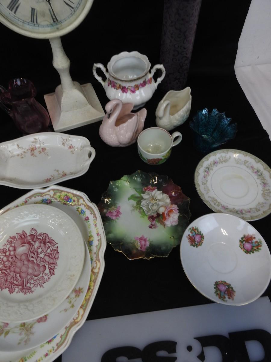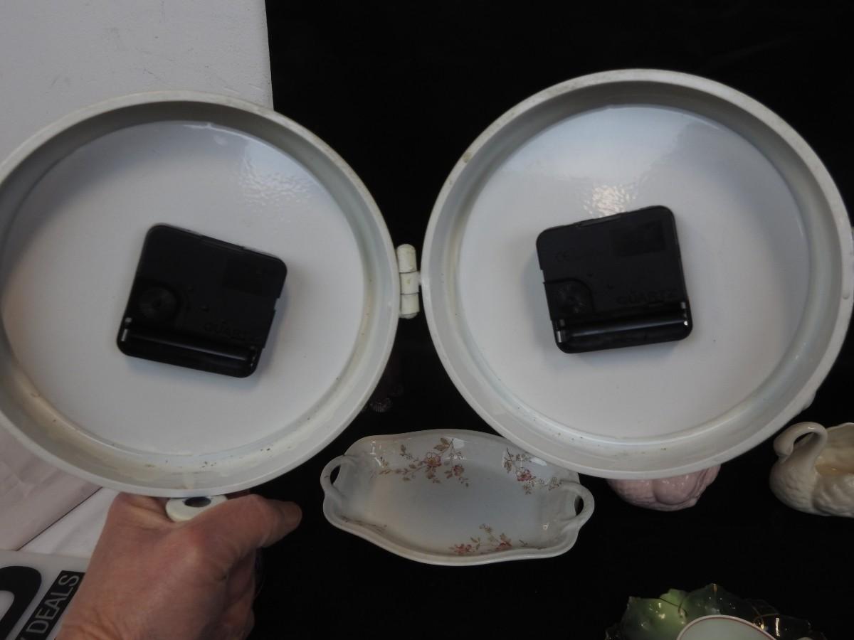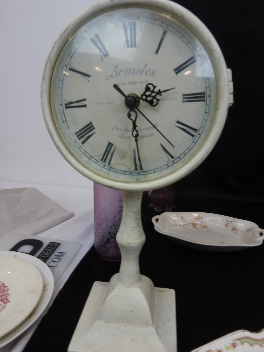 14 pc Home & Kitchen: Serving Tray & Saucers(Vintage?), 2 Face Clock