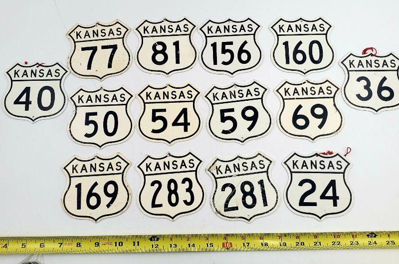 14 pc. KANSAS HIGHWAY COLLECTABLE METAL SIGNS