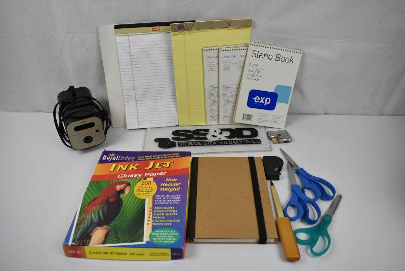 14 pc Office/School Supplies: Notebooks, Scissors, Paper, Pencil Sharpener, etc