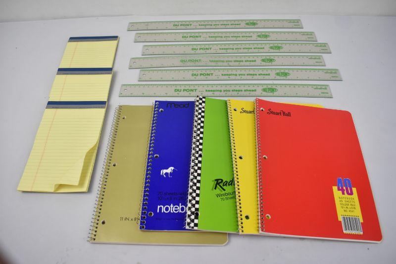 14 pc School: 6 Rulers, 5 Spiral Notebooks, 3 Small Notepads