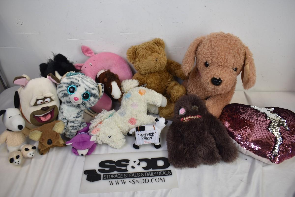 14 pc Stuffed Animals and pillows, Dogs, Bears, Pig Neck Pillow
