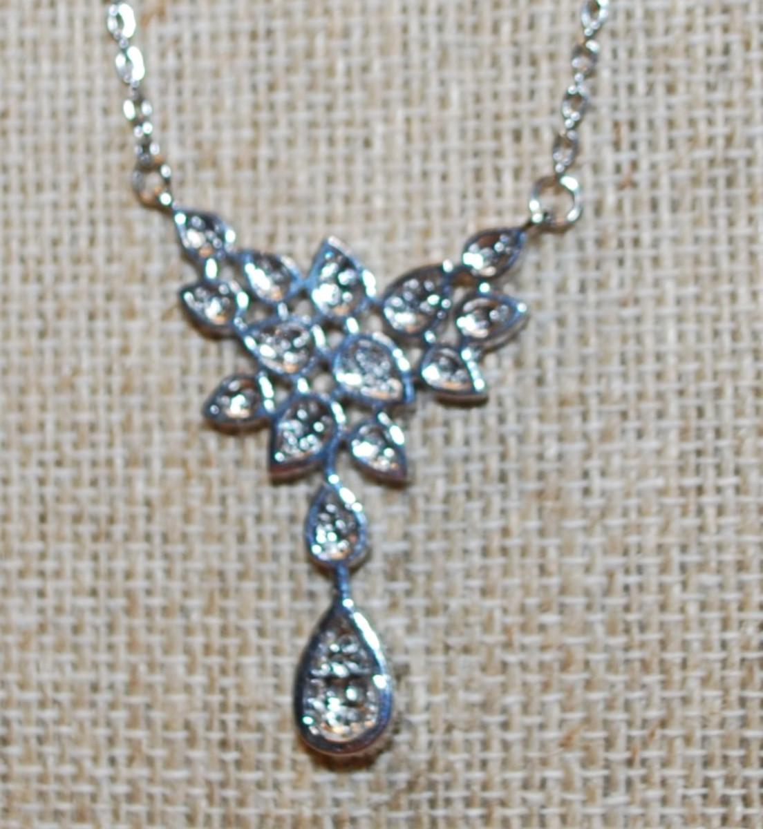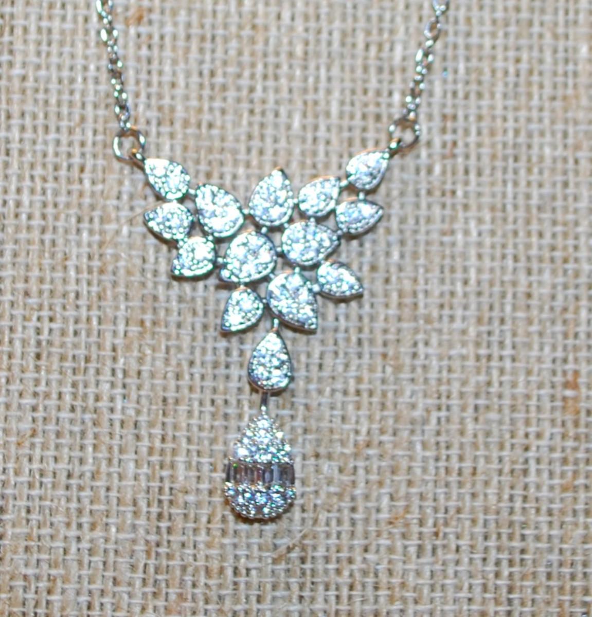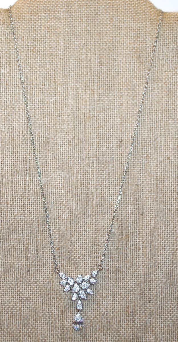 14 Pear Shaped Clear Stones Swag PENDANT (1 ½" x ½") on a Silver Tone Necklace Chain 17" L
