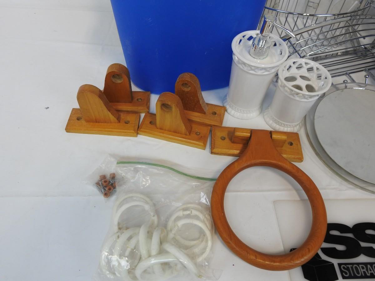 14 Piece Bathroom Lot, Ironing Board, Trash Can, Tissue Holder