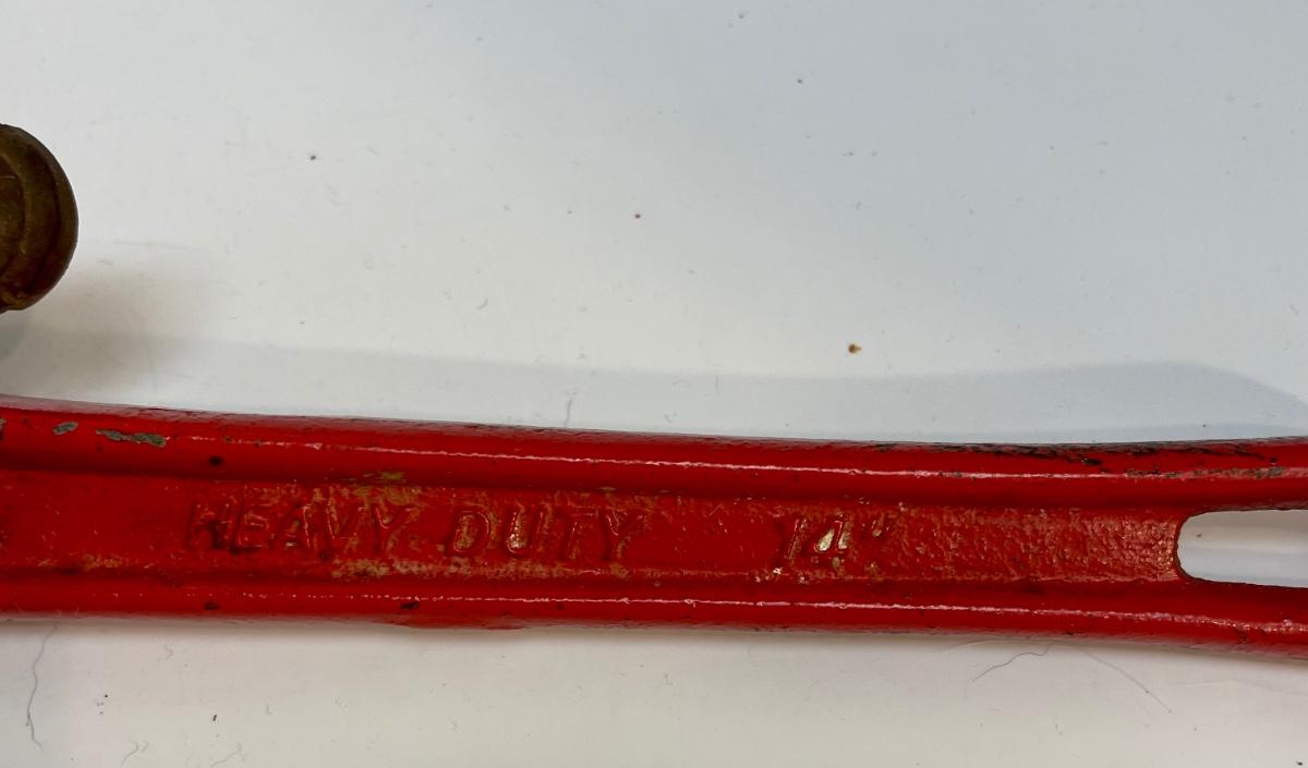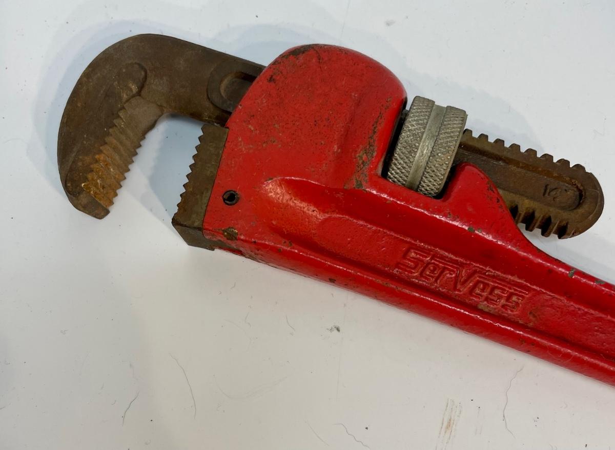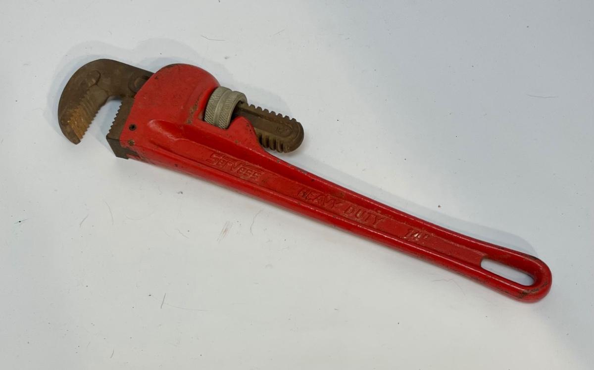 Servess 14” heavy duty pipe wrench. Some light rust on jaw, otherwise good used condition.