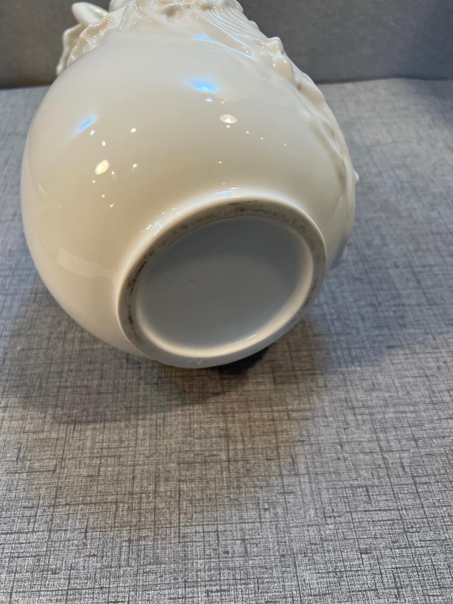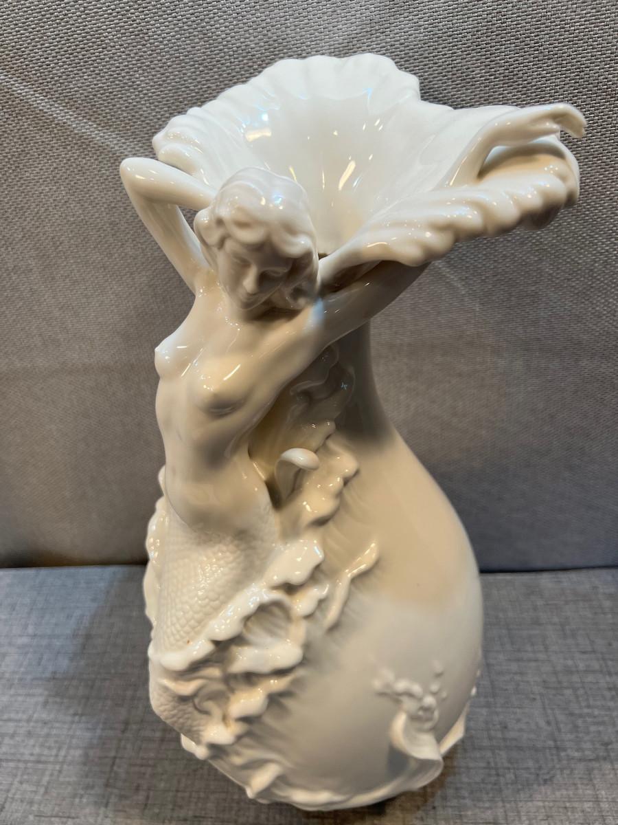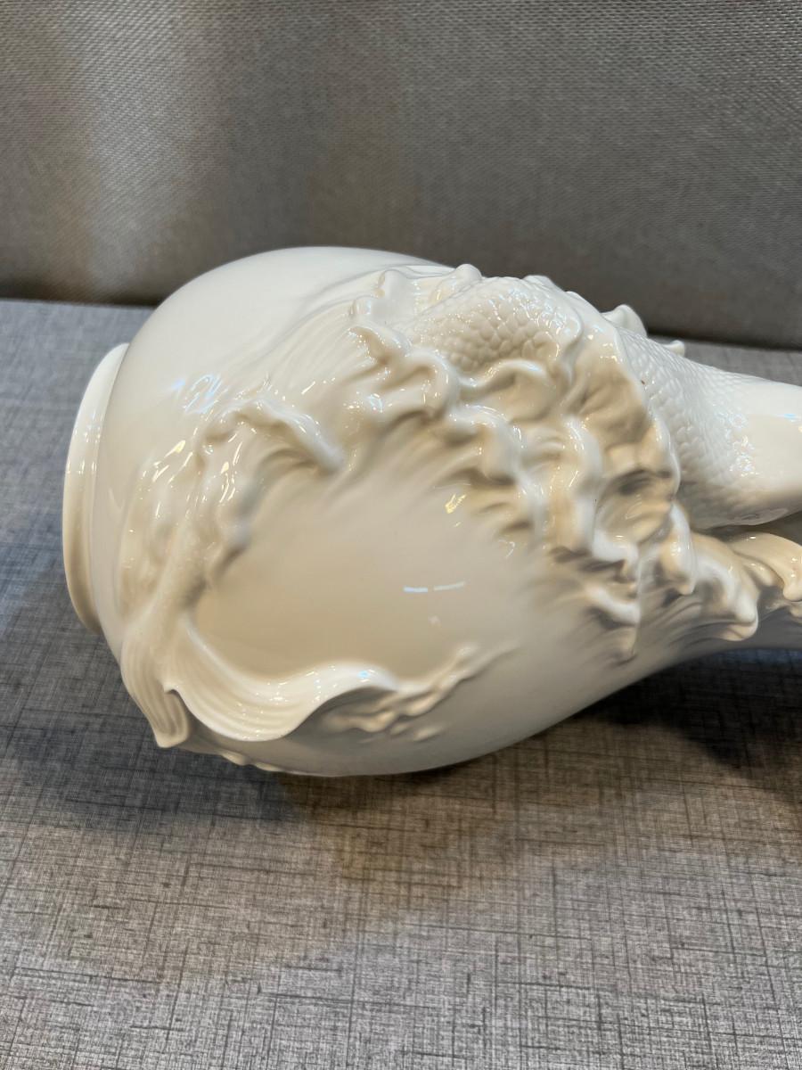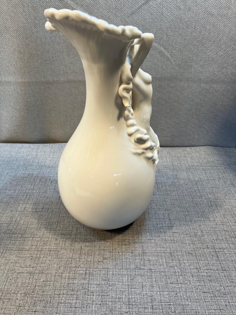 14" White Porcelain Mermaid Relief Vase