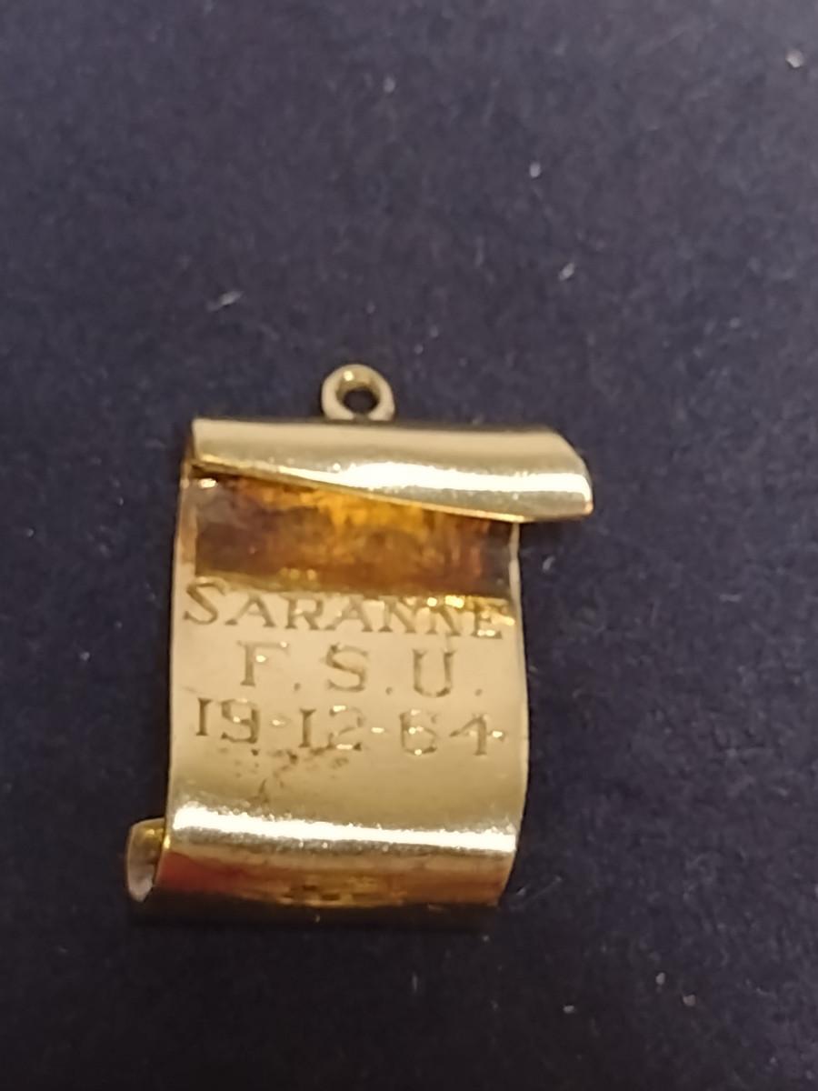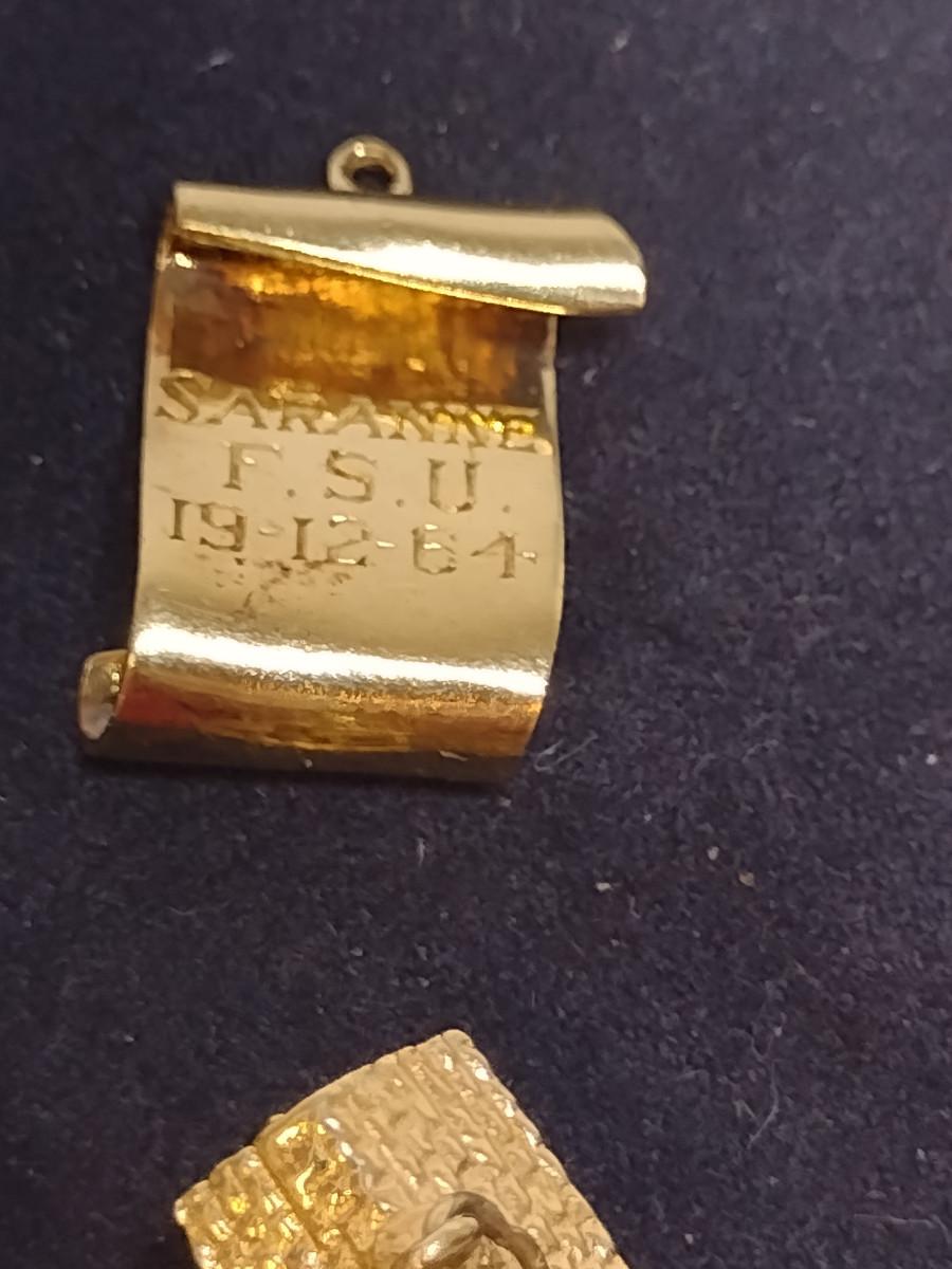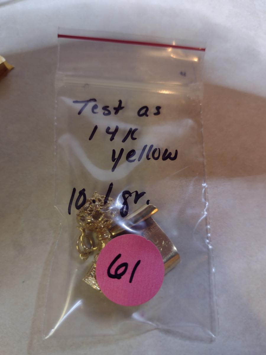 14 Yellow Gold Charms- Approx Total Weight 10.1 Grams (#61). Items acid test as 14 Karat. Diploma charm has gemstone (possibly ruby) and is monogrammed and dated. A 6.75% NC sales tax will be added to the jewelry invoice amount at the end of the sale. Coins are exempt from state sales tax.