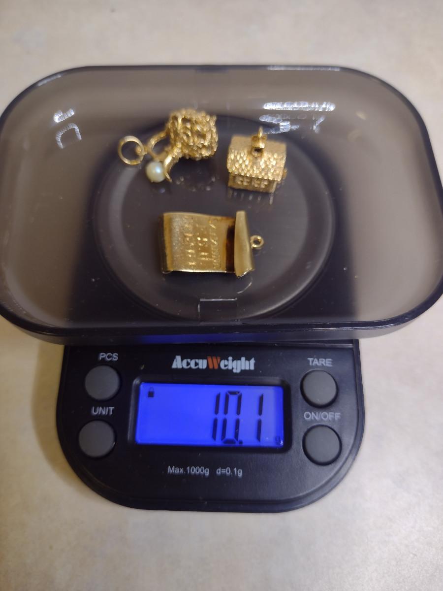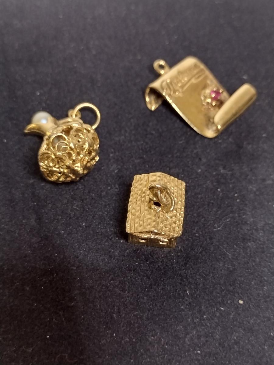 14 Yellow Gold Charms- House, Urn, and Diploma Designs- Approx Total Weight 10.1 Grams (#61)