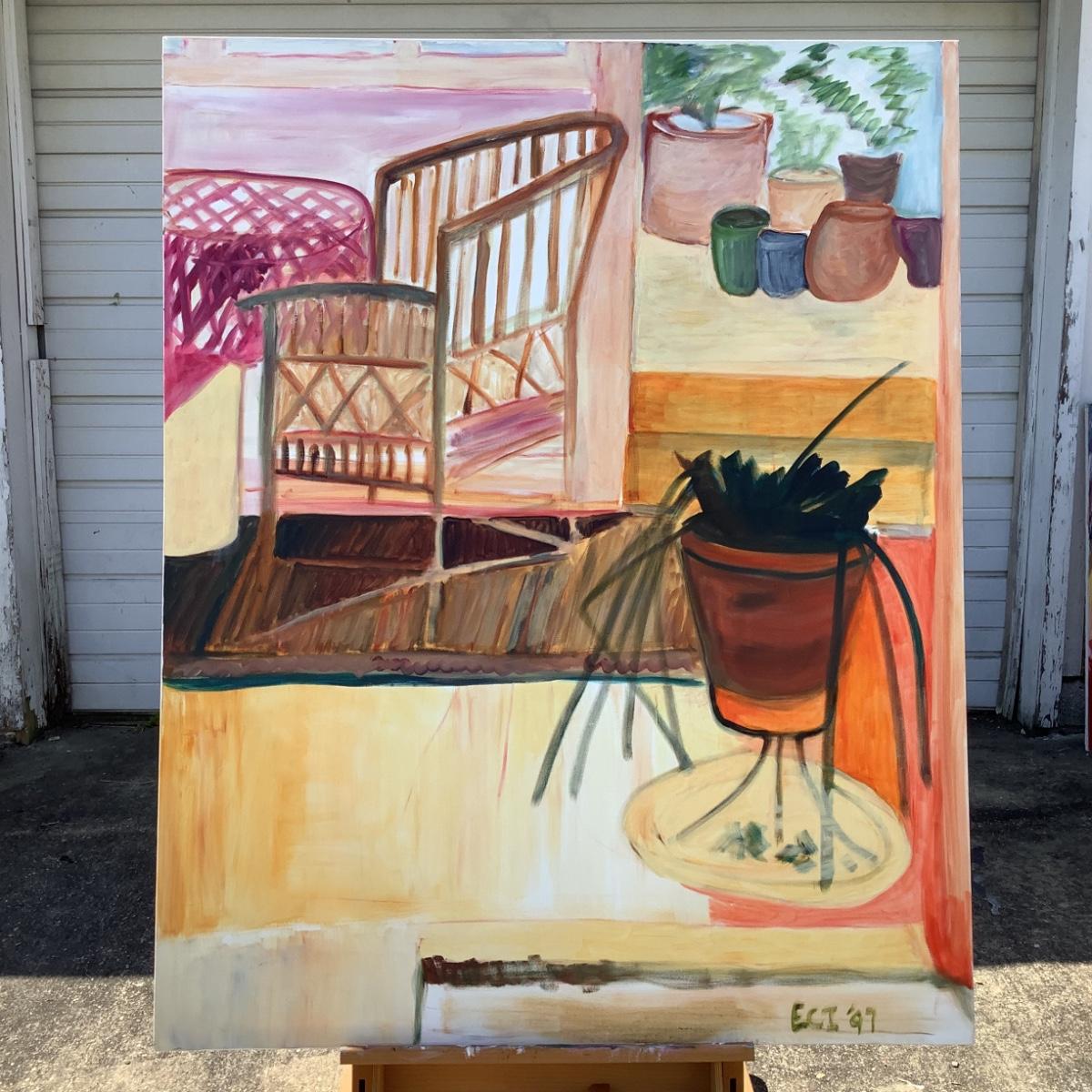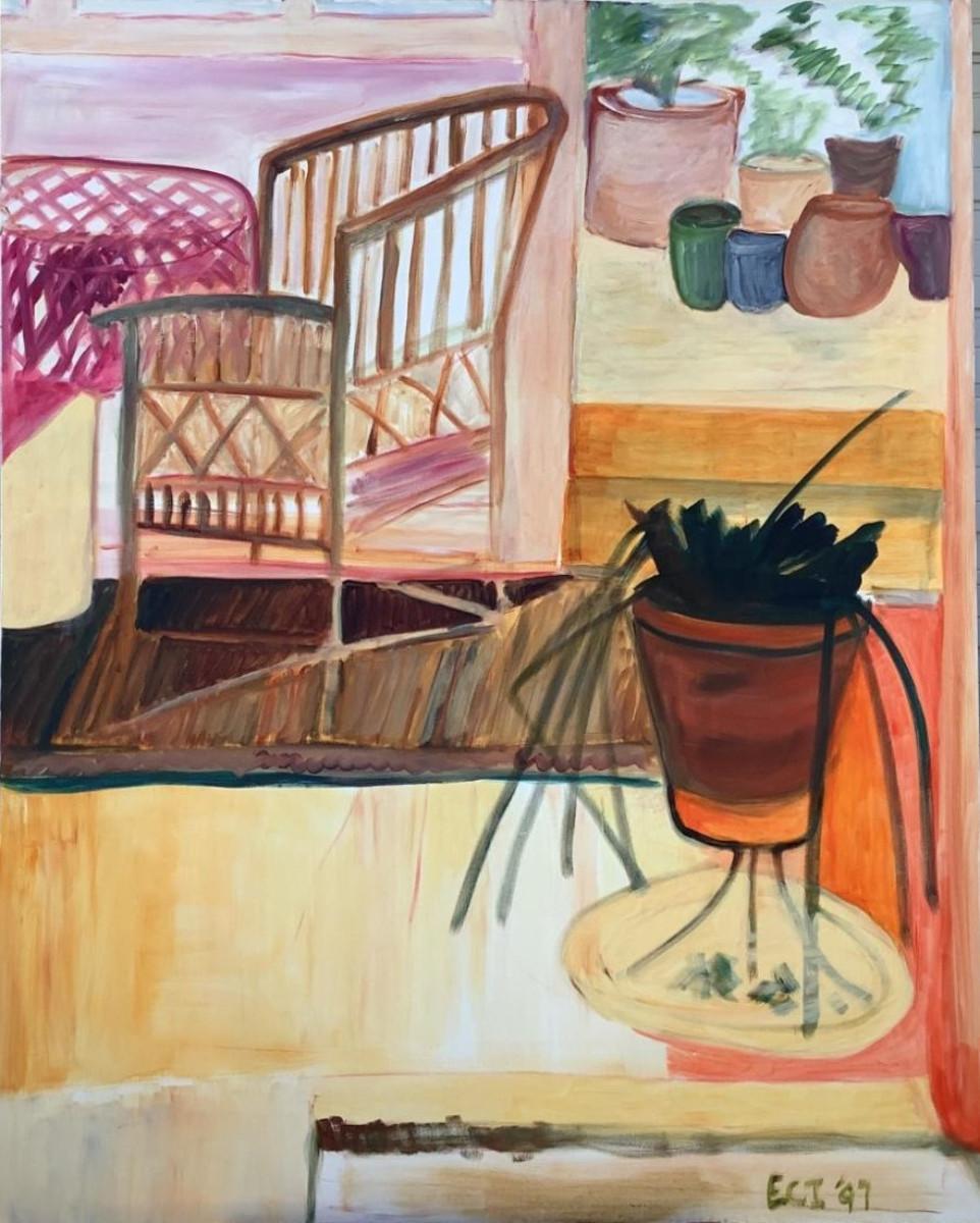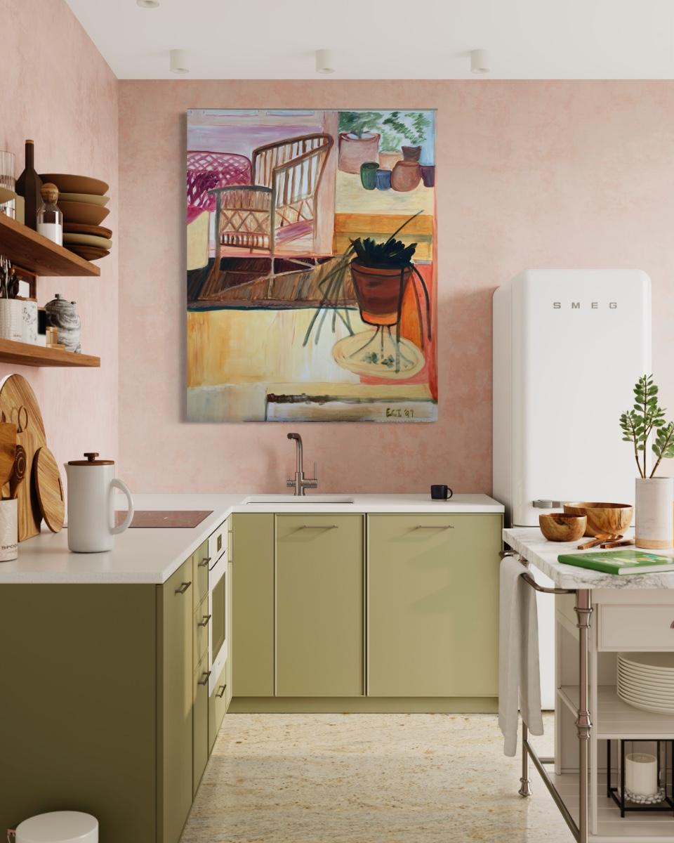 140 Bamboo Chair & Plants In Kitchen Oil on Canvas by Ellen Into