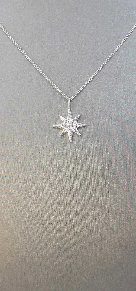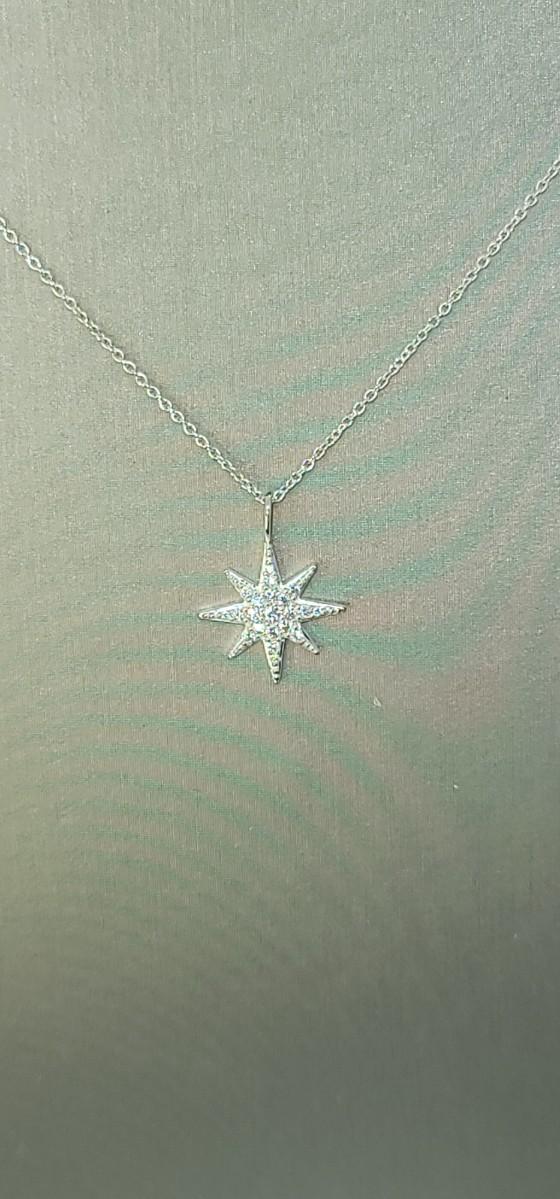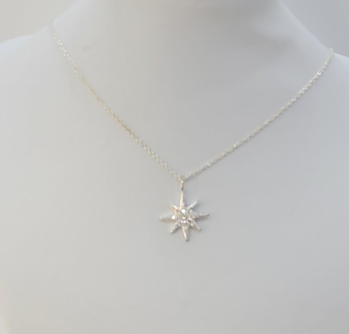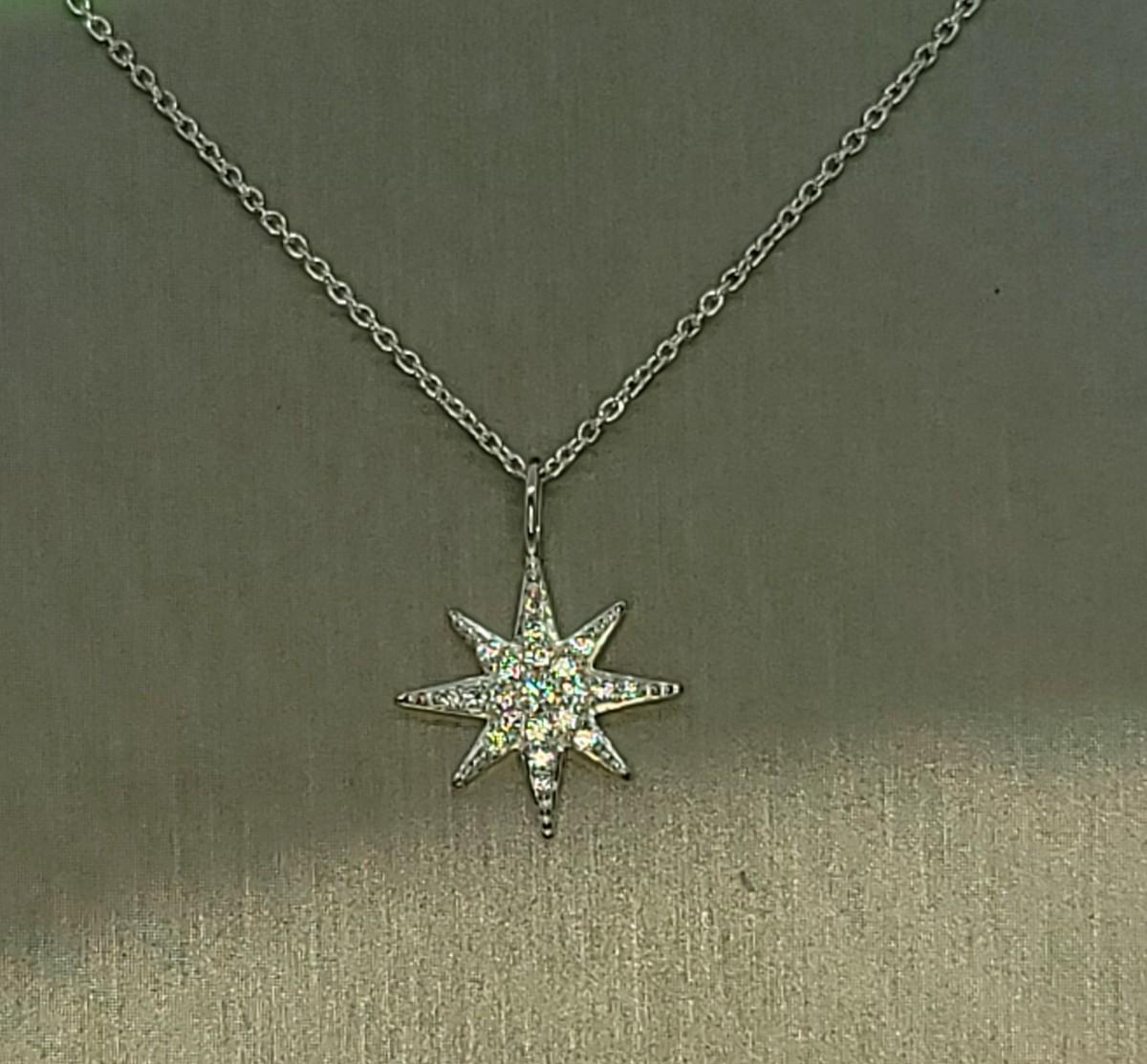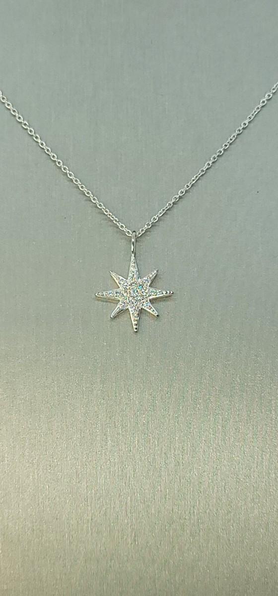 140: 925 Sterling silver  Diamond snowflake Pendant Necklace