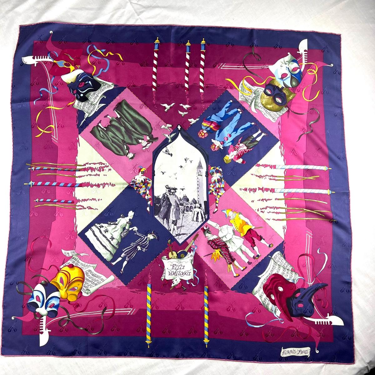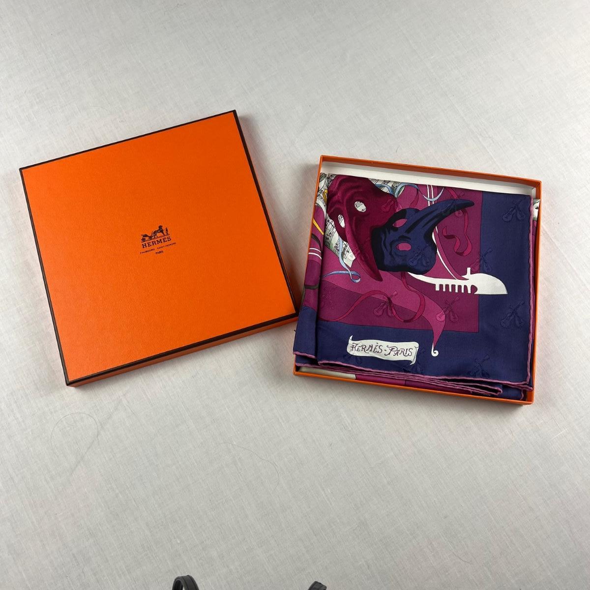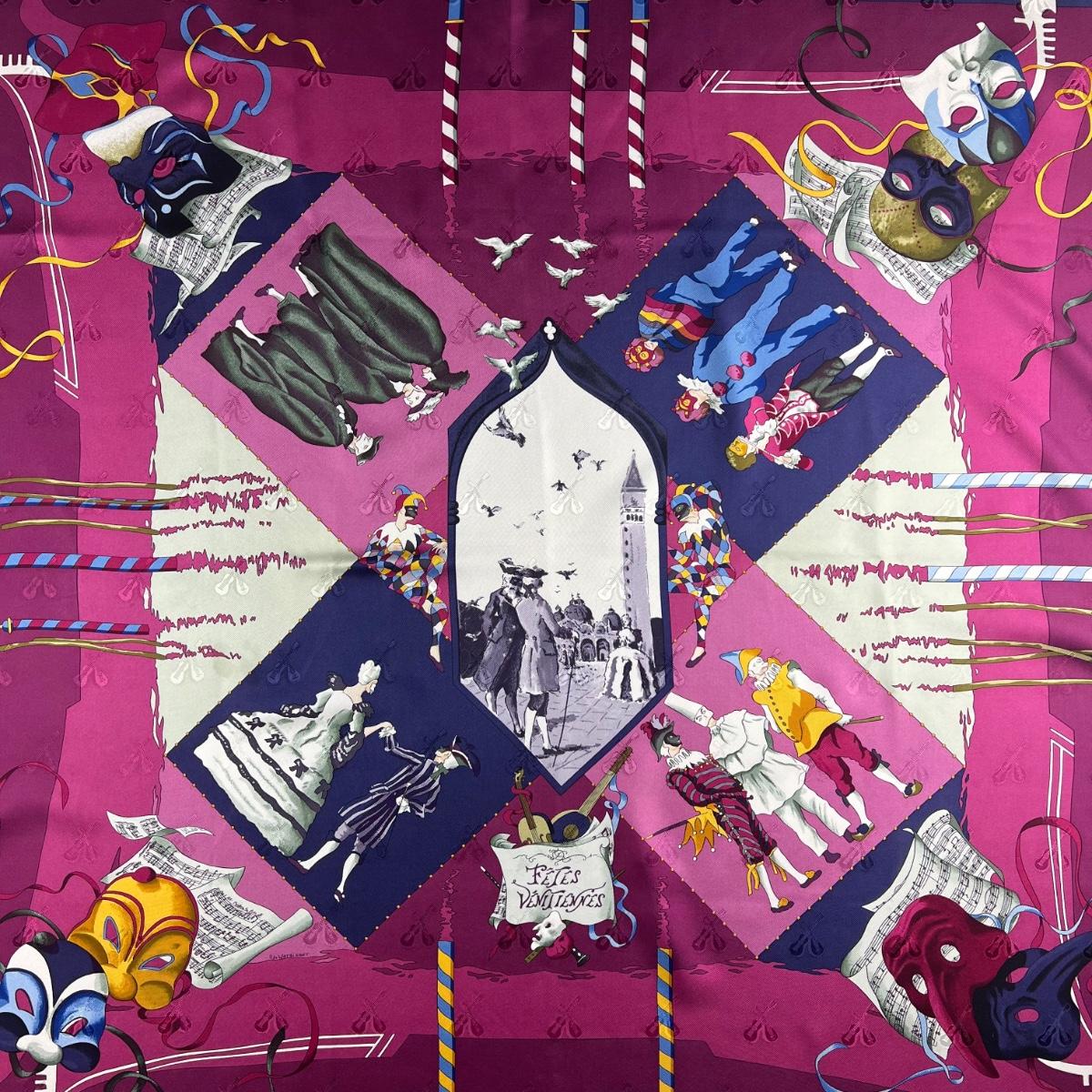 140 Authentic HERMÈS Carre 90 Silk Scarf Carnaval de Venist by Hubert de Watrigant 1993
