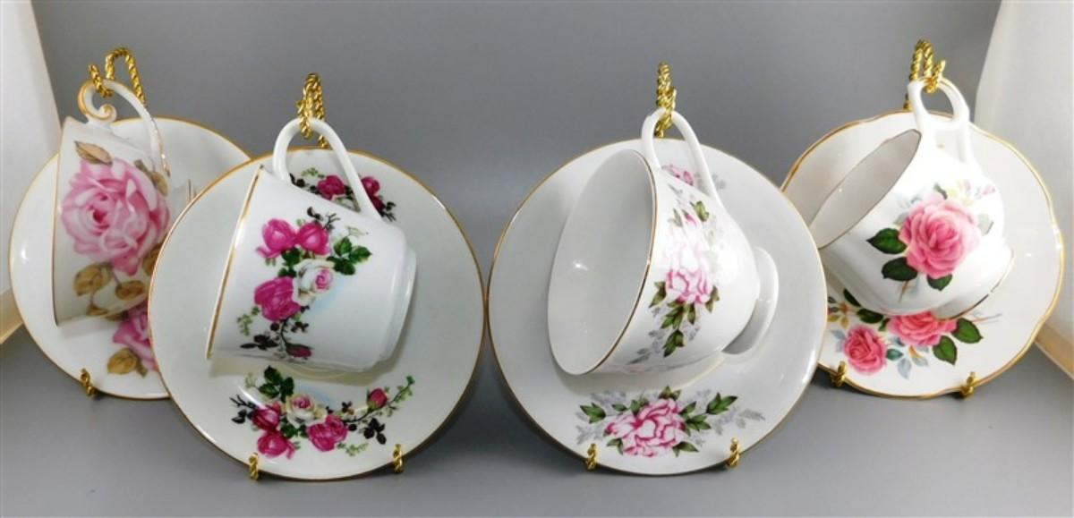 140 Lot of 4 Cups and Saucers with Stands- Royal Dover Made in England /Made In China/ Alpine