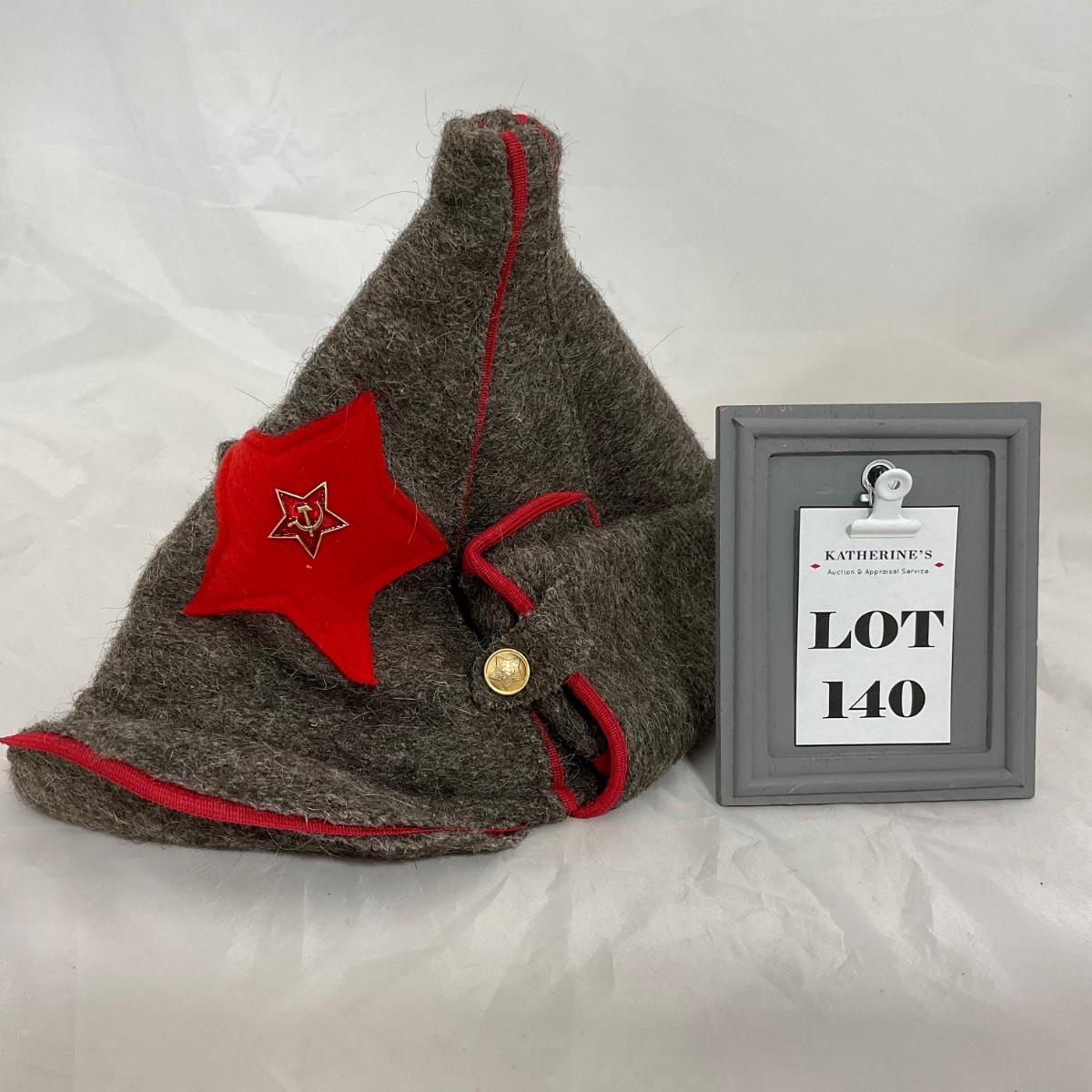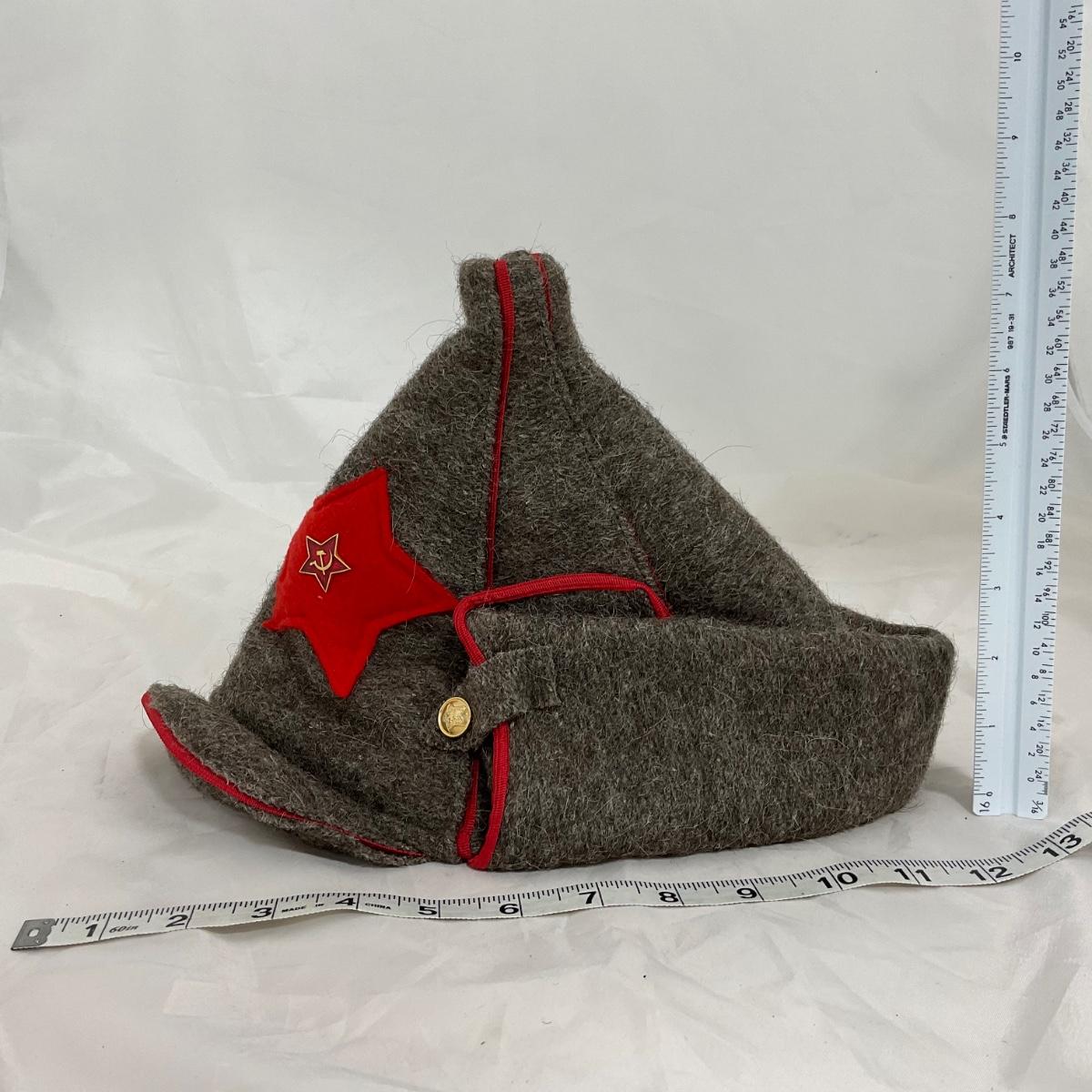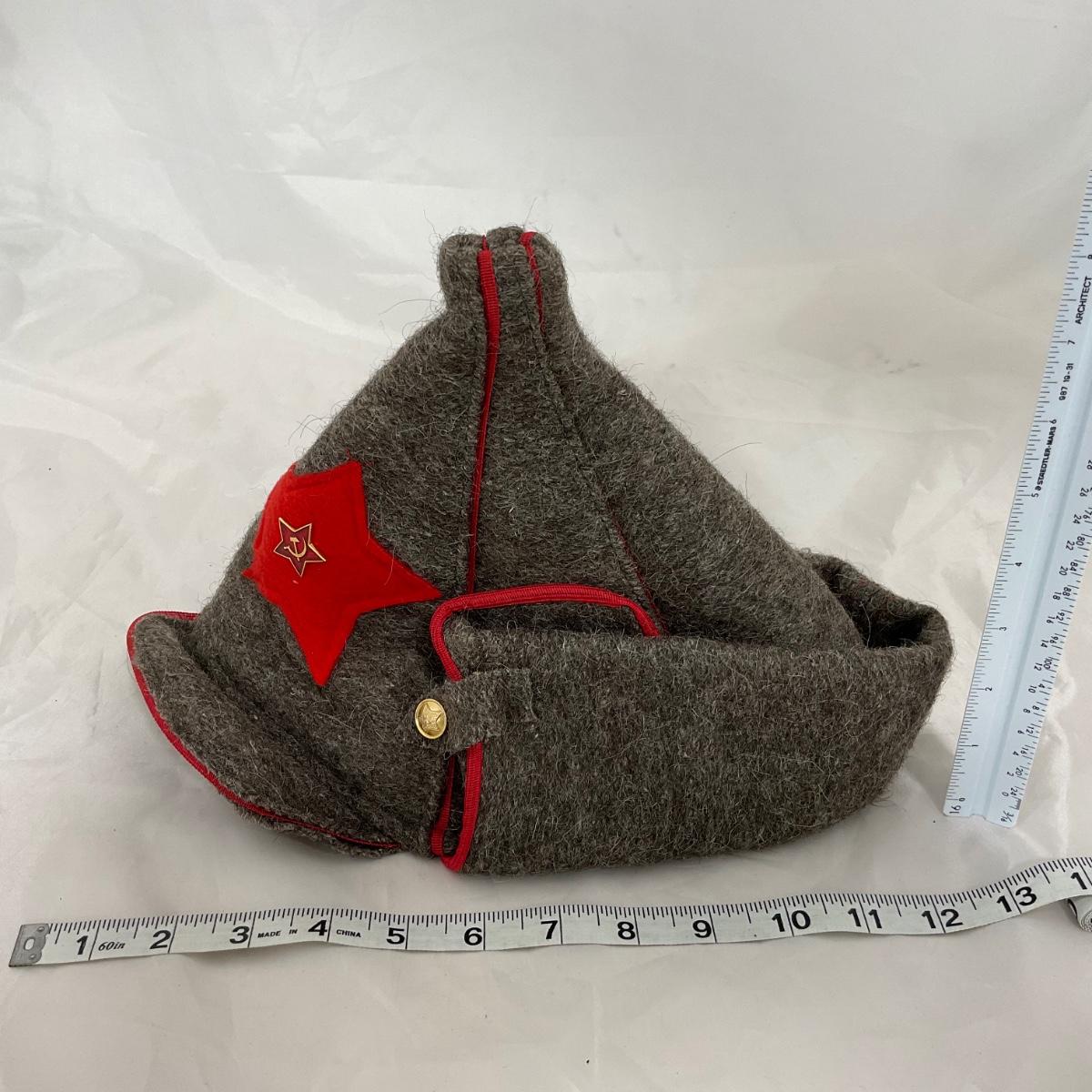 One vintage USSR military hat. Please see photos for details and condition. ::: Shipping is available on this lot. If you require shipping you must let us know at the close of the auction. We will coordinate with you after the item has been won. Shipping fees will include insurance up to or exceeding the value of all items being mailed. If you have any questions regarding this lot please contact the auctioneer either via this website, by direct email or by phone. PICK UP TIMES and other important information can be found in the TERMS and DESCRIPTION of the auction. Please take a look for pertinent information. Thanks!