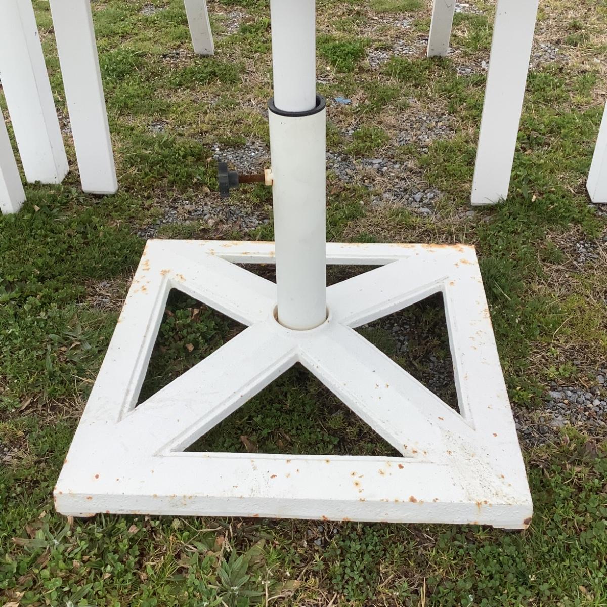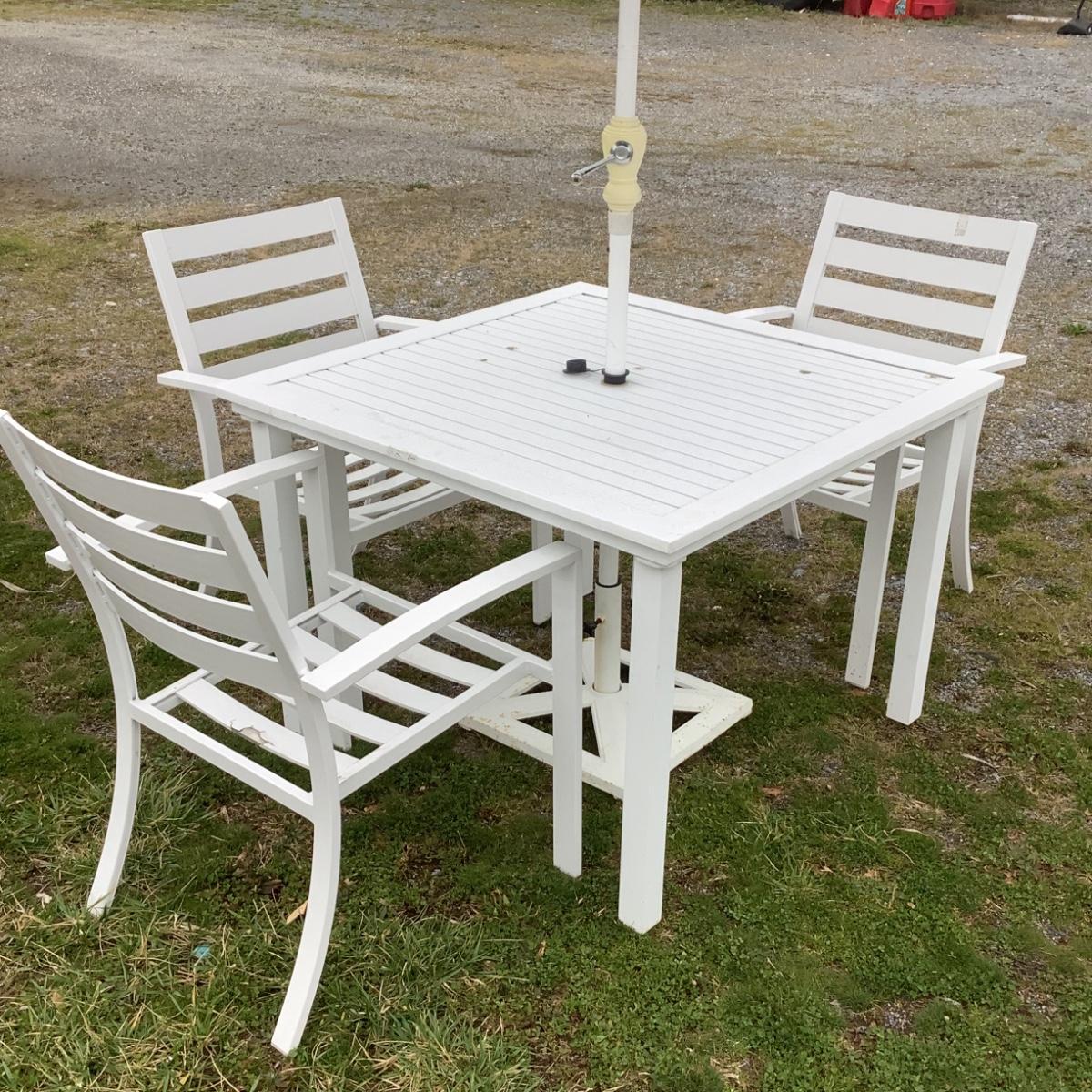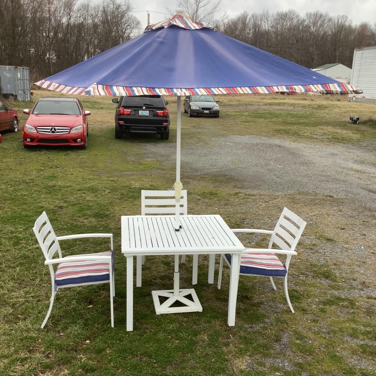 140 Outdoor Patio Dining Set with Umbrella, Three Metal Chairs & Table