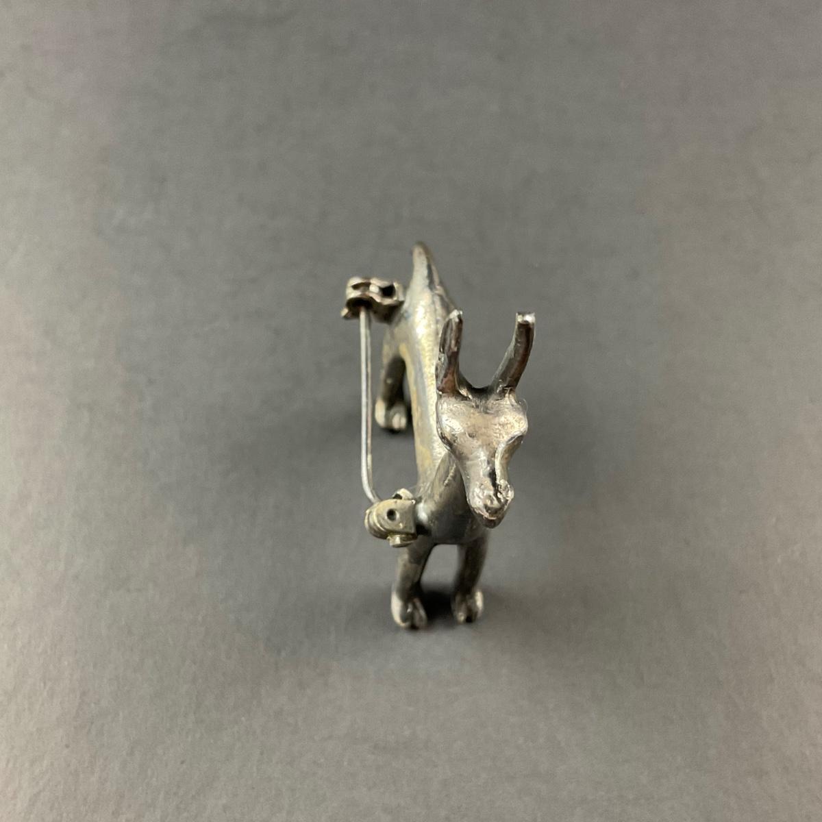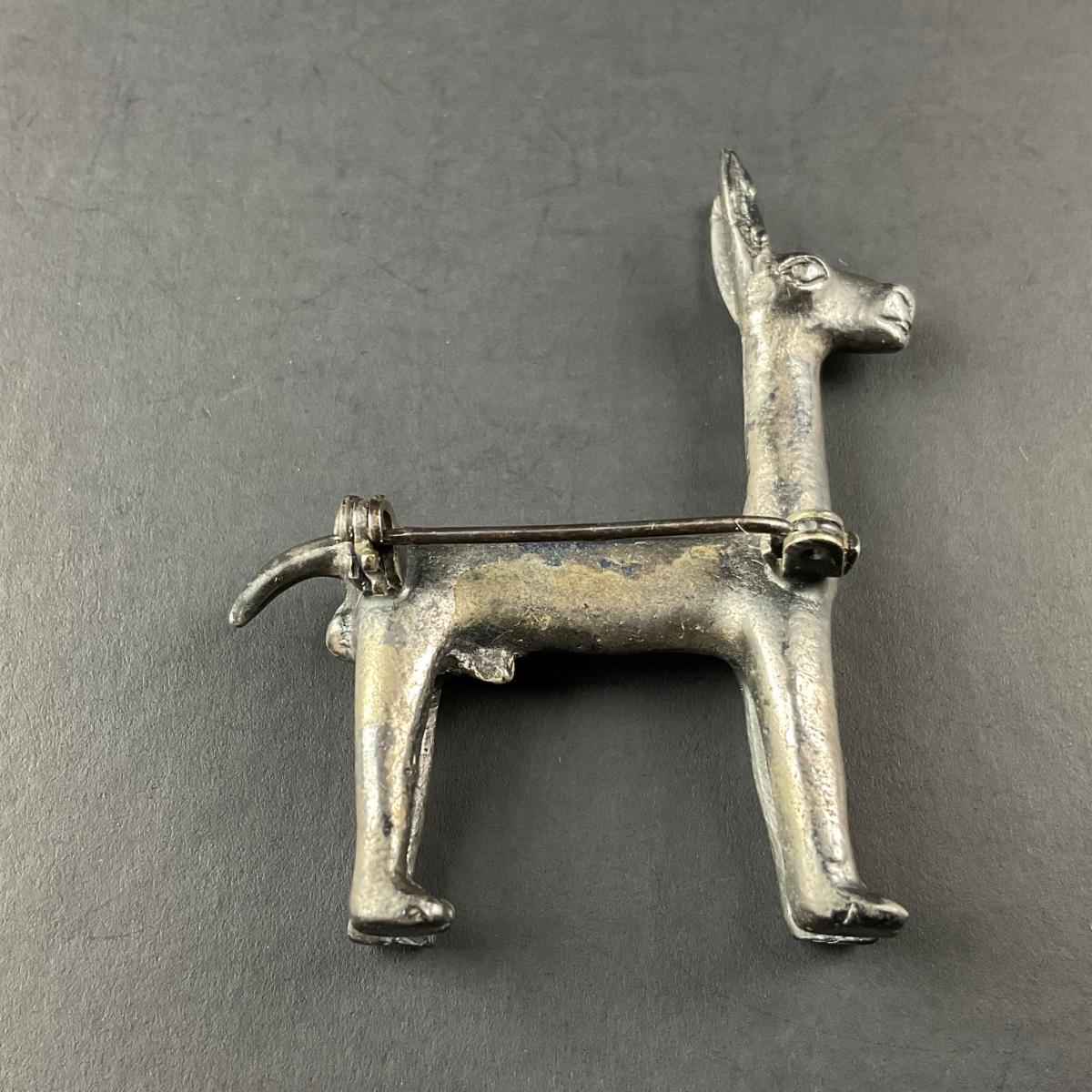 One unmarked sterling silver llama pin. Weight of the llama pin is 14 grams. Please see photos for details and condition. Any condition statement is given as a courtesy to a client, is an opinion, and should not be treated as a statement of fact. Reference to condition written, oral or within a condition report shall not be regarded as a full account of condition and may not include all defects, alterations, or restorations. Absence of a condition report does not imply a lot is flawless or lacking imperfections or damage. Katherine’s Auction & Appraisal Service shall have no responsibility for any error or omission. Returns shall not be accepted on the basis of condition. ::: Shipping is available on this lot. If you require shipping you must let us know at the close of the auction. We will coordinate with you after the item has been won. Shipping fees will include insurance up to or exceeding the value of all items being mailed. If you have any questions regarding this lot please contact the auctioneer either via this website, by direct email or by phone. PICK UP TIMES and other important information can be found in the TERMS and DESCRIPTION of the auction. Please take a look for pertinent information. Thanks!