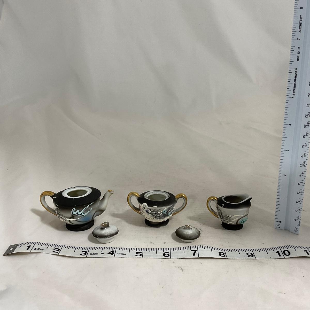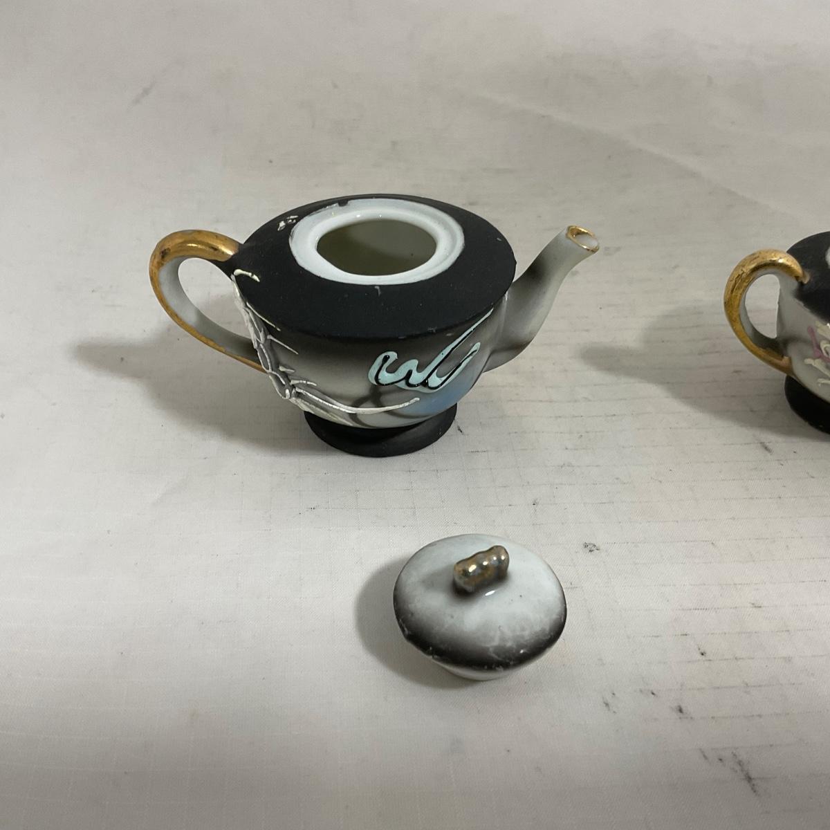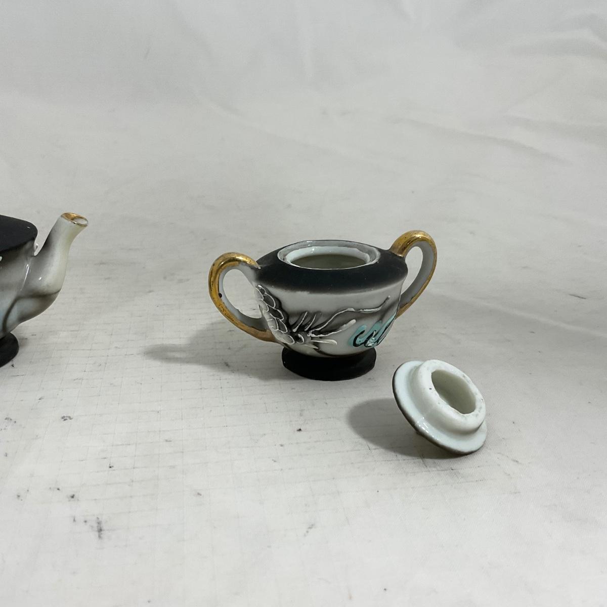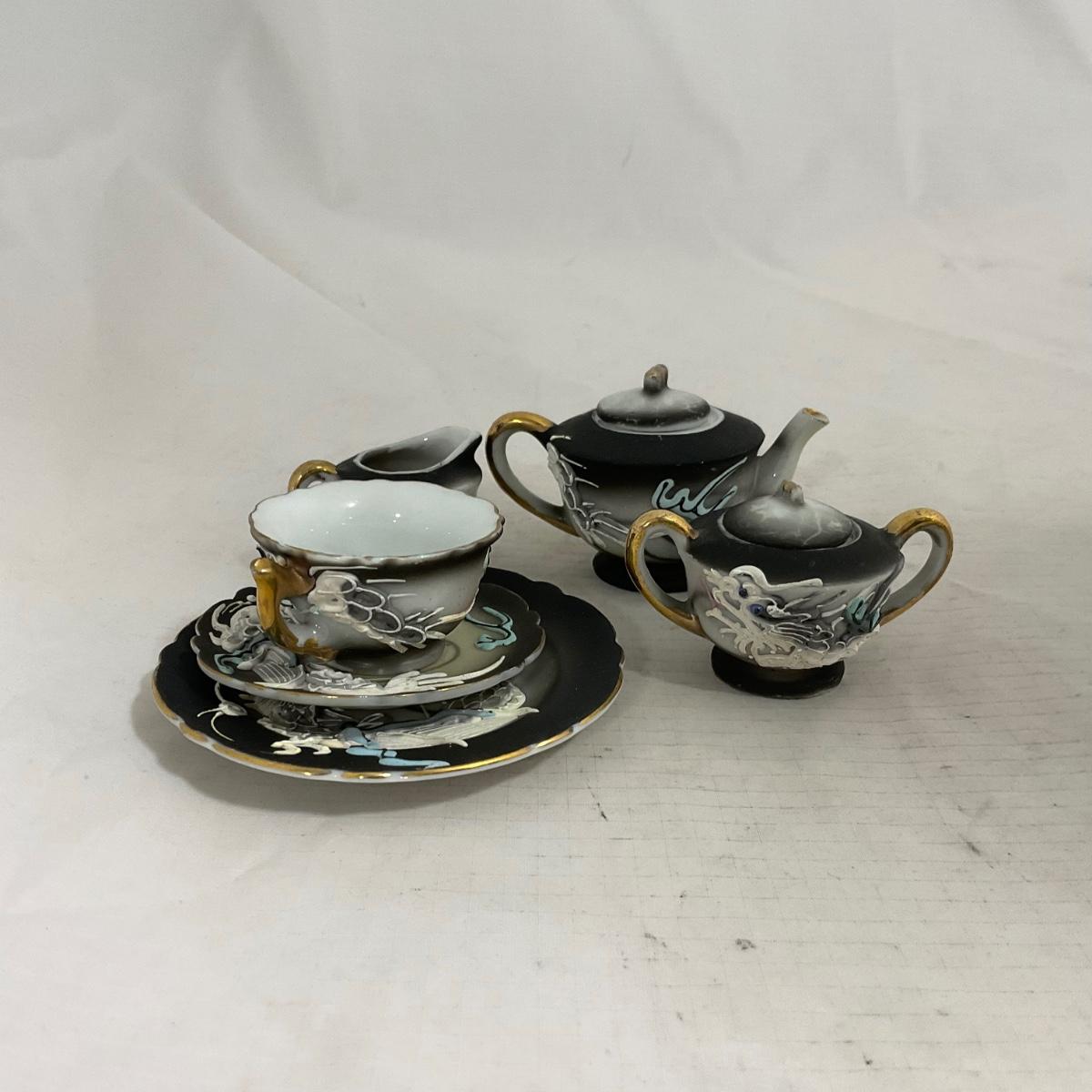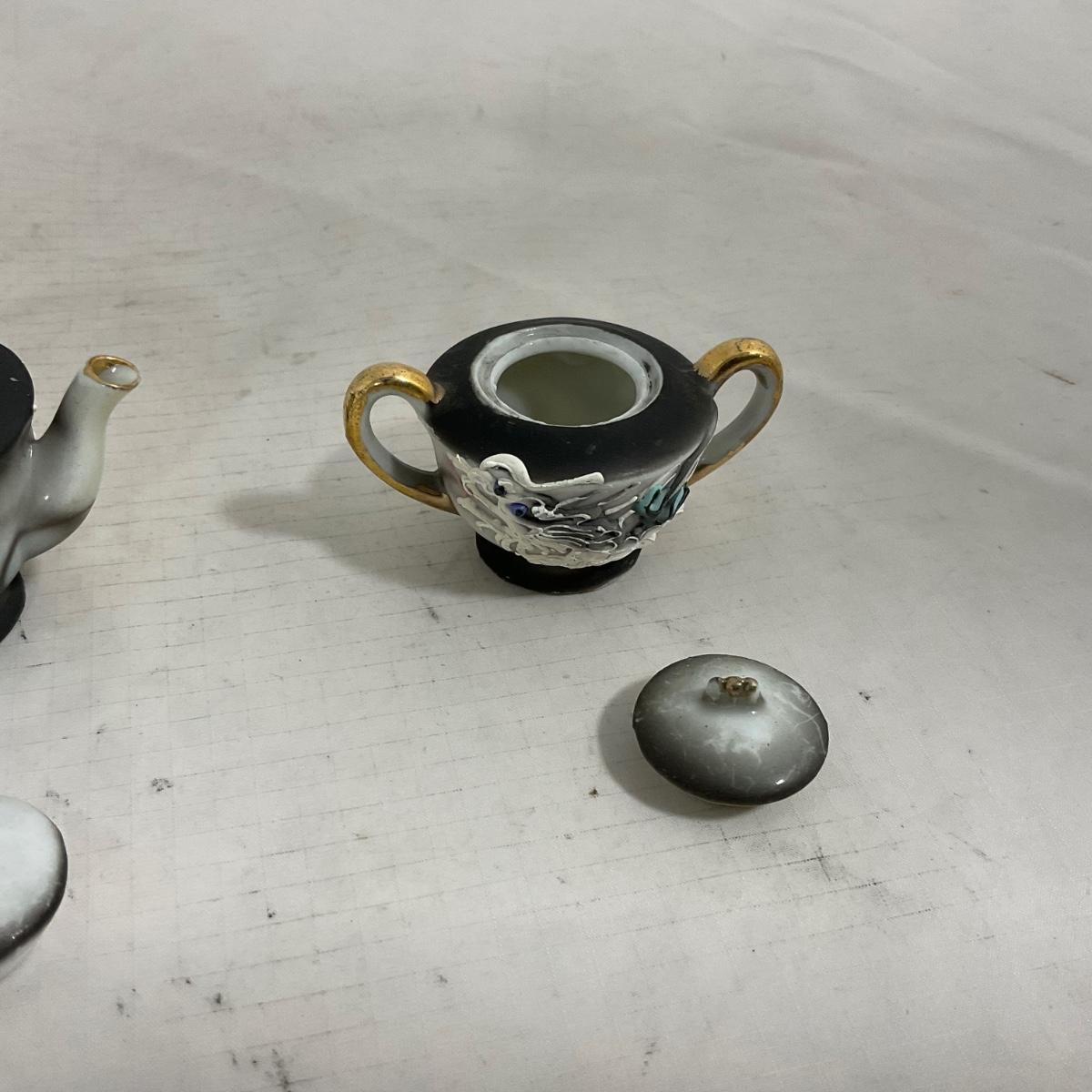 -140- Small Black & White Accented | Decretive | Asian Inspired | Childs Tea Set