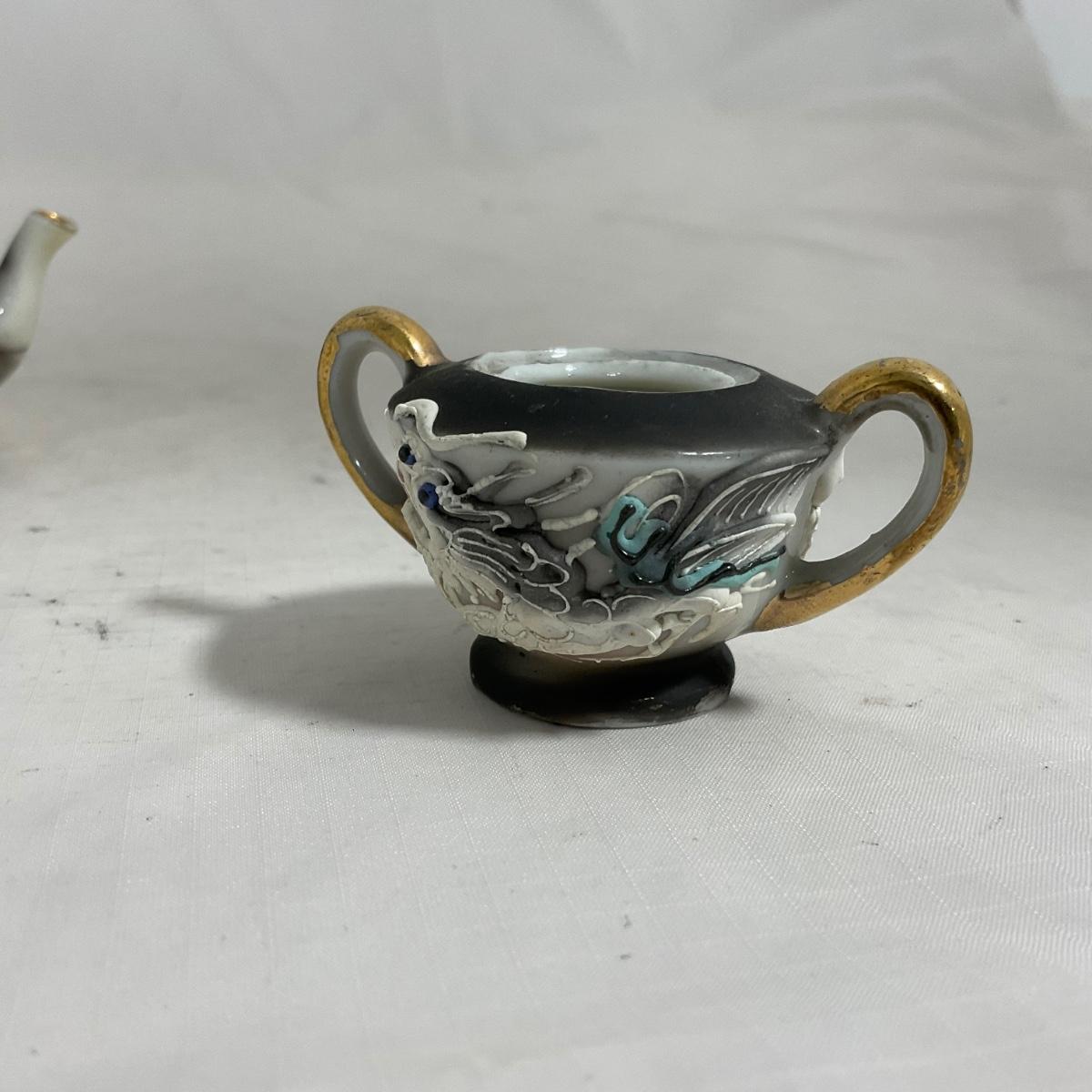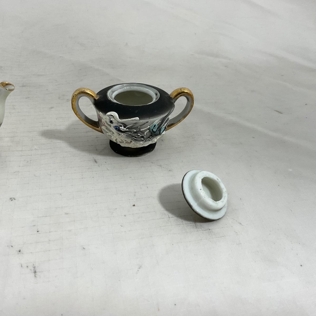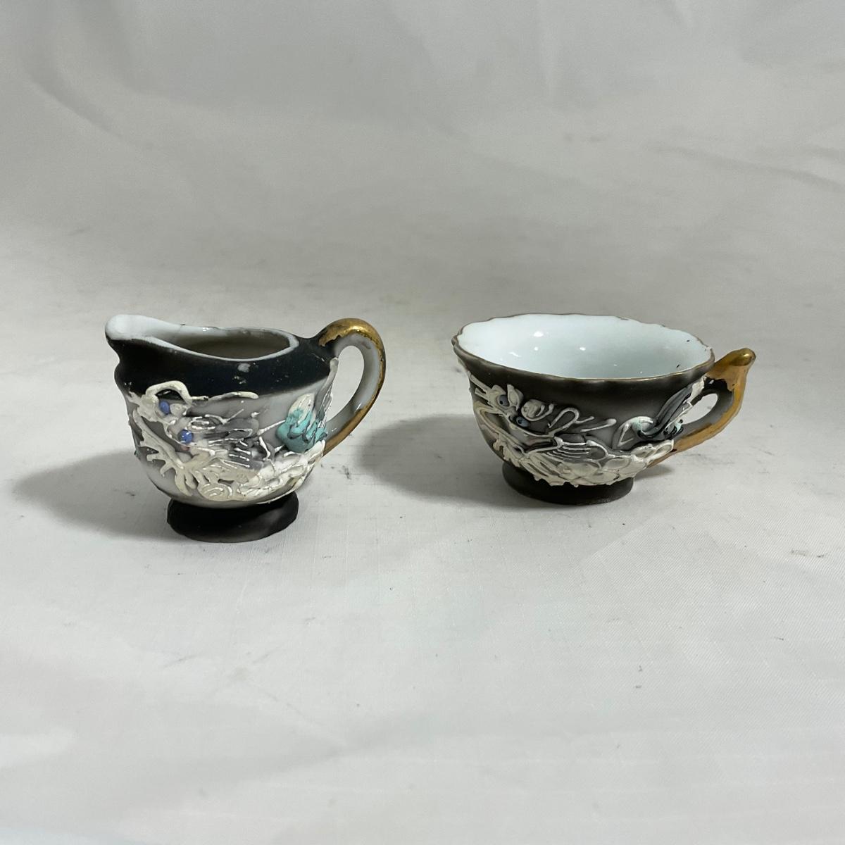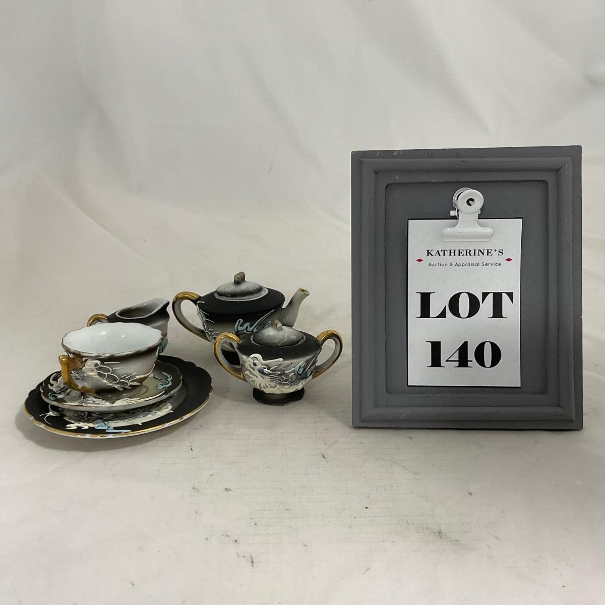 -140- Small Black & White Accented | Decretive | Asian Inspired | Childs Tea Set