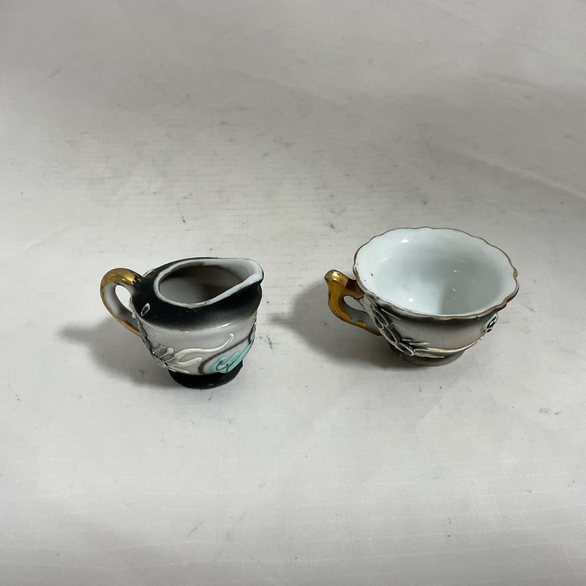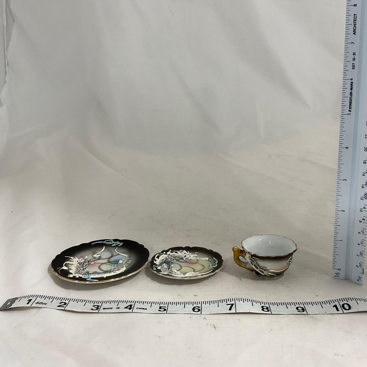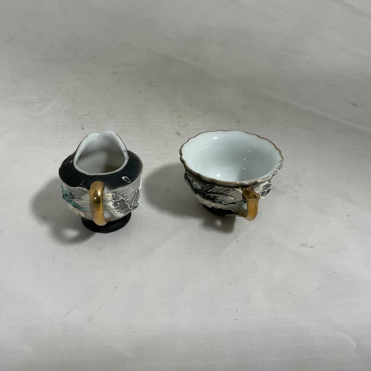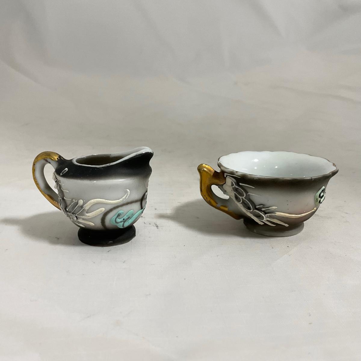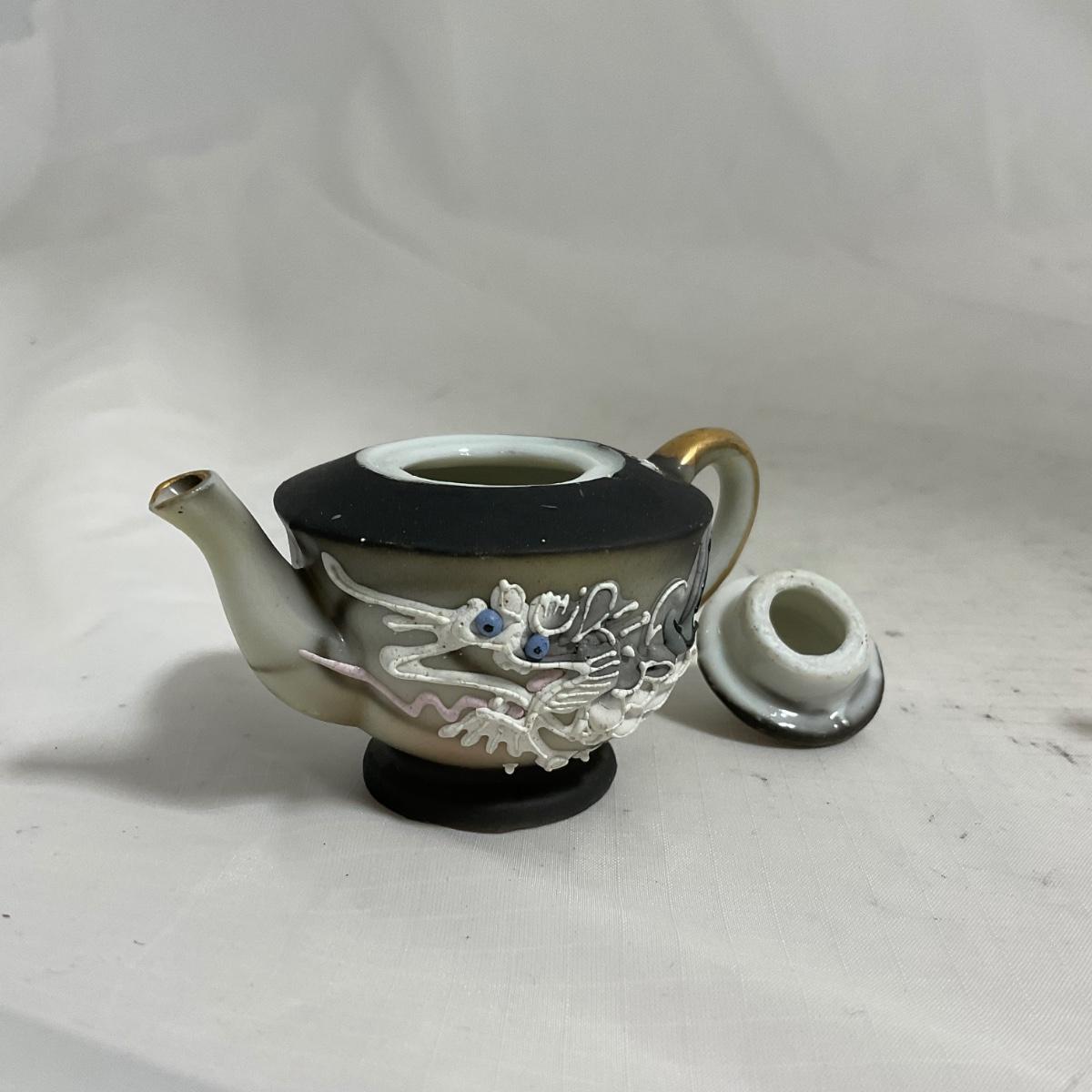 -140- Small Black & White Accented | Decretive | Asian Inspired | Childs Tea Set