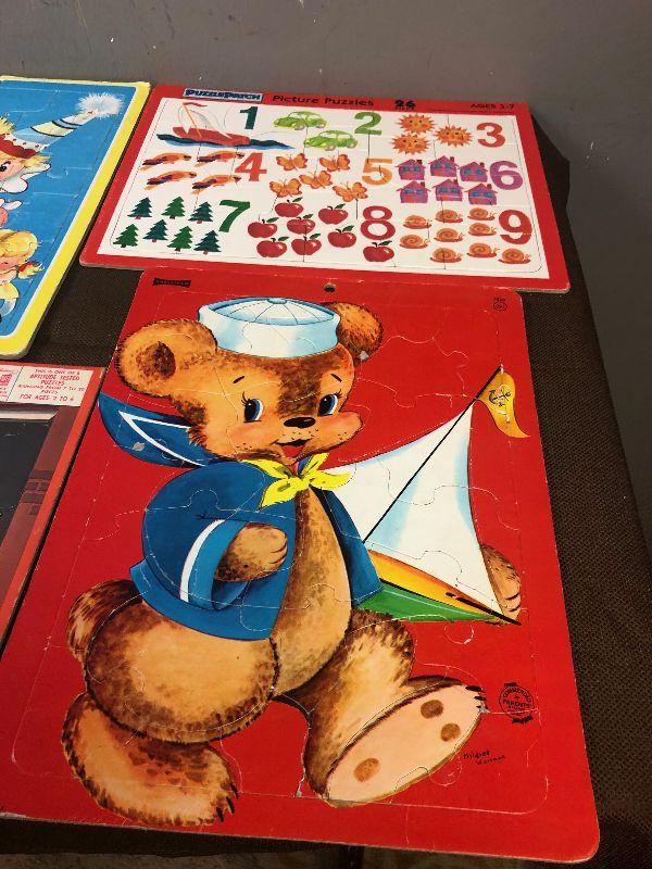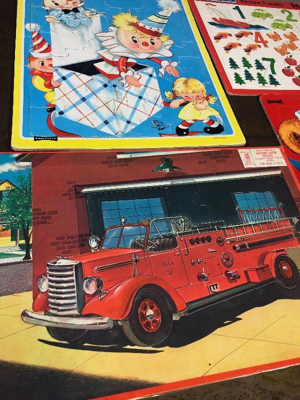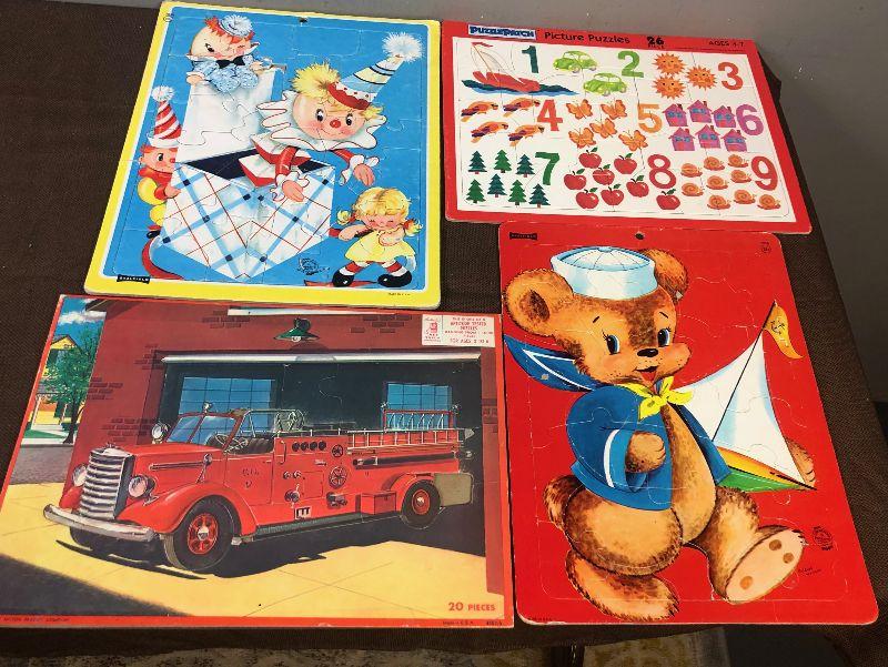 #140 Vintage LOT OF 4 PUZZELS - #'s, Teddy, Fire Engine