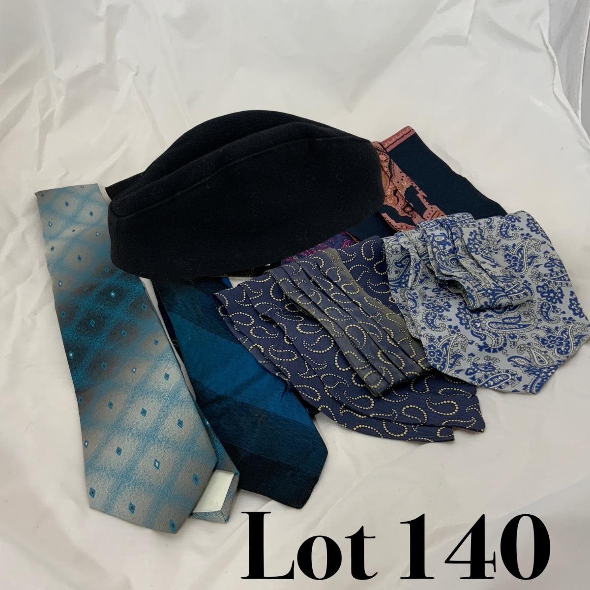 From the Estate of Peter and Alice Radovanovich: Two vintage Silk Ties, Four vintage Silk Ascots and a Vintage Will Black Military Style Envelope Hat. All in fine vintage condition, some staining on the ascots. Please see photos for details and condition. ::: Shipping is available on this lot. If you require shipping you must let us know at the close of the auction. We will coordinate with you after the item has been won. Shipping fees will include insurance up to or exceeding the value of all items being mailed. If you have any questions regarding this lot please contact the auctioneer either via this website, by direct email or by phone. PICK UP TIMES and other important information can be found in the TERMS and DESCRIPTION of the auction. Please take a look for pertinent information. Thanks!