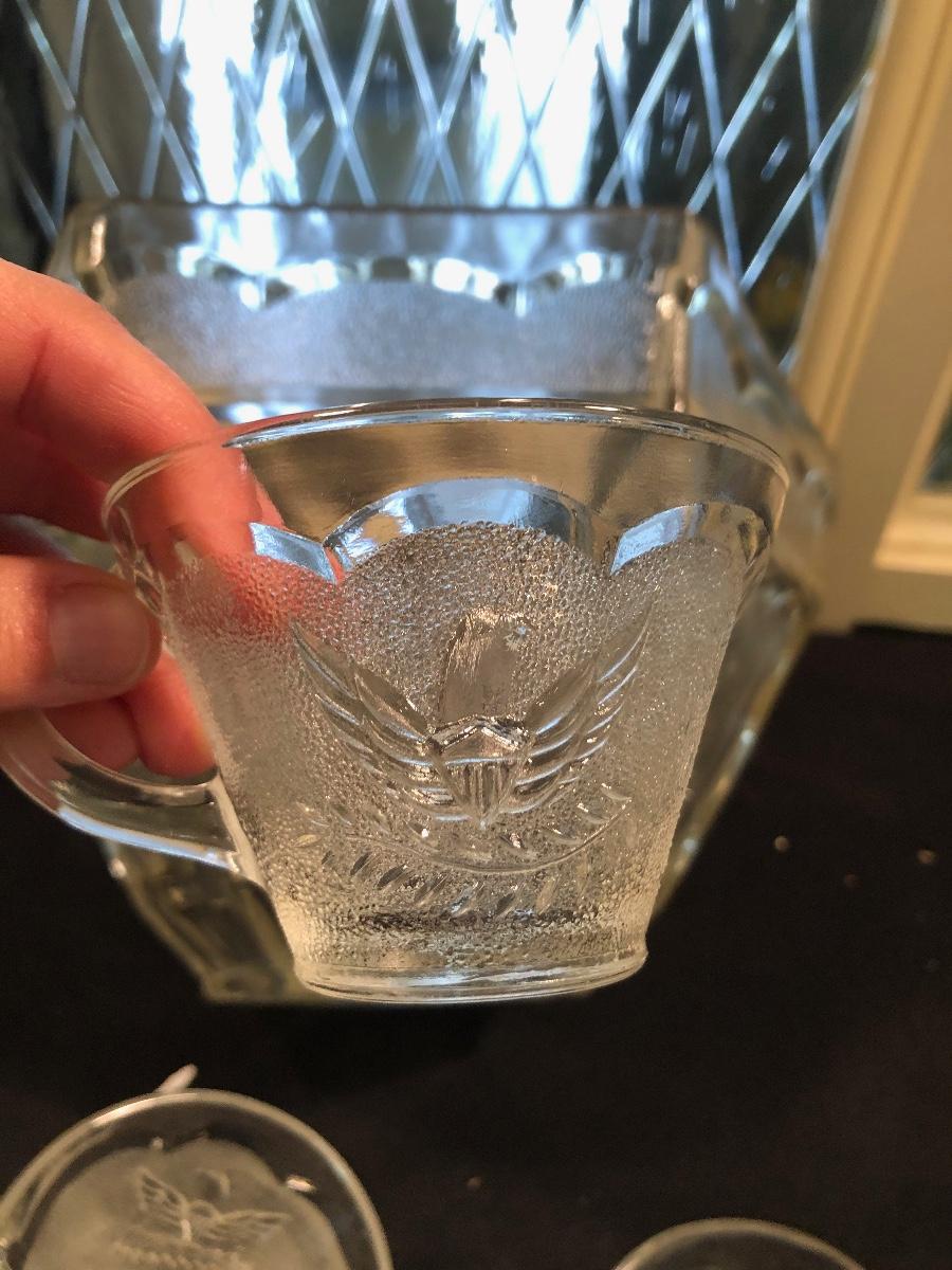 #140- Vintage patriotic punch bowl with 6 cups very unique