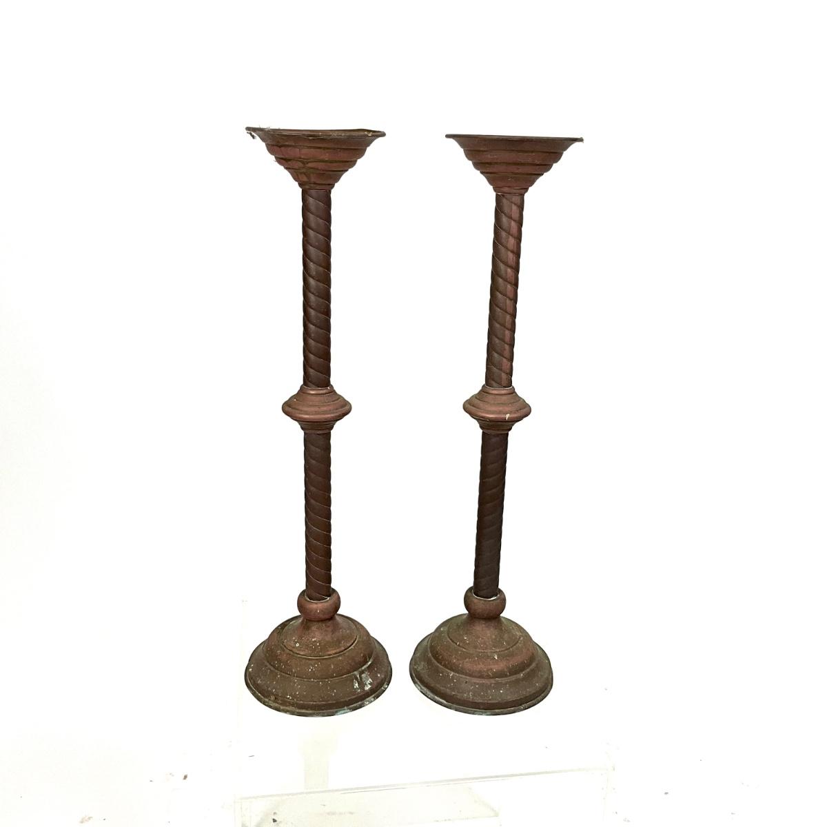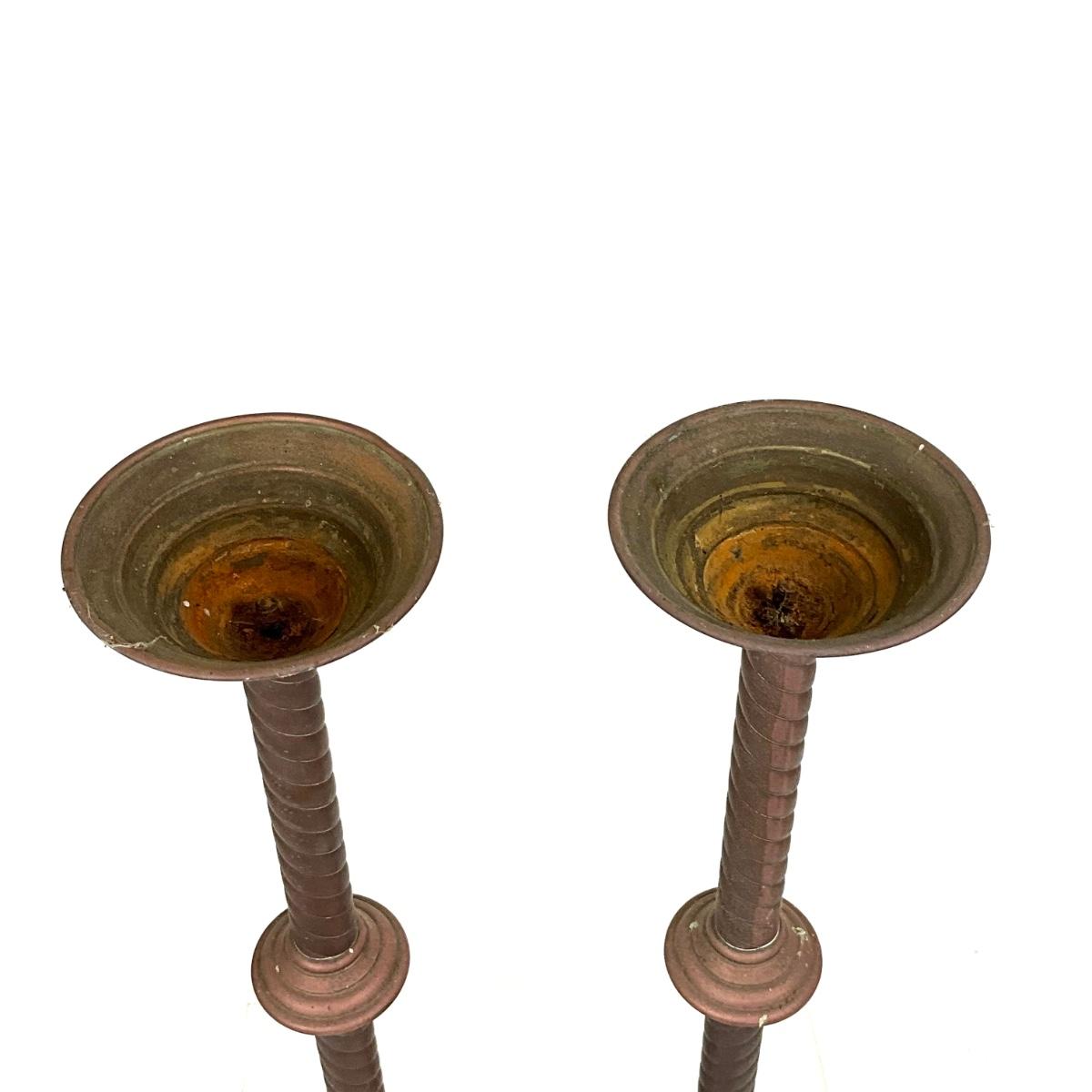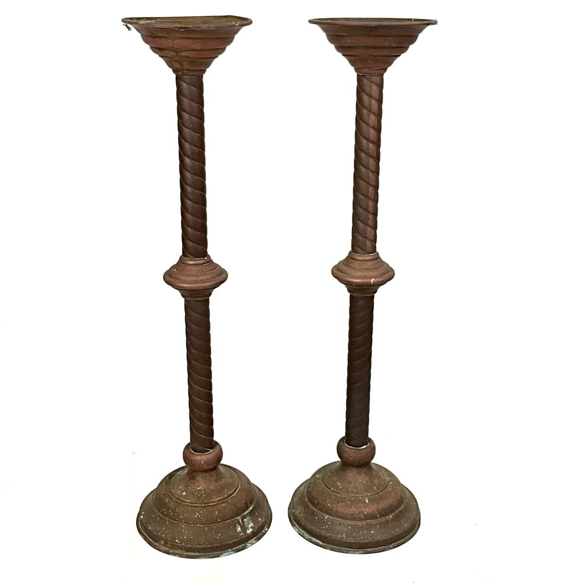 1400 Pair of Large Antique Copper Candlesticks 26"