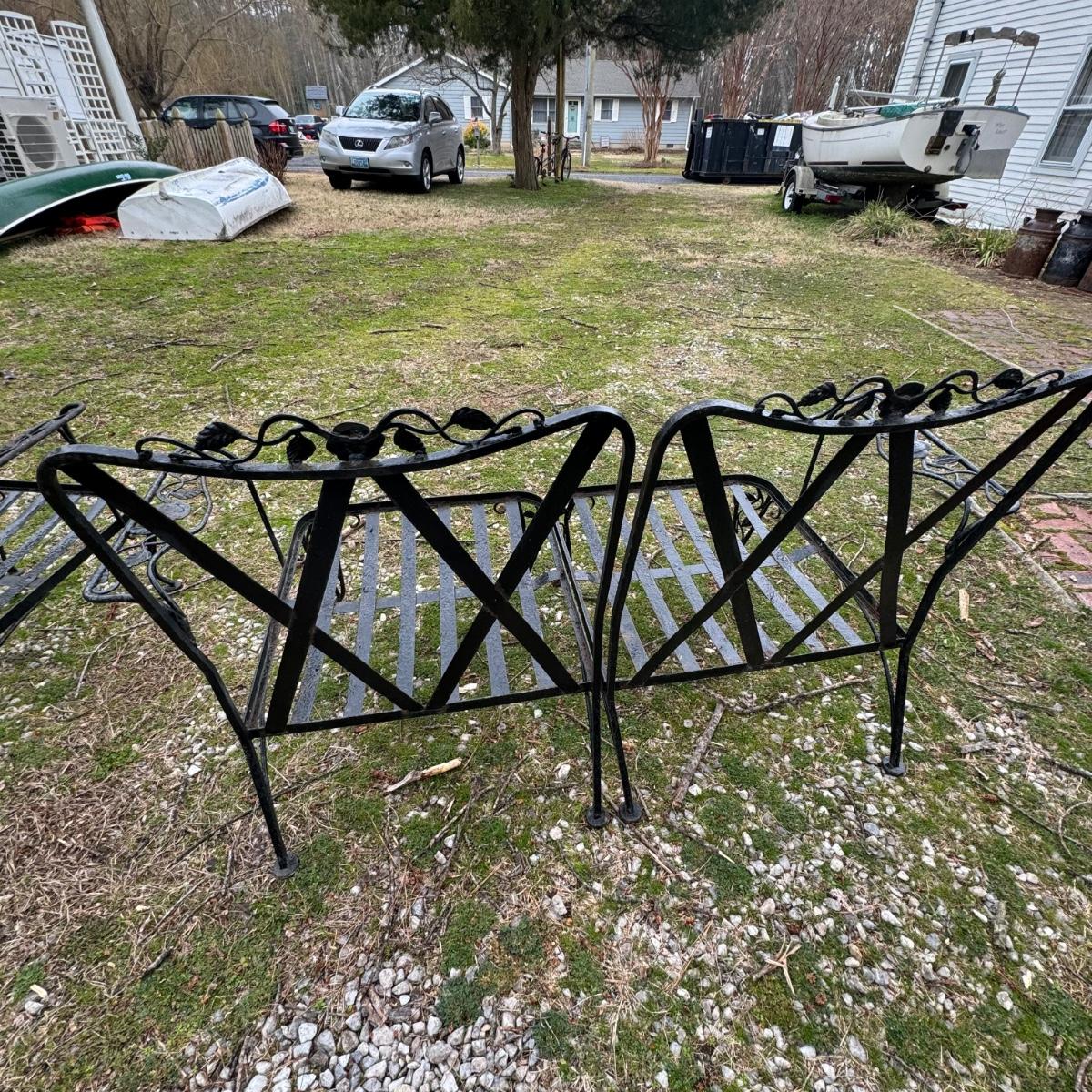 Vintage Black Iron Loveseat & Chair. Great shape for their age.