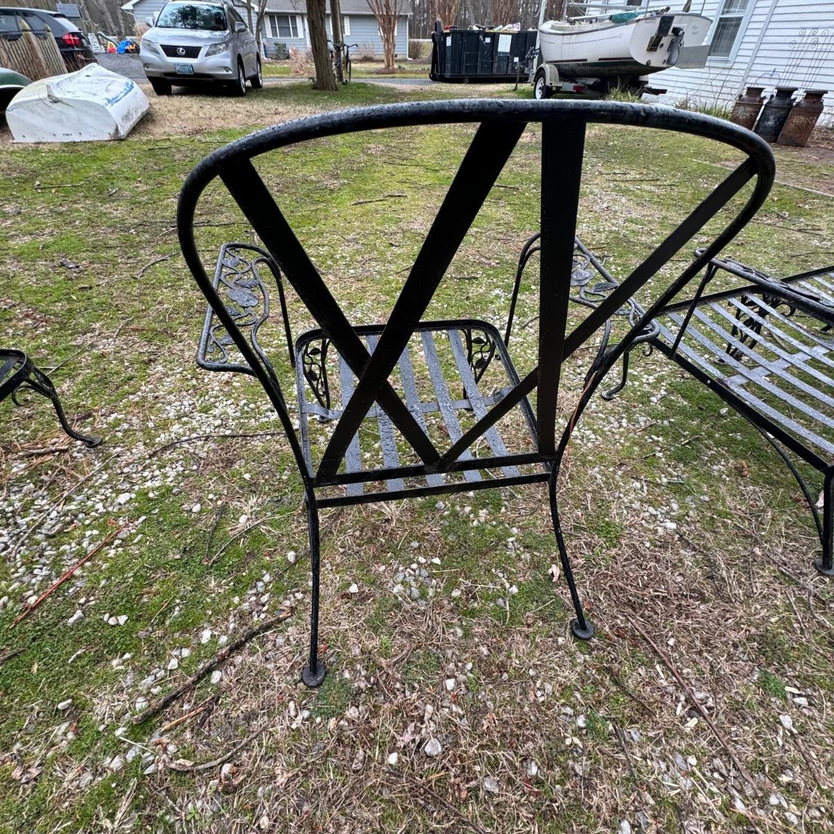 1401 Vintage Woodard Black Iron Loveseat & Chair