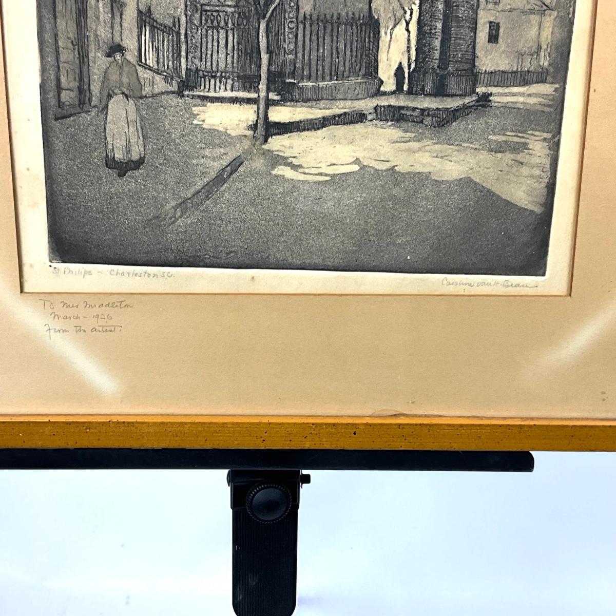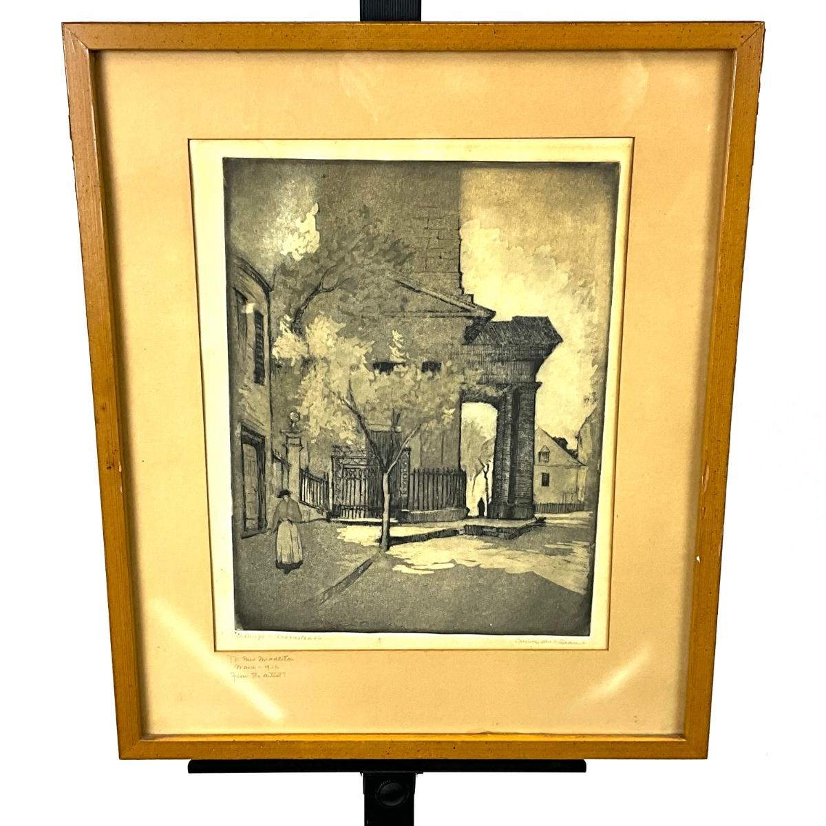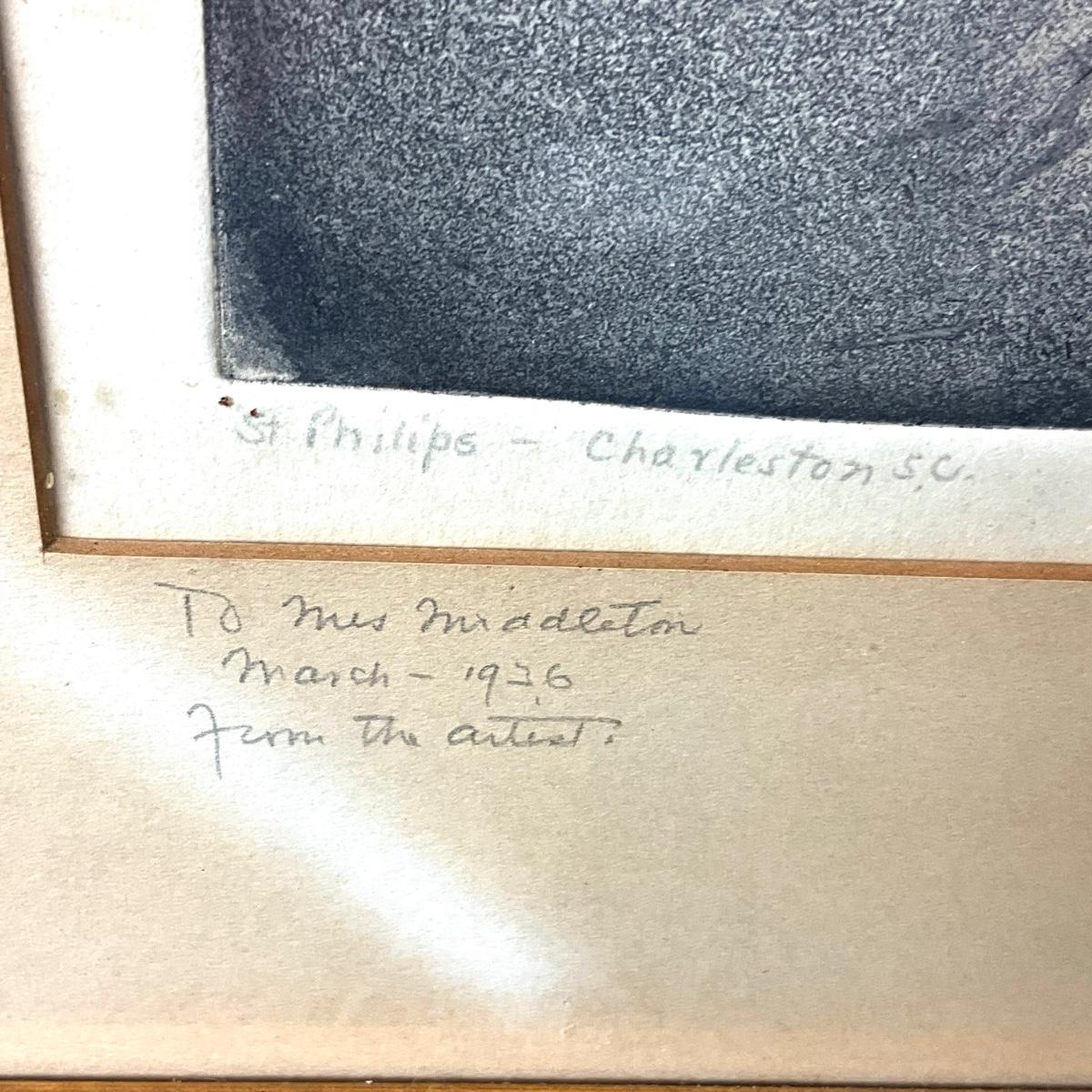 Etching dated 1935 signed by Artist and listed as St. Philip Charleston, S.C.