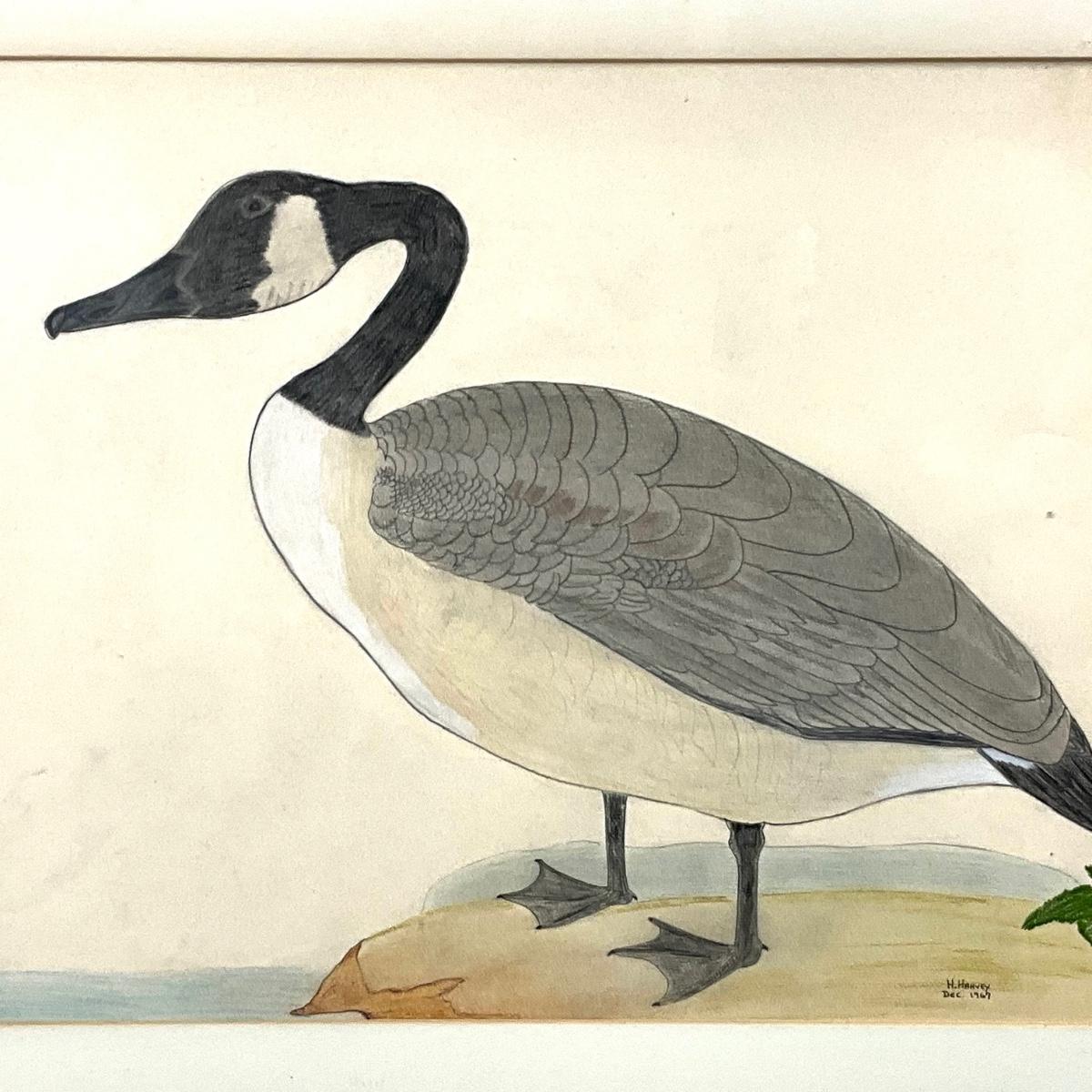 1406 Vintage Original Pastel Framed Art of Goose by H. Harvey
