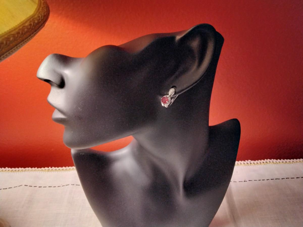 1.40ctw Mozambique Ruby & White Sapphire 925 Silver Earrings