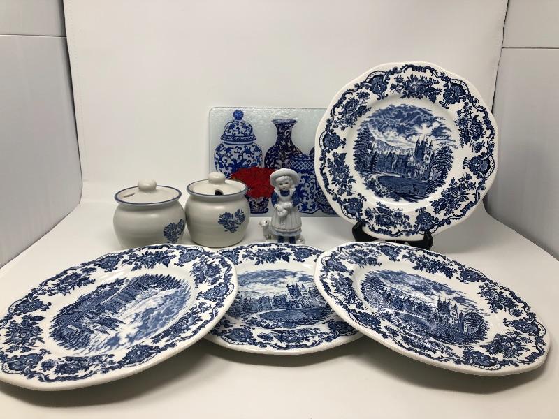 Wedgwood Royal Homes of Britain Collector Plates. Girl figurine, stoneware and cutting board. plates are 8 inches