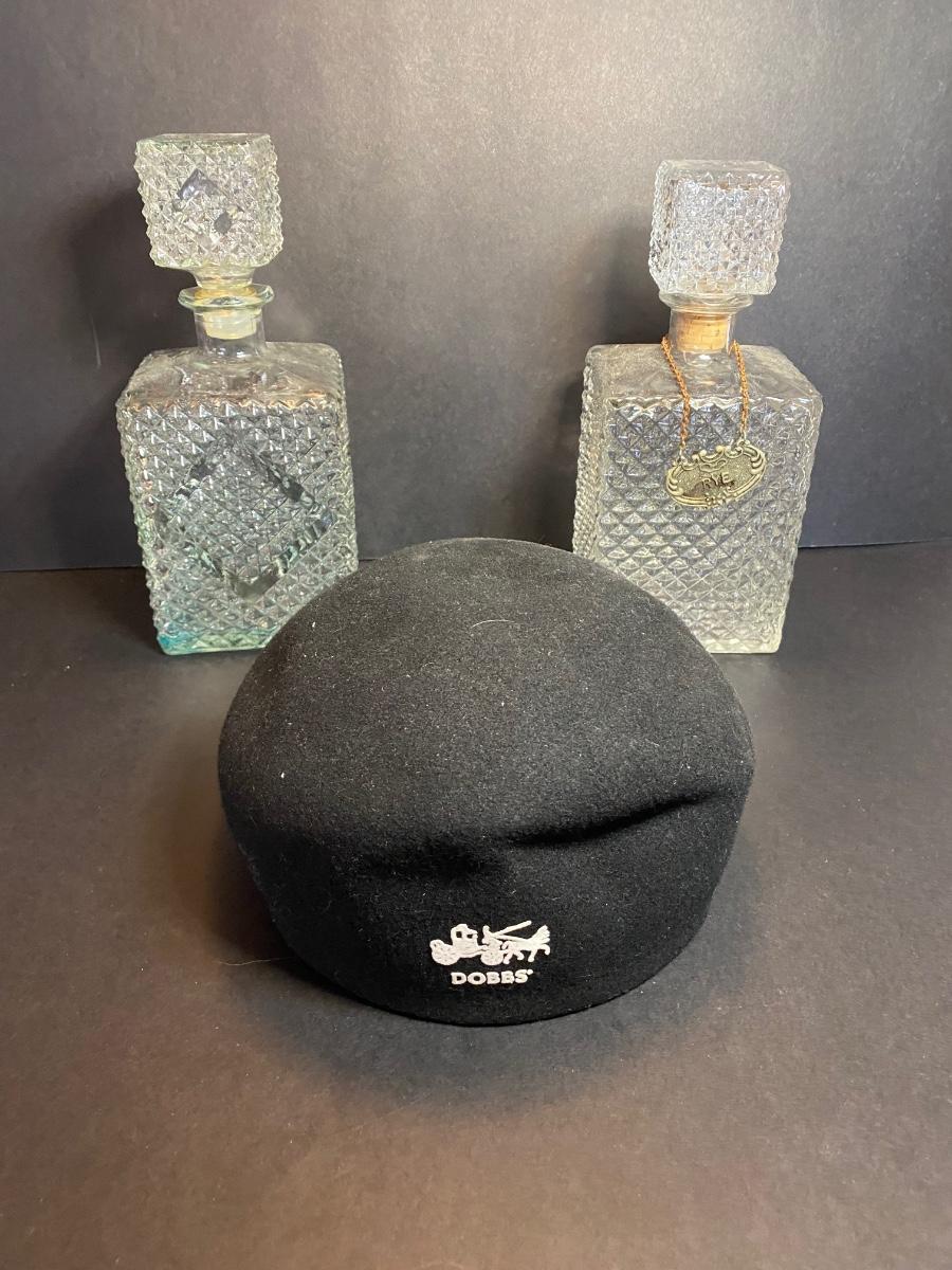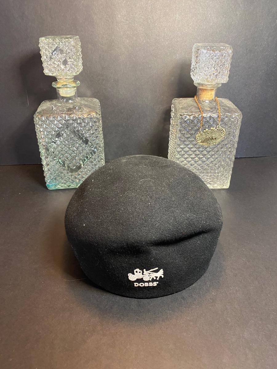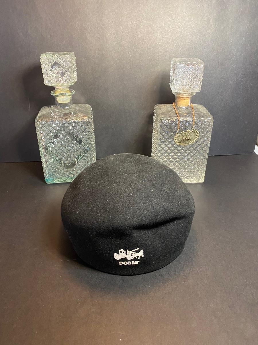 LOT 141C: Vintage Decanters & Dobbs Mens Cap