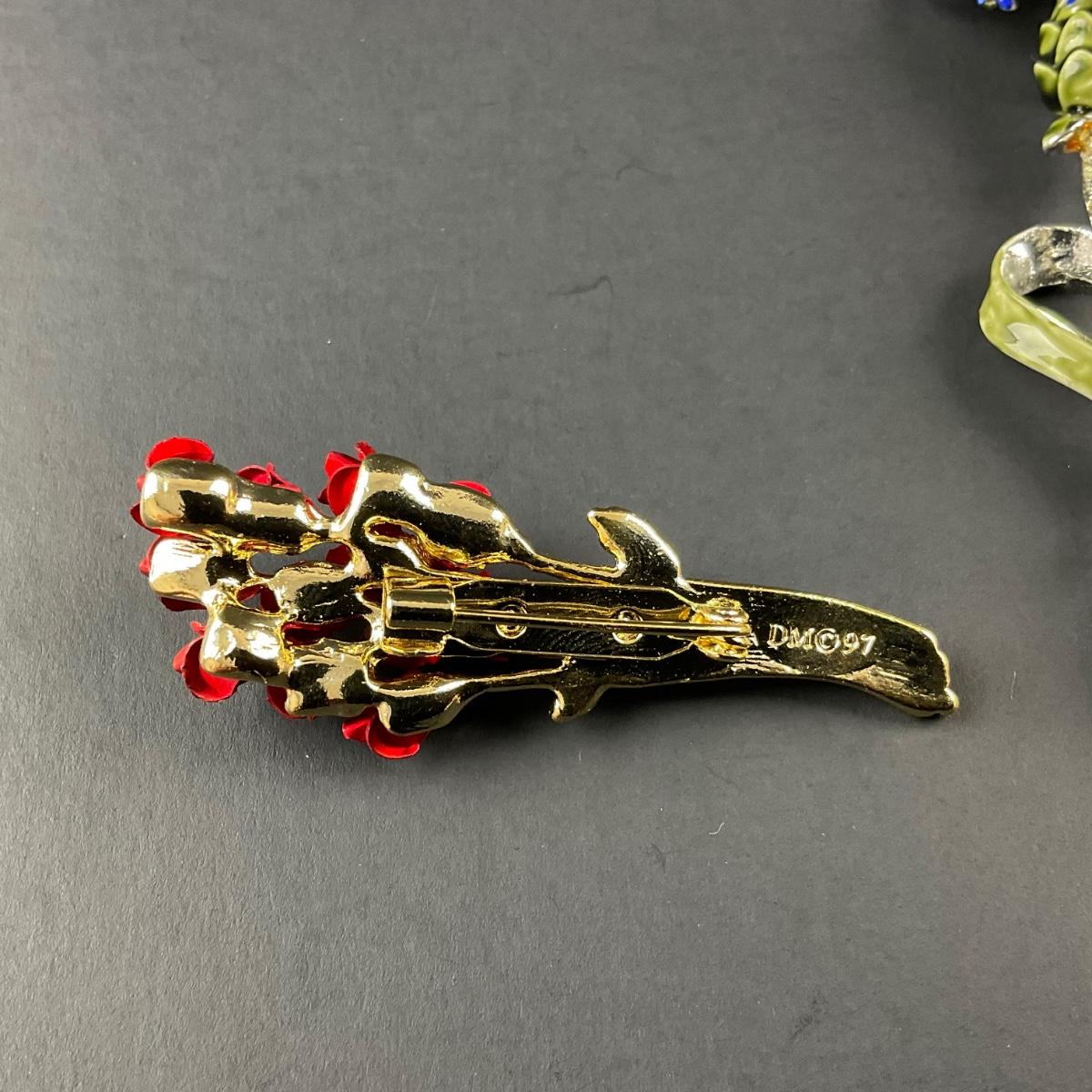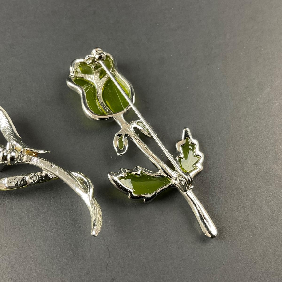 Three pins one Red, Blue, Green flowers two of them are marked one is Dm.97 and one is Coro. This piece does have some scuffs, scratches, marks, or slight damage, but otherwise appears to be in great shape. Please see photos for details and condition. Any condition statement is given as a courtesy to a client, is an opinion, and should not be treated as a statement of fact. Reference to condition written, oral or within a condition report shall not be regarded as a full account of condition and may not include all defects, alterations, or restorations. Absence of a condition report does not imply a lot is flawless or lacking imperfections or damage. Katherine’s Auction & Appraisal Service shall have no responsibility for any error or omission. Returns shall not be accepted on the basis of condition. ::: Shipping is available on this lot. If you require shipping you must let us know at the close of the auction. We will coordinate with you after the item has been won. Shipping fees will include insurance up to or exceeding the value of all items being mailed. If you have any questions regarding this lot please contact the auctioneer either via this website, by direct email or by phone. PICK UP TIMES and other important information can be found in the TERMS and DESCRIPTION of the auction. Please take a look for pertinent information. Thanks!