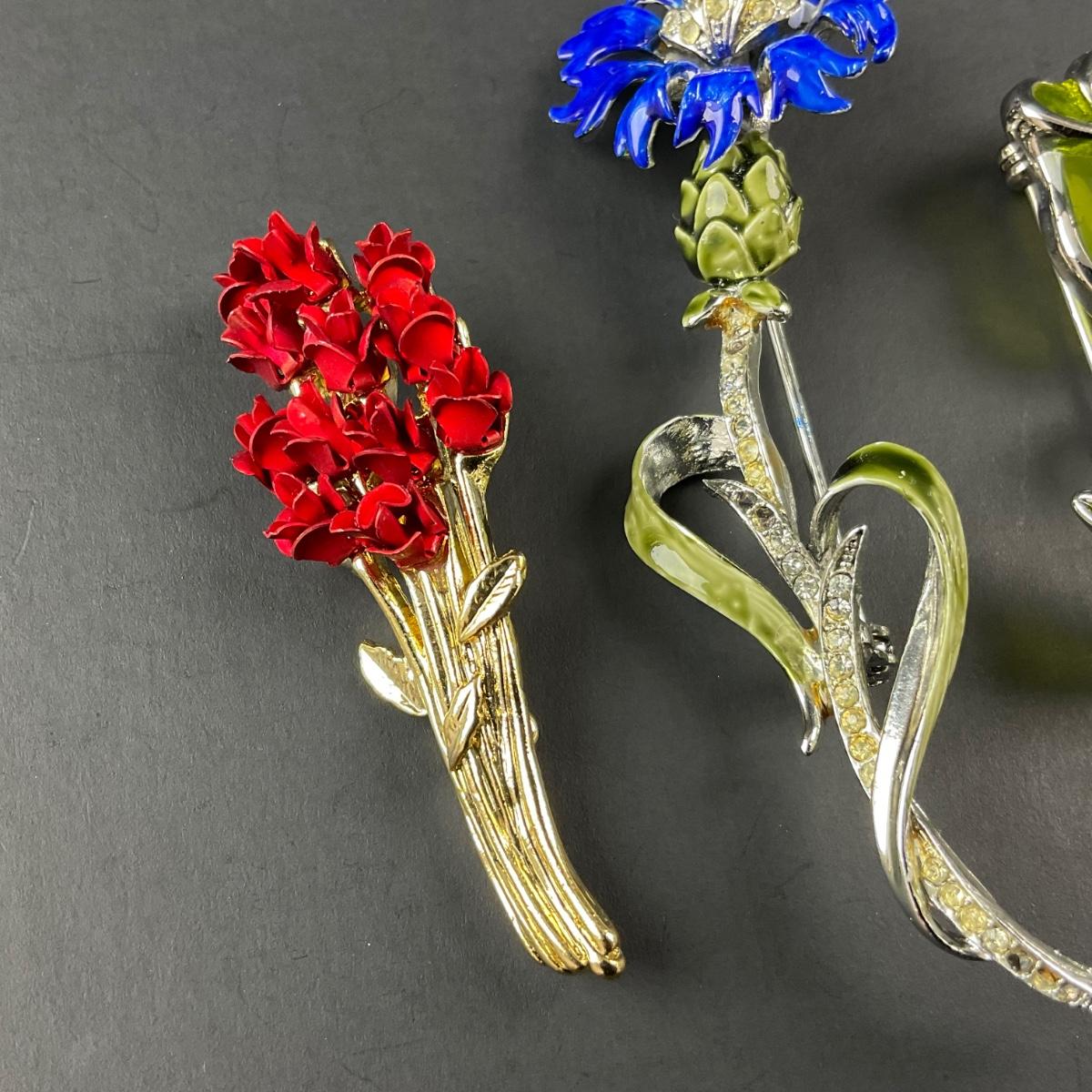 -141- BROOCH | Miscellaneous Red, Blue, Green Flower Pins