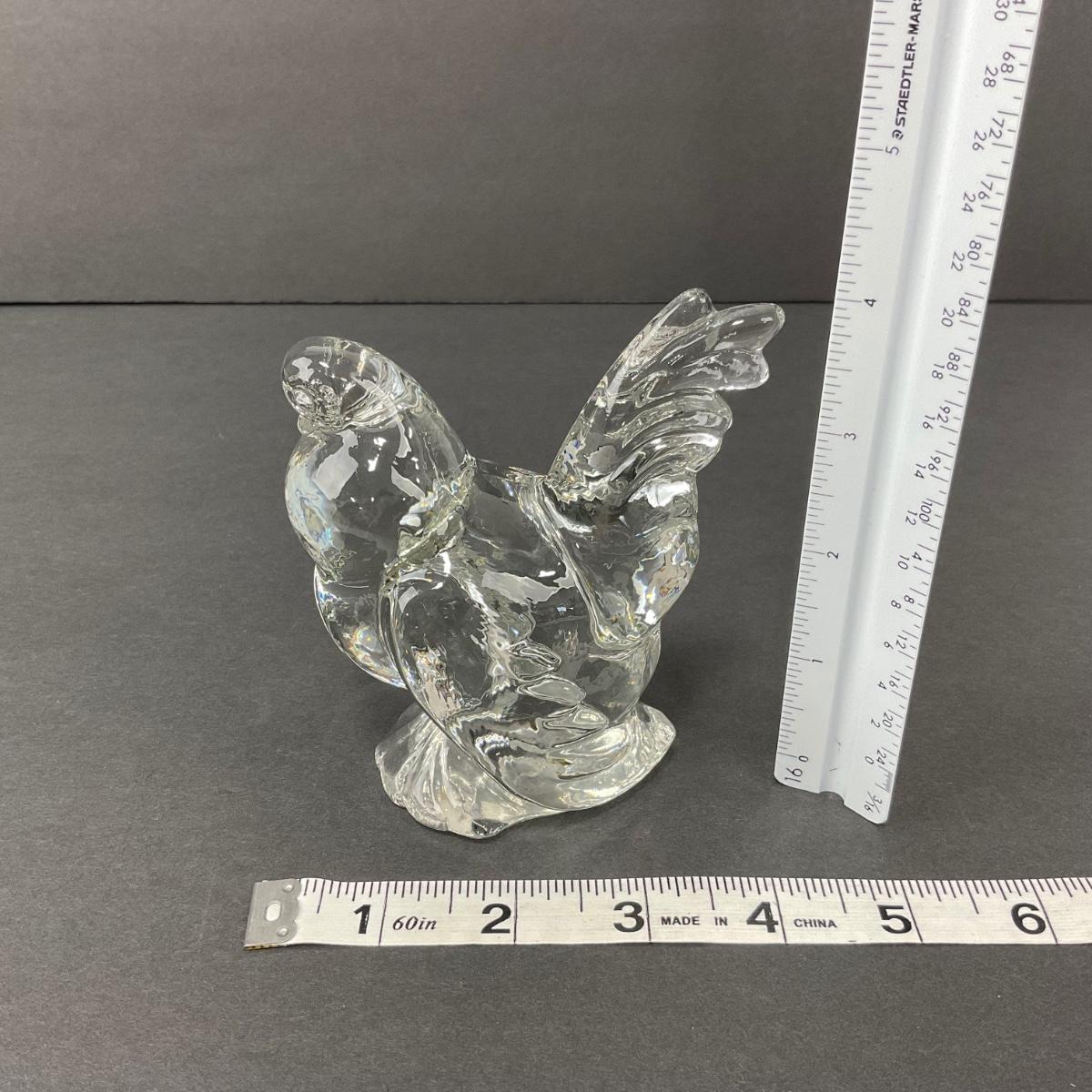 One vintage art glass Heisey hen figure this piece does appear to have straw marks. This piece does have some scuffs, scratches, marks, or slight damage, but otherwise appears to be in great shape. Please see photos for details and condition. Any condition statement is given as a courtesy to a client, is an opinion, and should not be treated as a statement of fact. Reference to condition written, oral or within a condition report shall not be regarded as a full account of condition and may not include all defects, alterations, or restorations. Absence of a condition report does not imply a lot is flawless or lacking imperfections or damage. Katherine’s Auction & Appraisal Service shall have no responsibility for any error or omission. Returns shall not be accepted on the basis of condition. ::: Shipping is available on this lot. If you require shipping you must let us know at the close of the auction. We will coordinate with you after the item has been won. Shipping fees will include insurance up to or exceeding the value of all items being mailed. If you have any questions regarding this lot please contact the auctioneer either via this website, by direct email or by phone. PICK UP TIMES and other important information can be found in the TERMS and DESCRIPTION of the auction. Please take a look for pertinent information. Thanks!