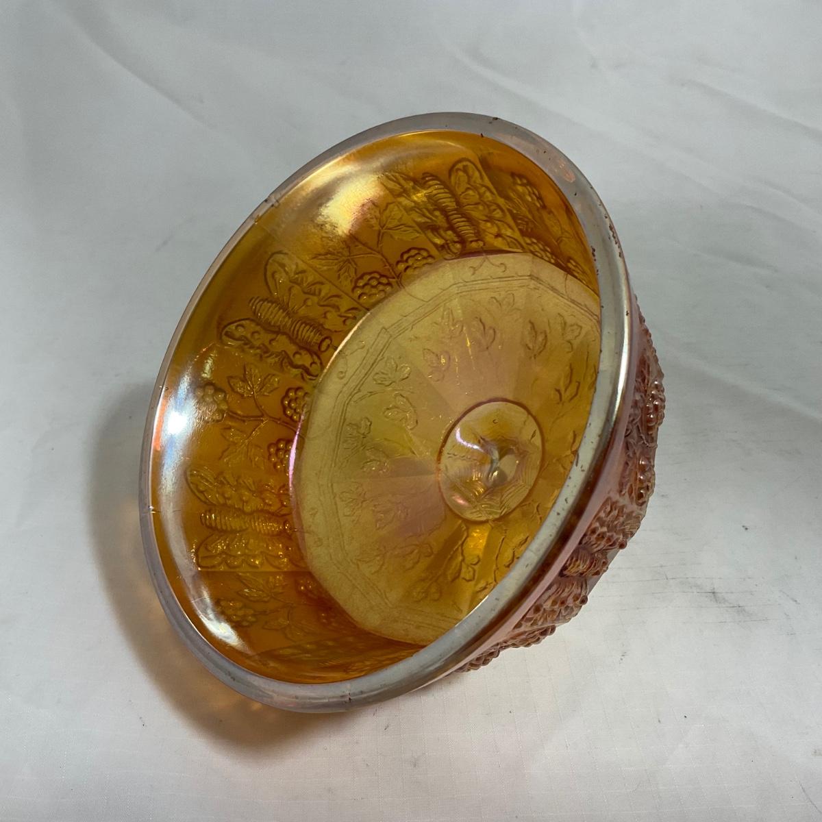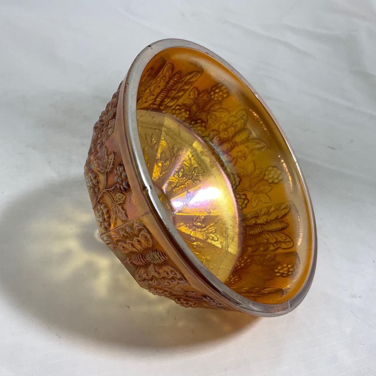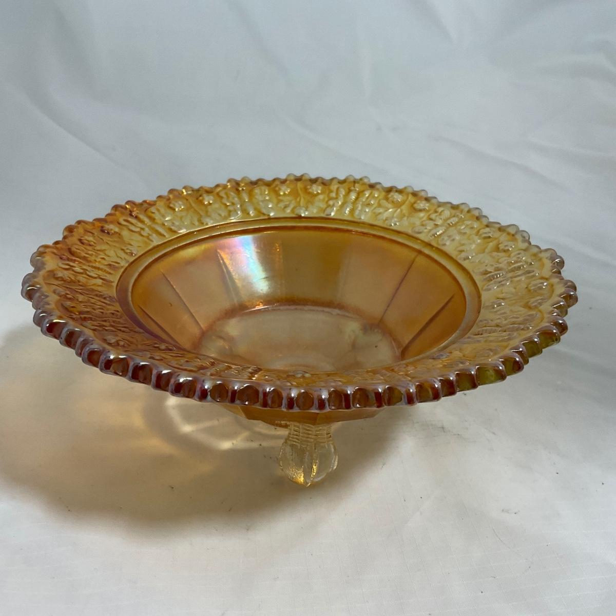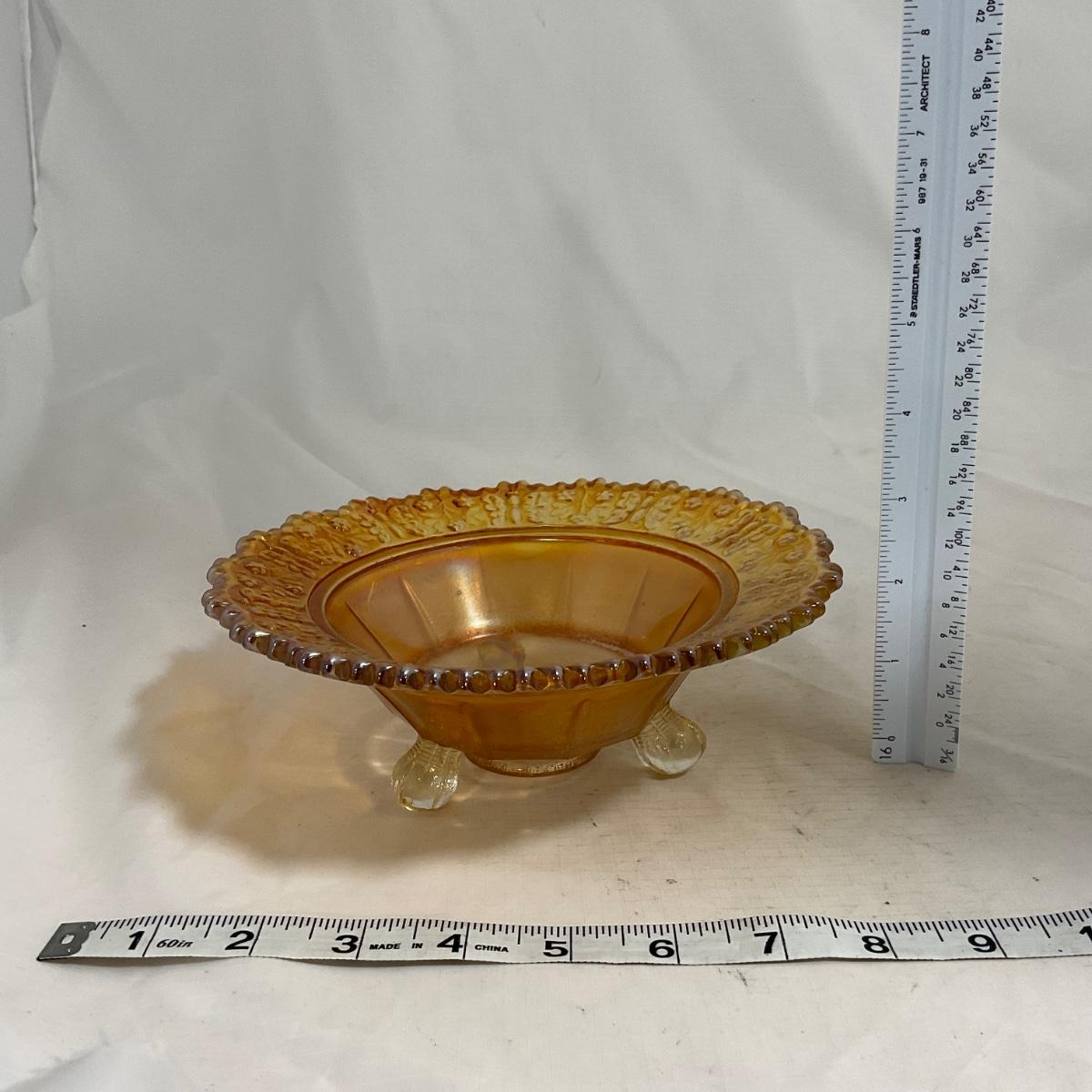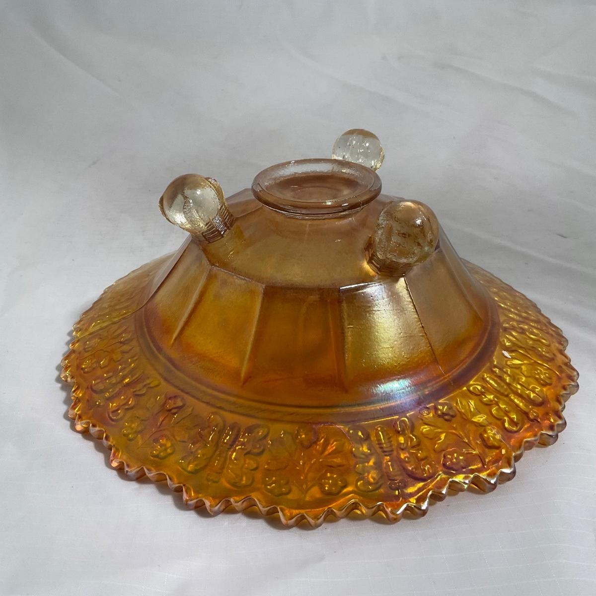 One tall orange carnival butterfly design covered butter dish. In amazing shape who doesn’t want a butterfly Butter dish! Please see photos for details and condition. ::: Shipping is available on this lot. If you require shipping you must let us know at the close of the auction. We will coordinate with you after the item has been won. Shipping fees will include insurance up to or exceeding the value of all items being mailed. If you have any questions regarding this lot please contact the auctioneer either via this website, by direct email or by phone. PICK UP TIMES and other important information can be found in the TERMS and DESCRIPTION of the auction. Please take a look for pertinent information. Thanks!