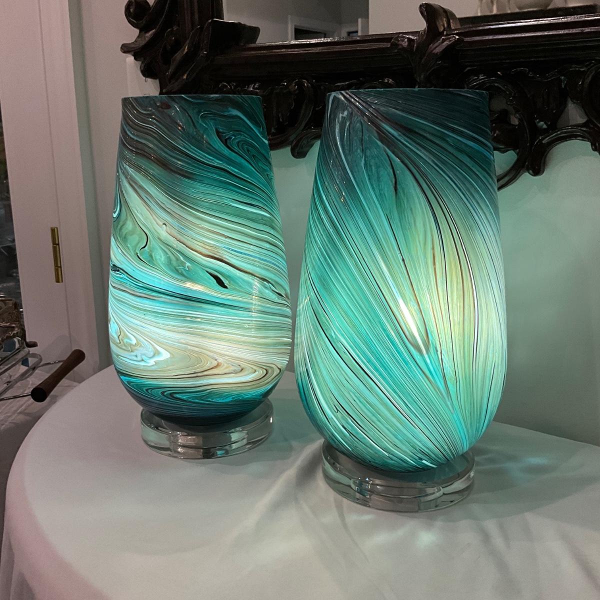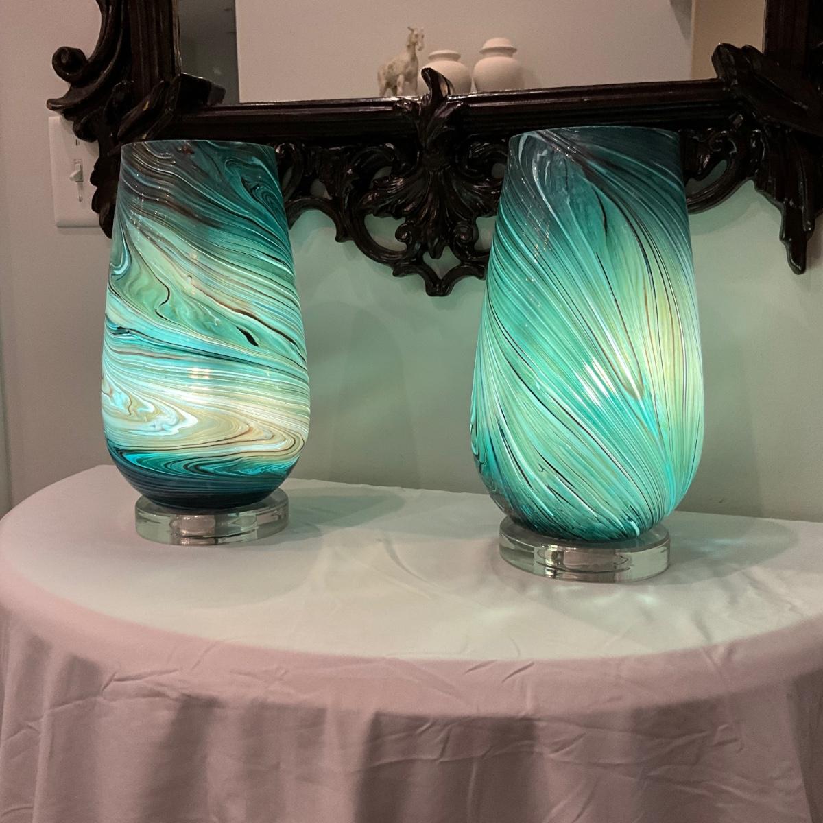 141 Pair of Hand Blown Lighting Carmen Modern Coastal Accent Lamps