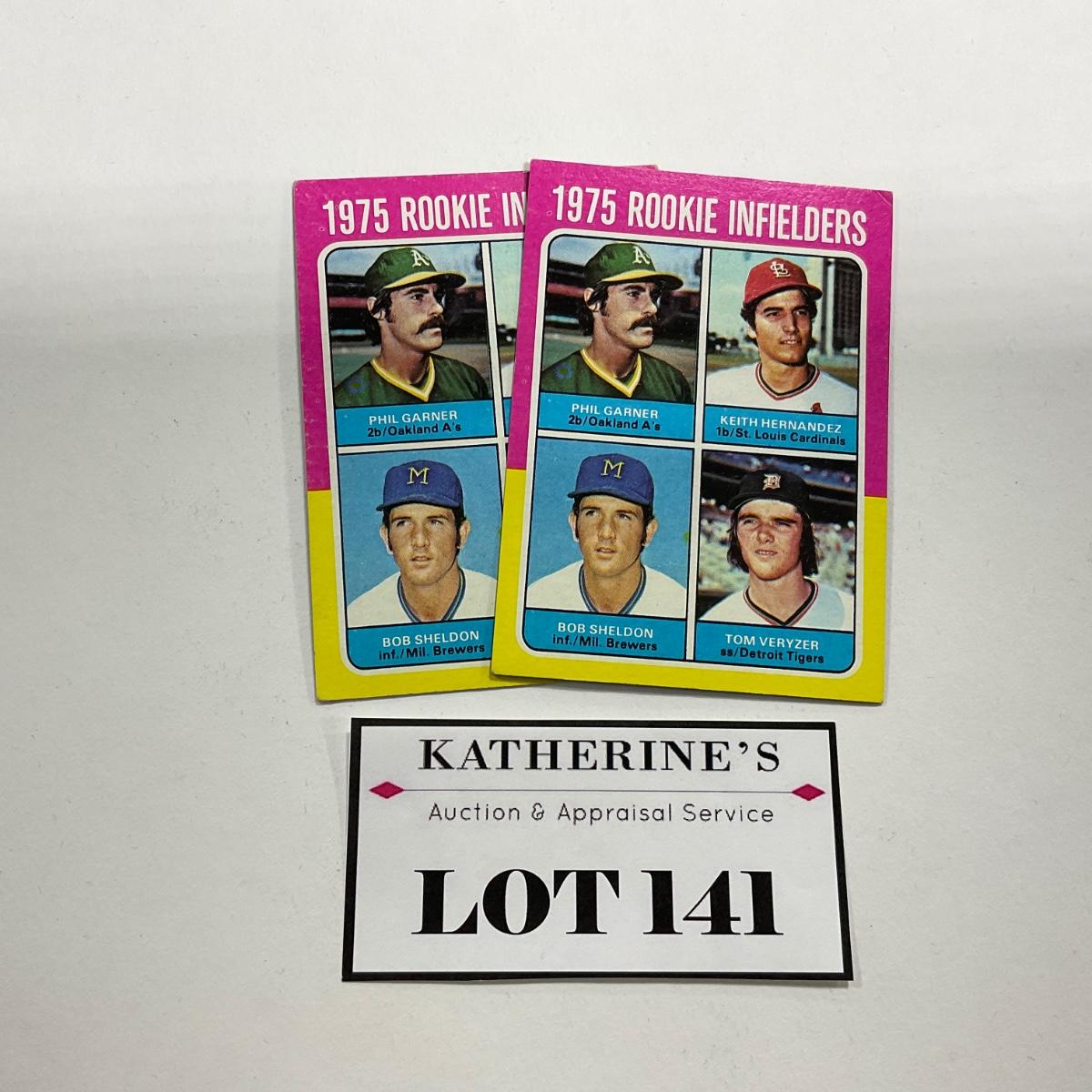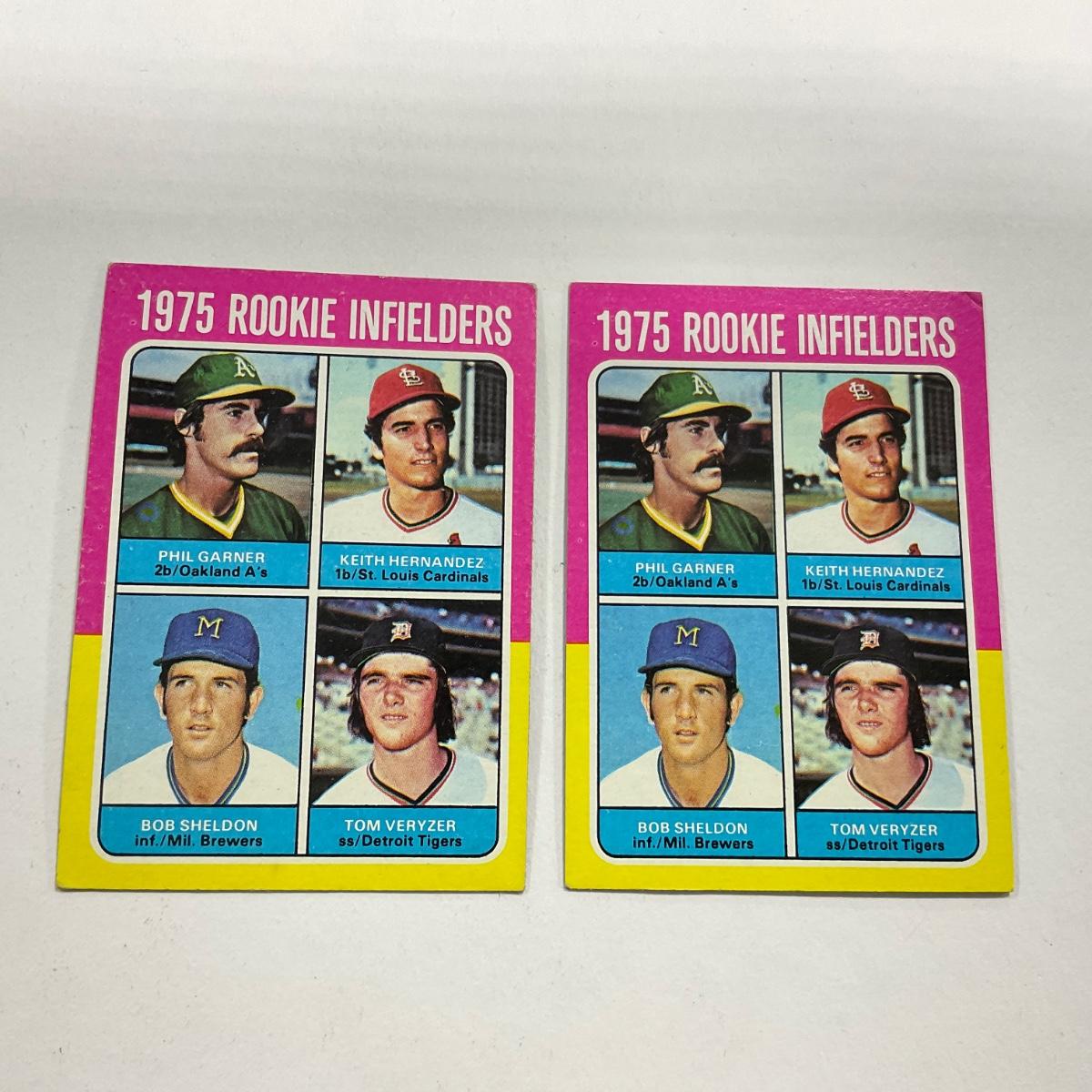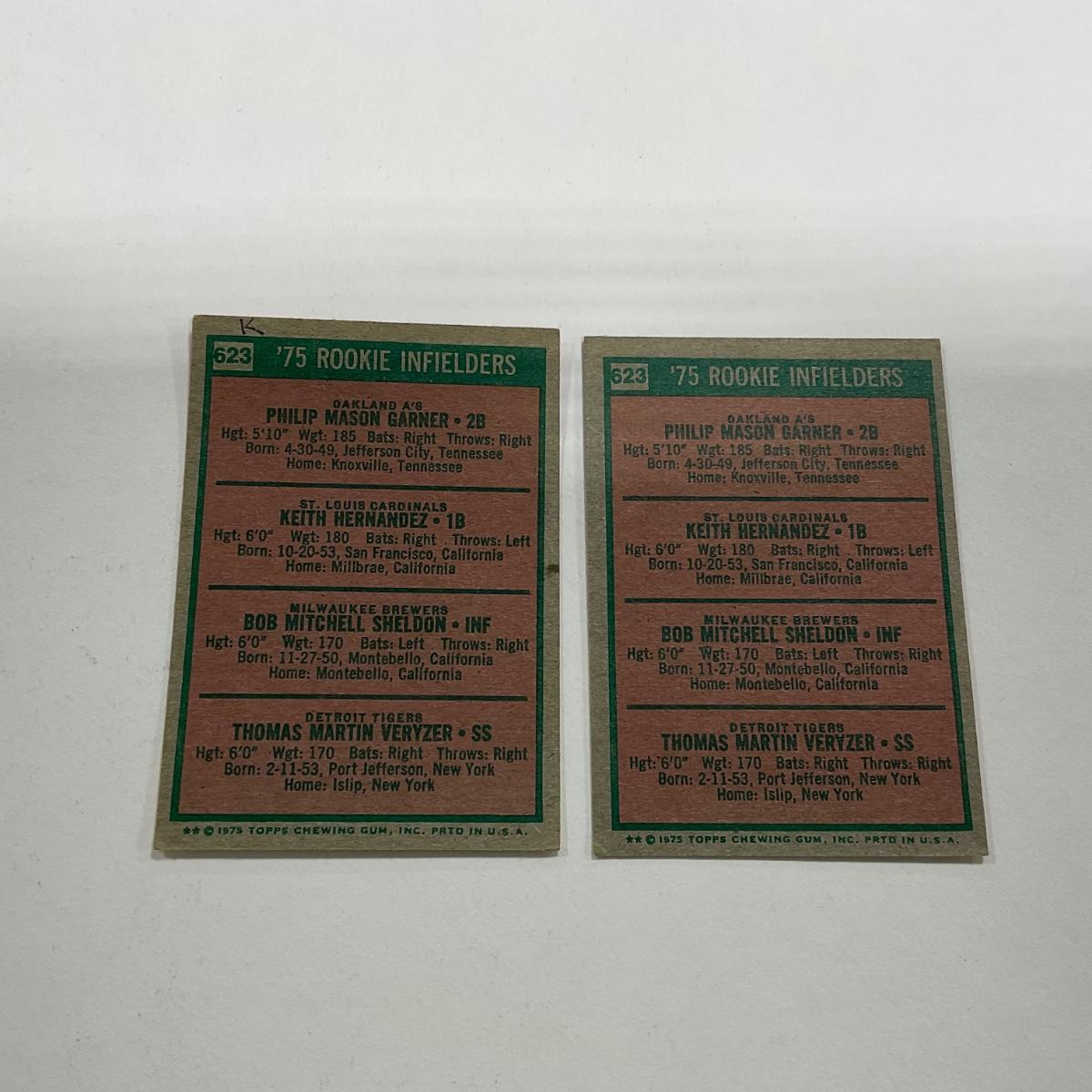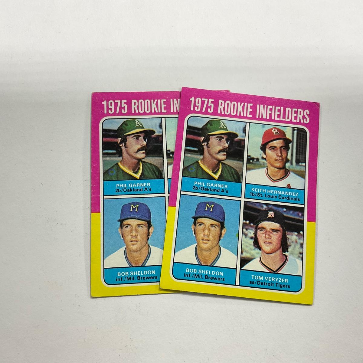 Two 1975 rookie infielders #623 cards featuring Phil garrer, Keith Hernandez, Bob Sheldon, and Tom Veryzer. Please see photos for details and condition. ::: Shipping is available on this lot. If you require shipping you must let us know at the close of the auction. We will coordinate with you after the item has been won. Shipping fees will include insurance up to or exceeding the value of all items being mailed. If you have any questions regarding this lot please contact the auctioneer either via this website, by direct email or by phone. PICK UP TIMES and other important information can be found in the TERMS and DESCRIPTION of the auction. Please take a look for pertinent information. Thanks!