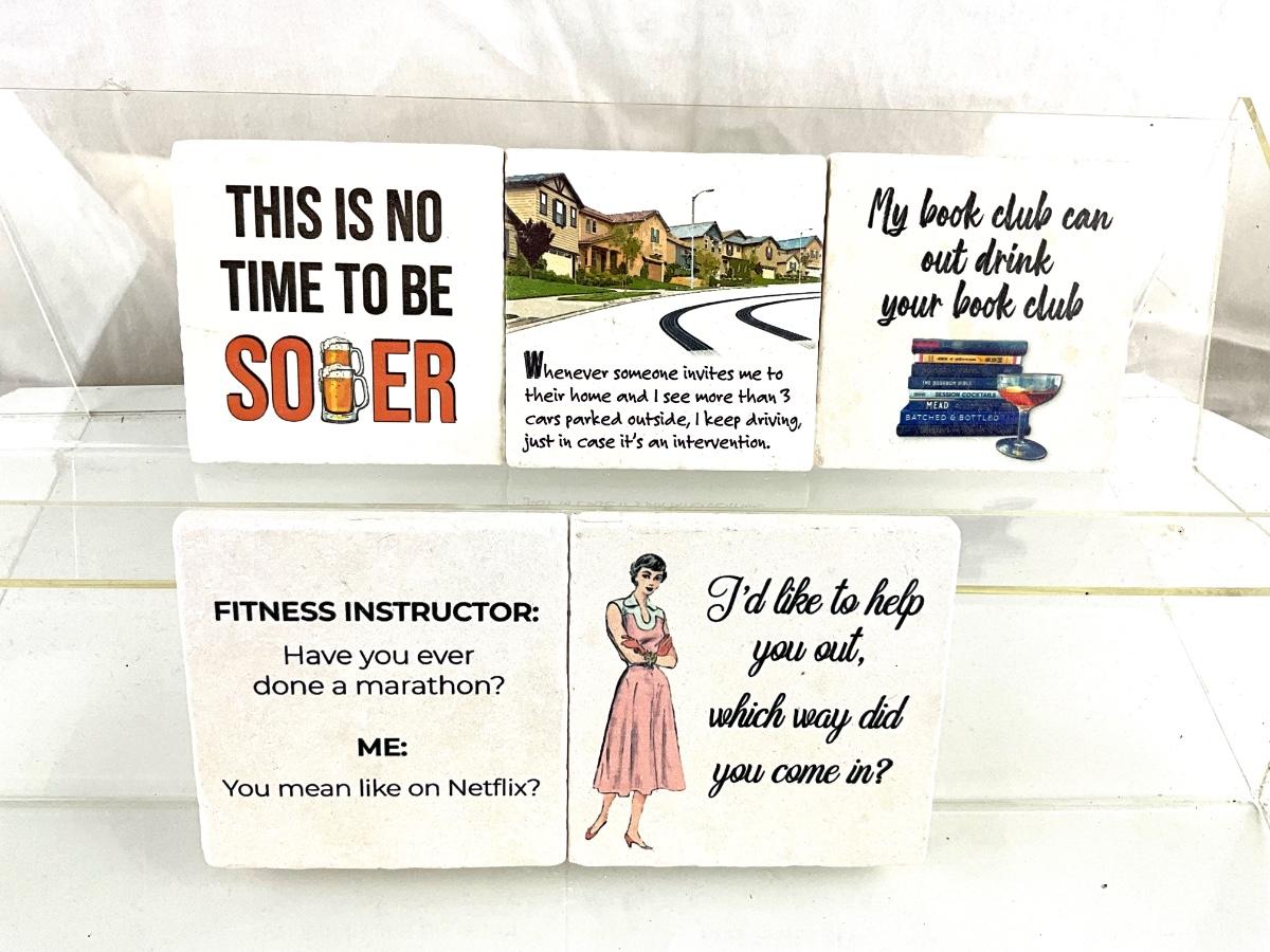 141  Tipsy Stone Coasters with Quirky Sayings  set of 5
