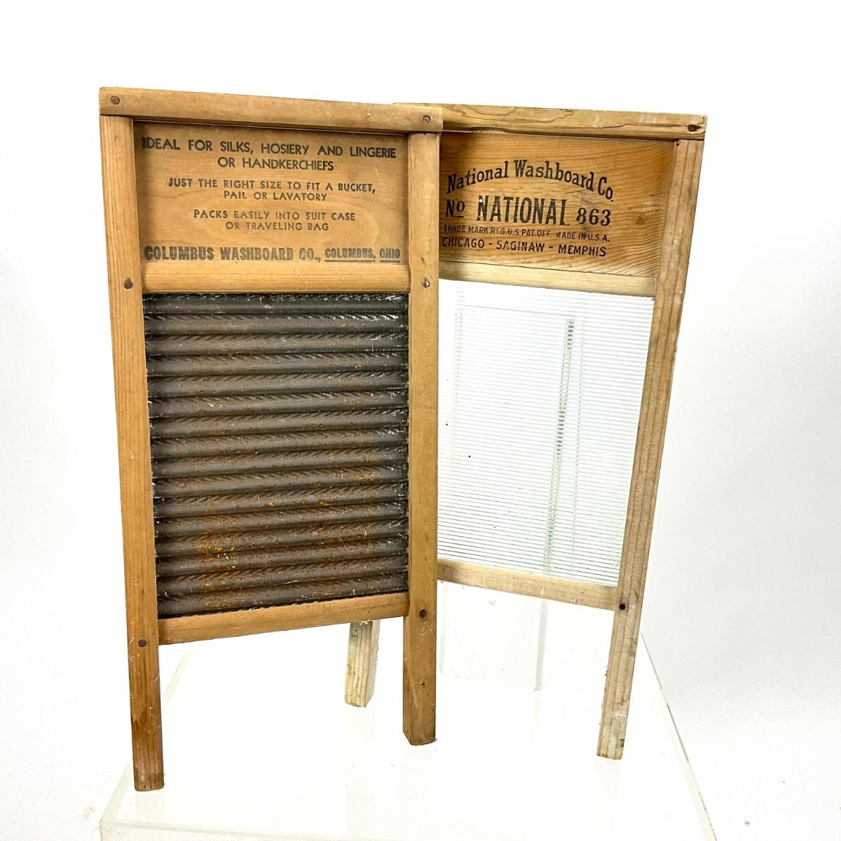 1410 Vintage Wooden Glass, Tin Advertising Washboards