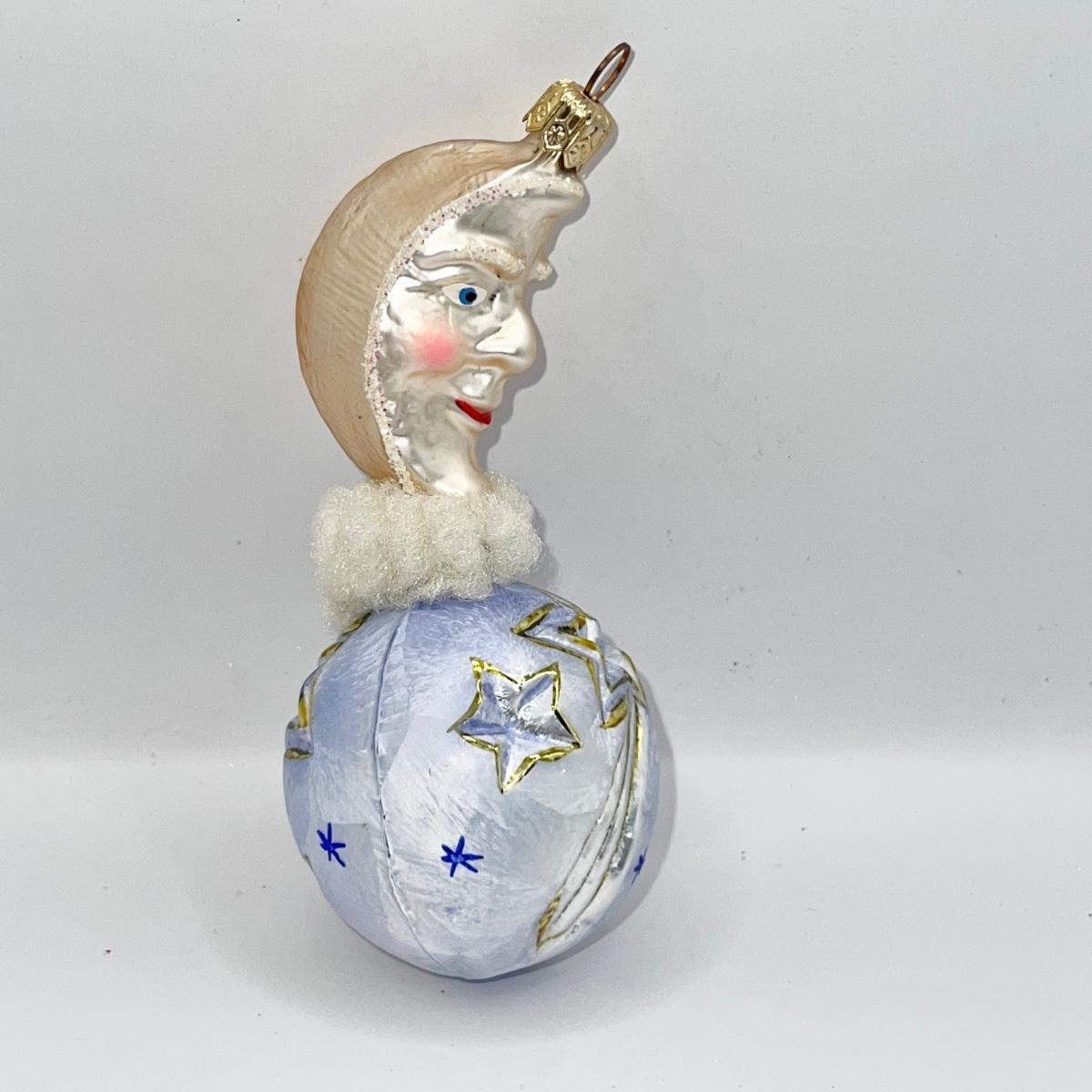 1410 Christopher Radko 1994 Shooting the Moon Blue Glass Ornament
