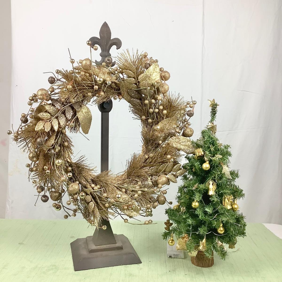 1415 Christmas Wreath and Small Artificial Tree