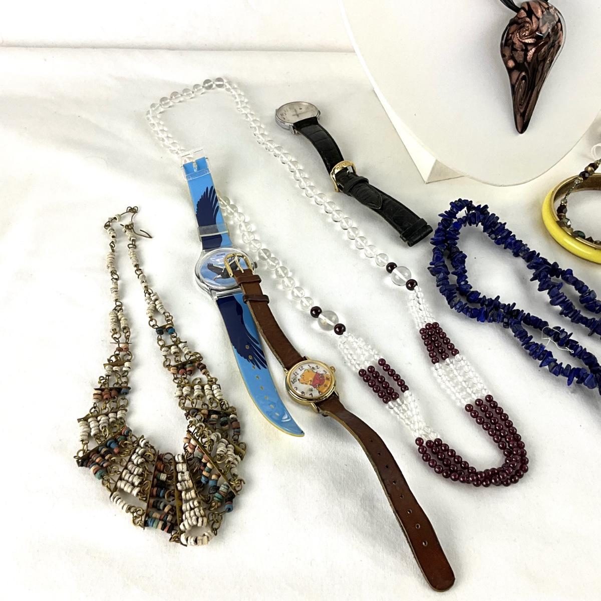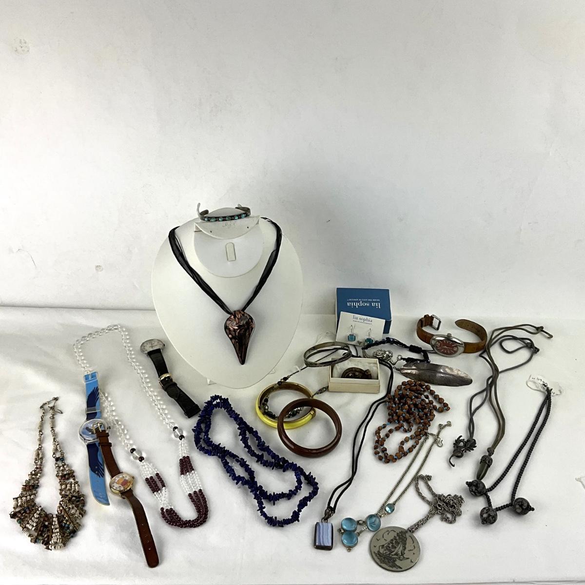 Assorted necklaces, watches, bracelets.