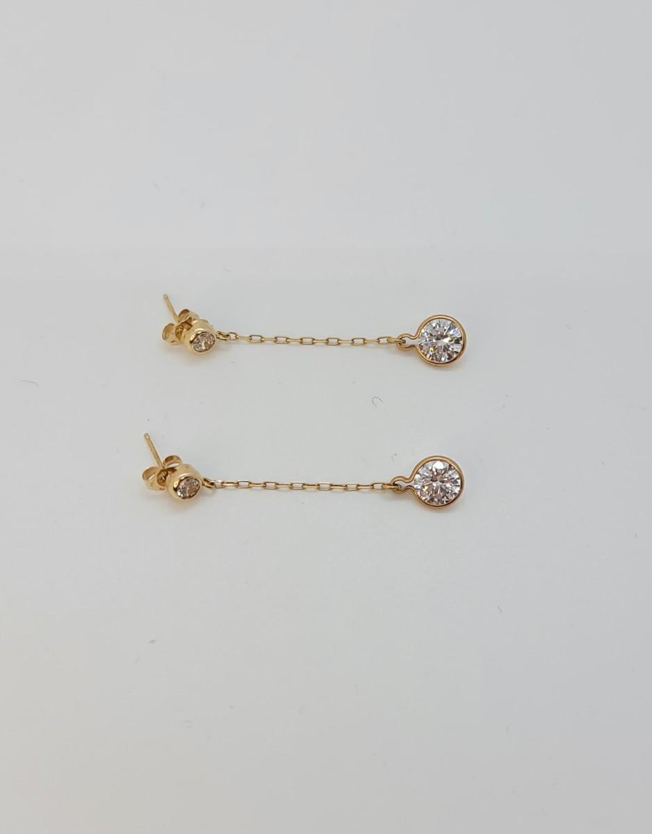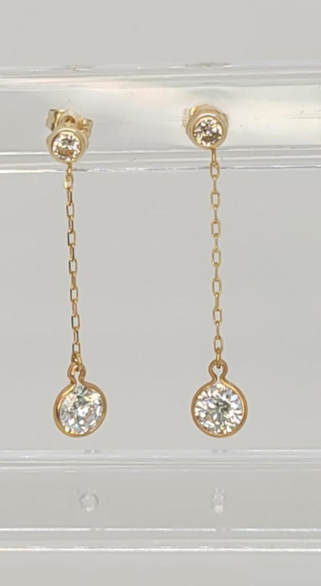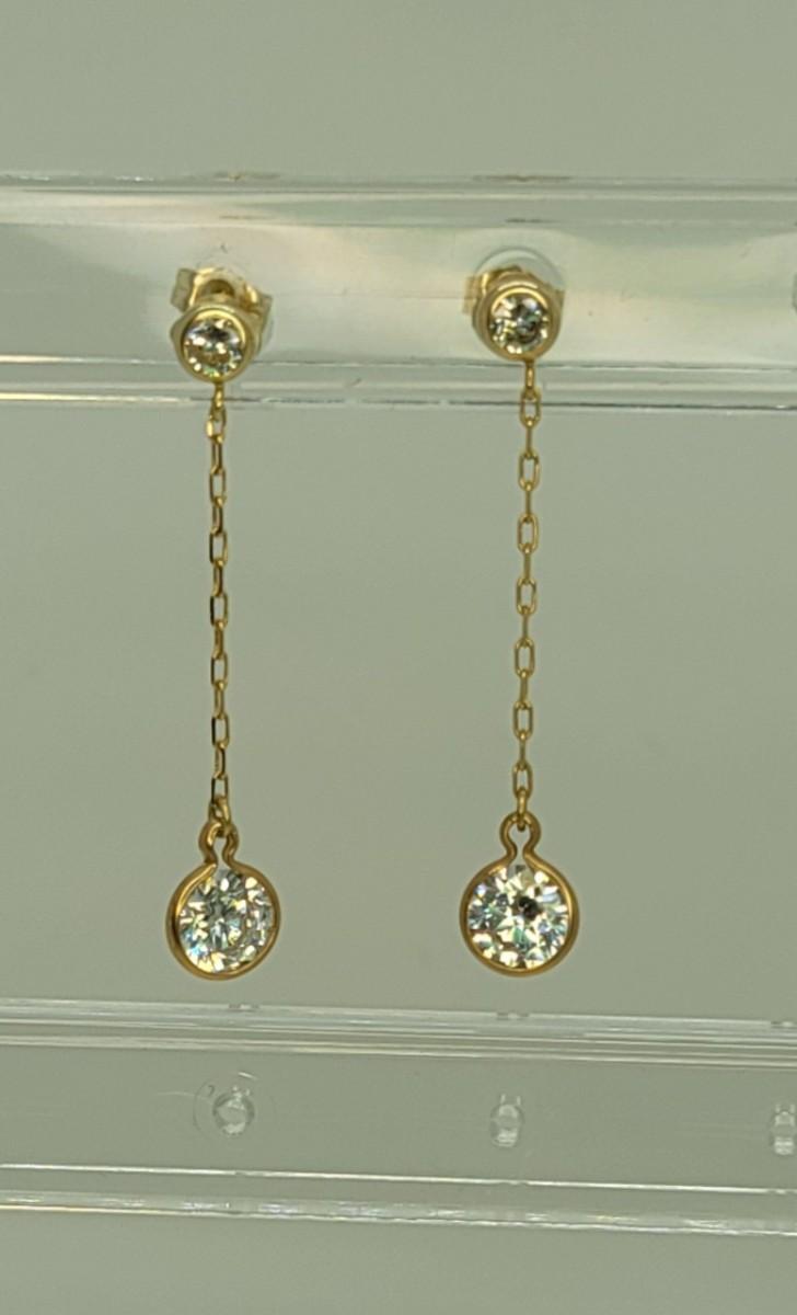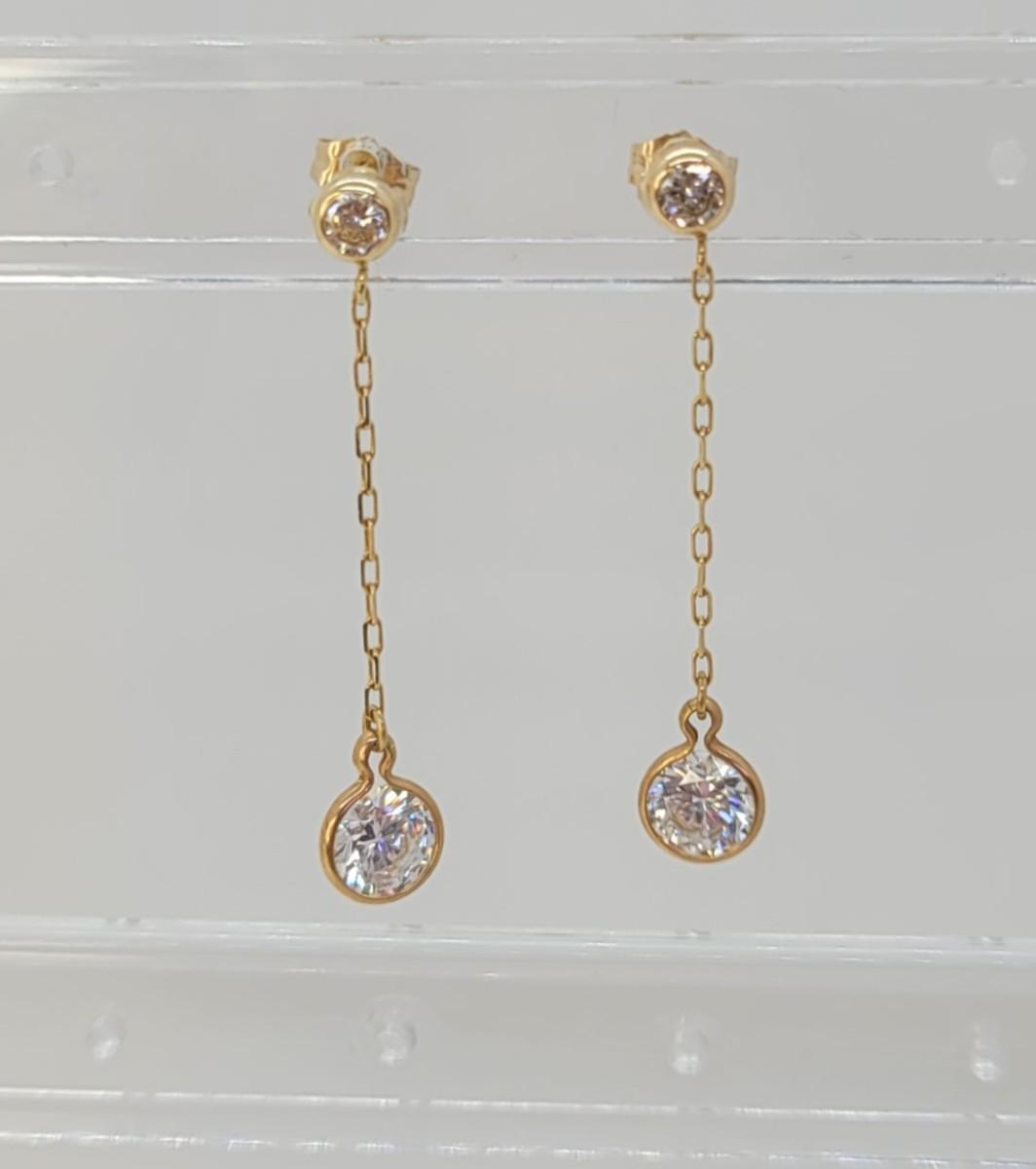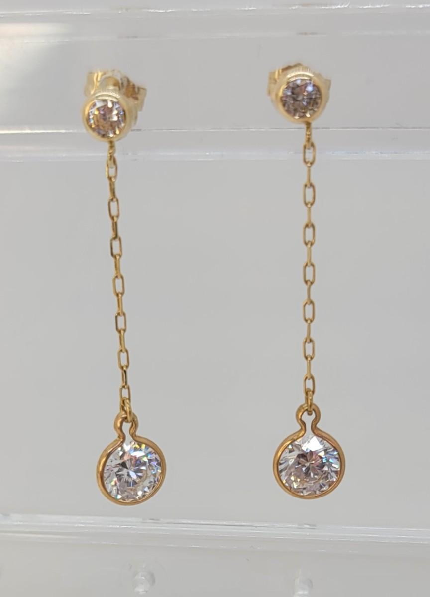 142: 1.5g 14k DQCZ yellow gold pierced dangling Cubic Zirconia earrings