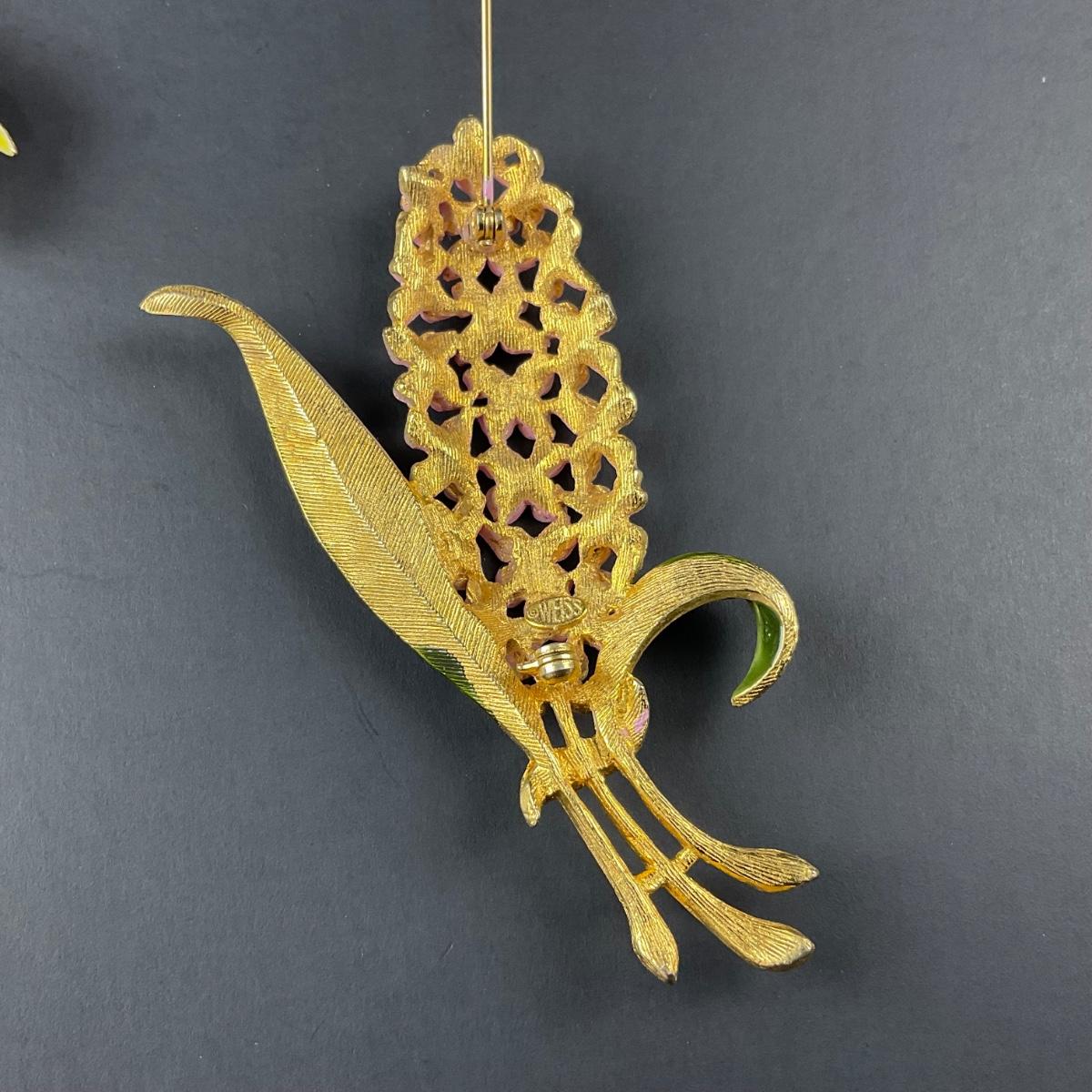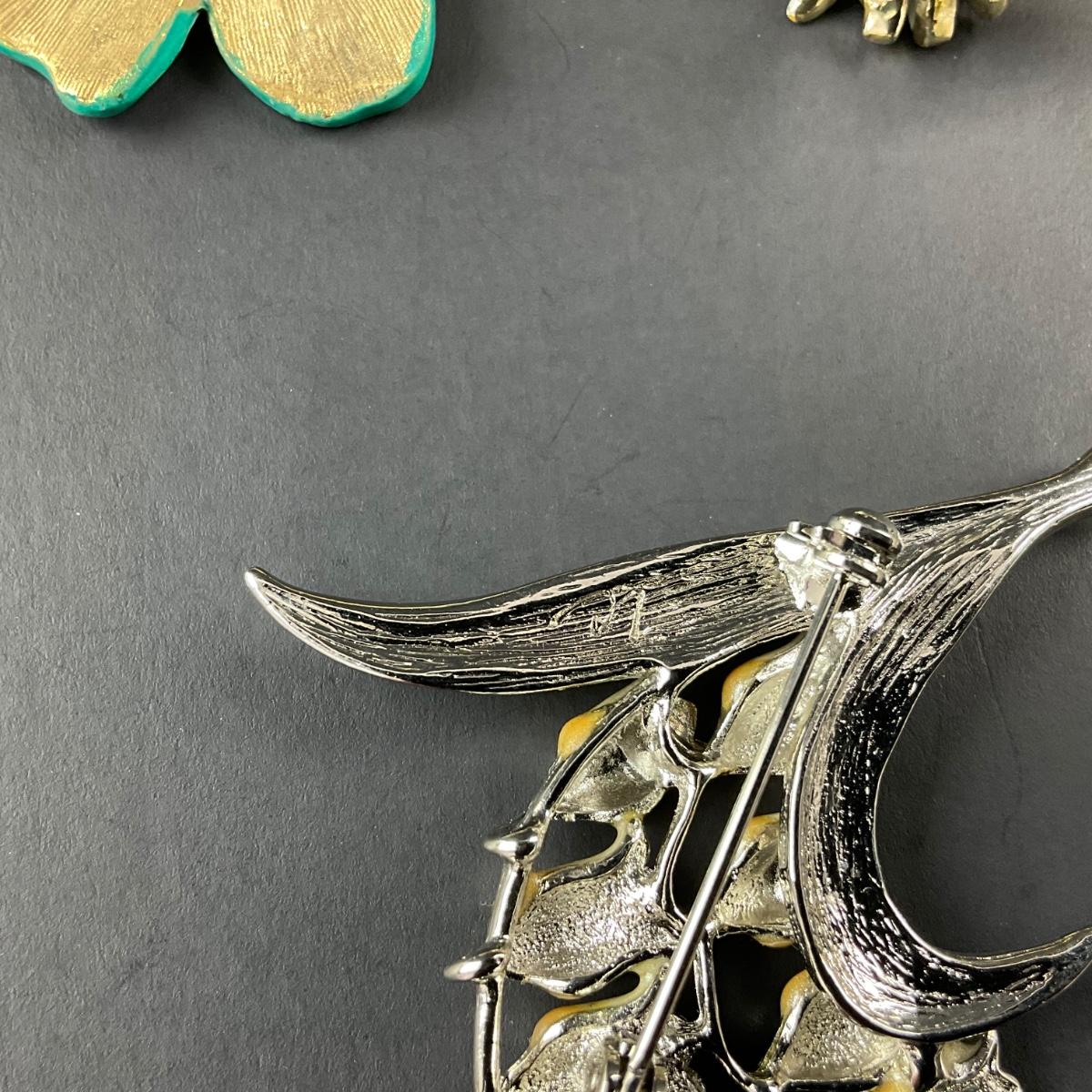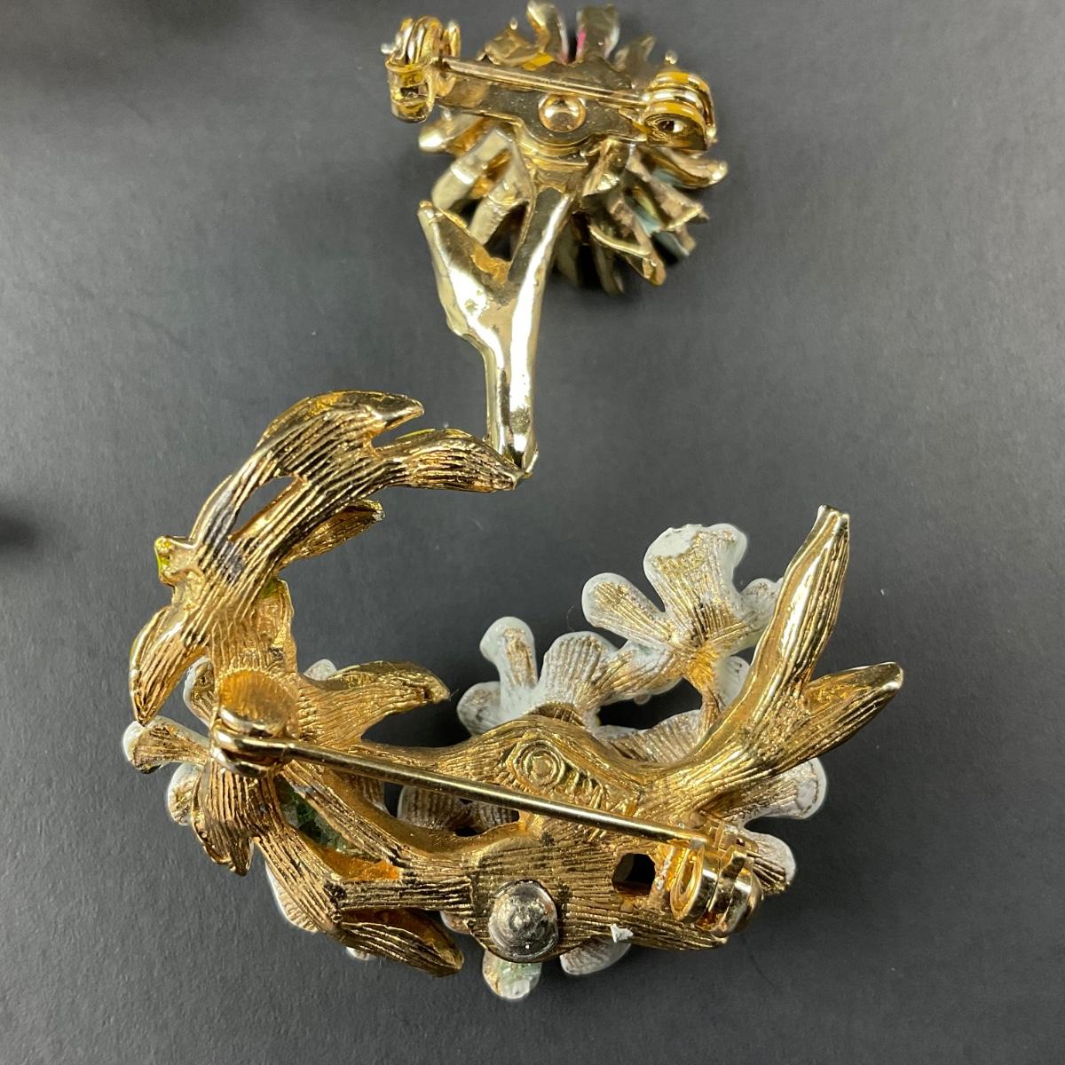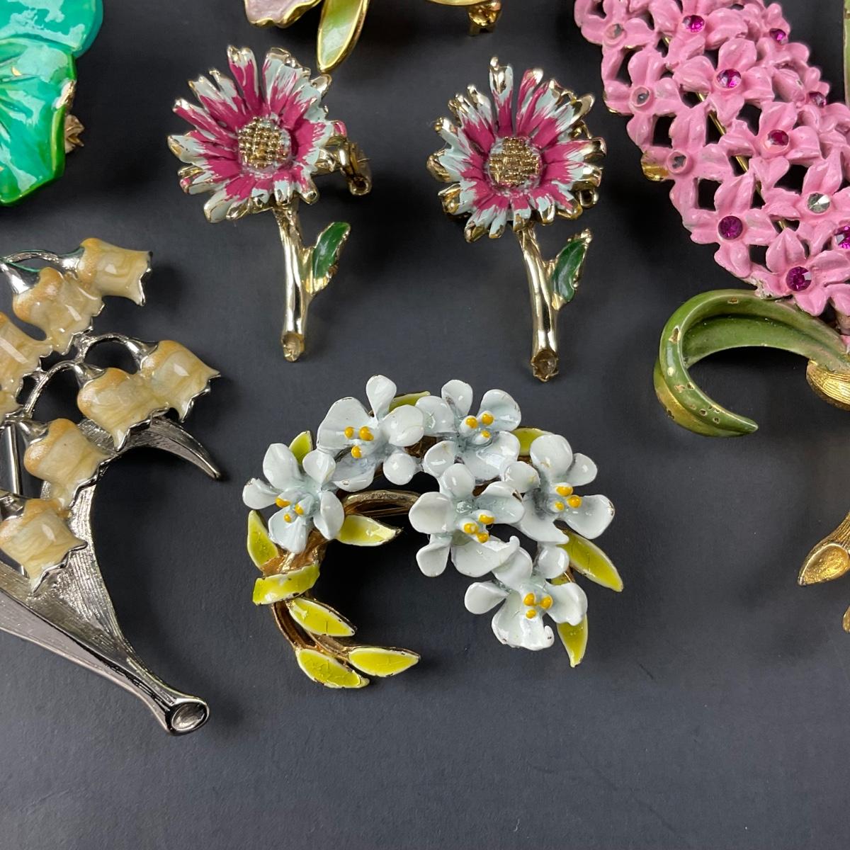 Seven miscellaneous multicolored flower pins some missing rhinestone pieces. A few marked pieces including LC, Art, Weiss. This piece does have some scuffs, scratches, marks, or slight damage, but otherwise appears to be in great shape. Please see photos for details and condition. Any condition statement is given as a courtesy to a client, is an opinion, and should not be treated as a statement of fact. Reference to condition written, oral or within a condition report shall not be regarded as a full account of condition and may not include all defects, alterations, or restorations. Absence of a condition report does not imply a lot is flawless or lacking imperfections or damage. Katherine’s Auction & Appraisal Service shall have no responsibility for any error or omission. Returns shall not be accepted on the basis of condition. ::: Shipping is available on this lot. If you require shipping you must let us know at the close of the auction. We will coordinate with you after the item has been won. Shipping fees will include insurance up to or exceeding the value of all items being mailed. If you have any questions regarding this lot please contact the auctioneer either via this website, by direct email or by phone. PICK UP TIMES and other important information can be found in the TERMS and DESCRIPTION of the auction. Please take a look for pertinent information. Thanks!