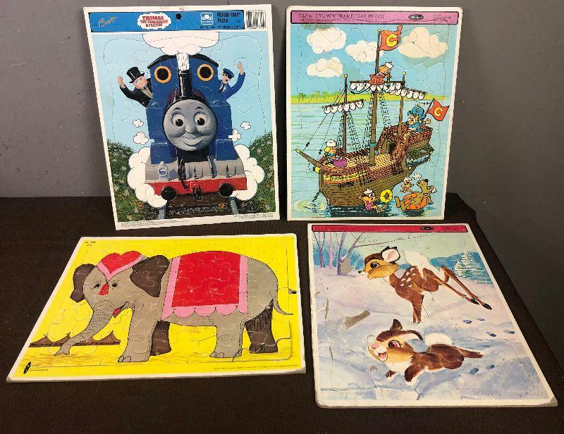#142 Lot of 4 Puzzles. THOMAS, Bambi, Captain Crunch,
