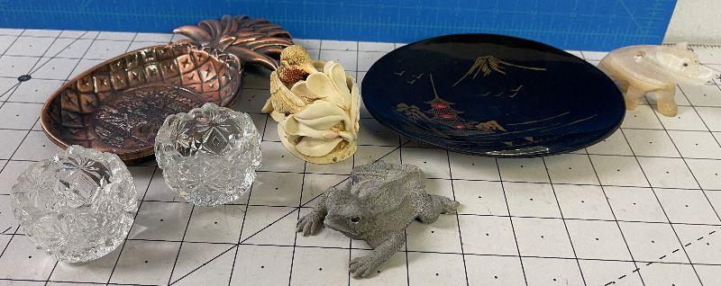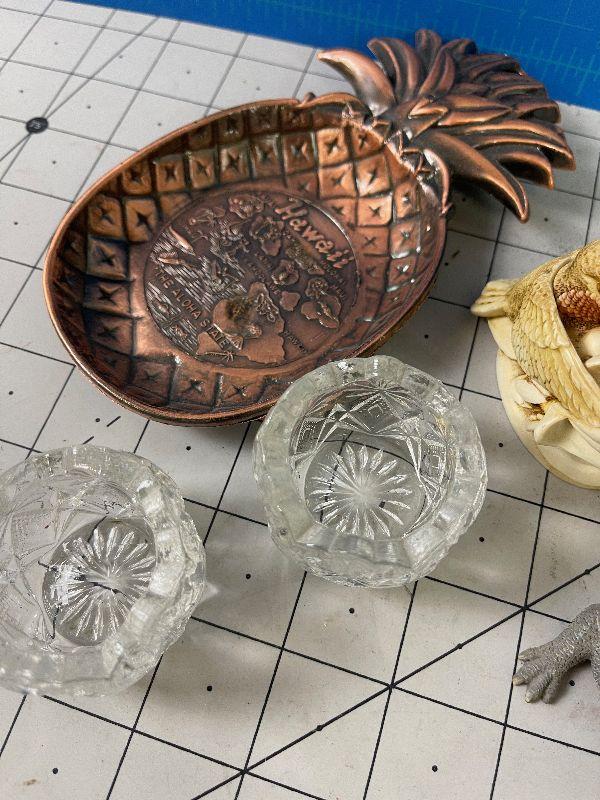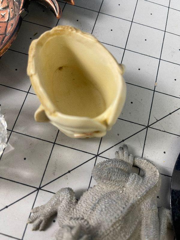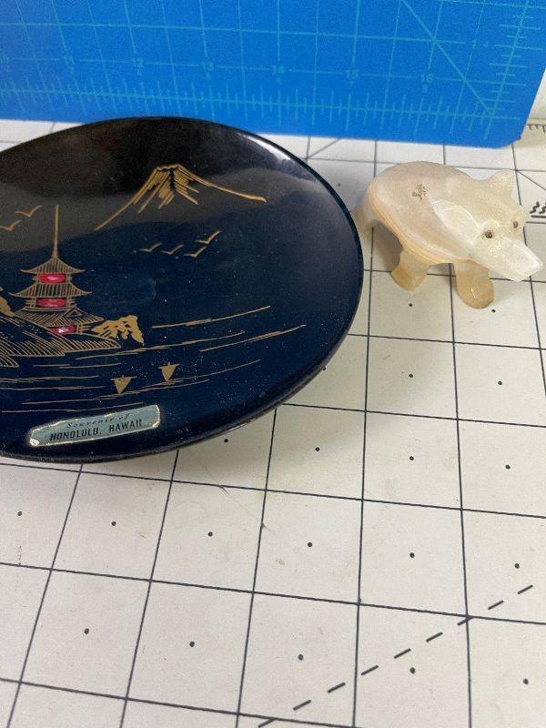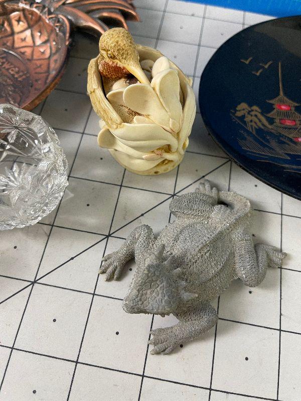 Alabaster Bear, Resin Horny Toad, Hummingbird and box